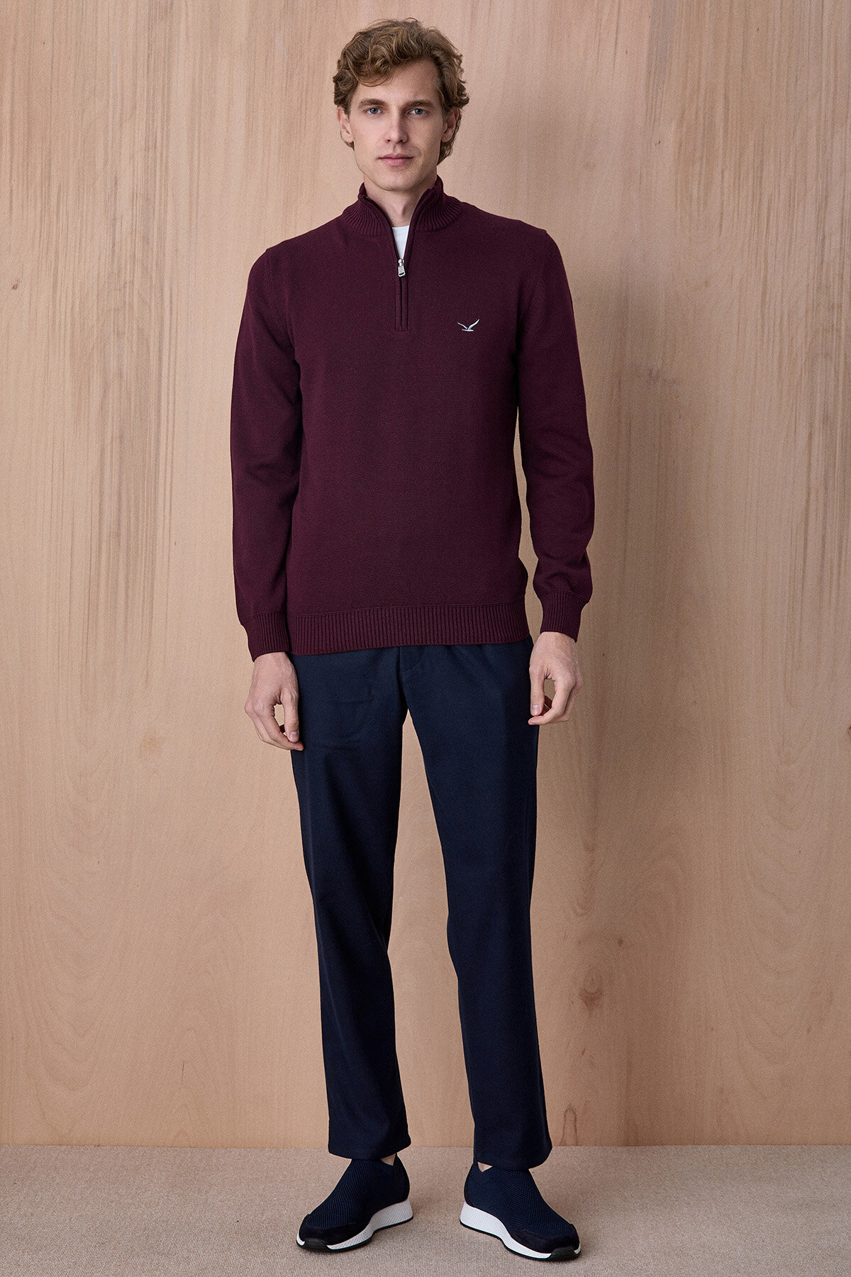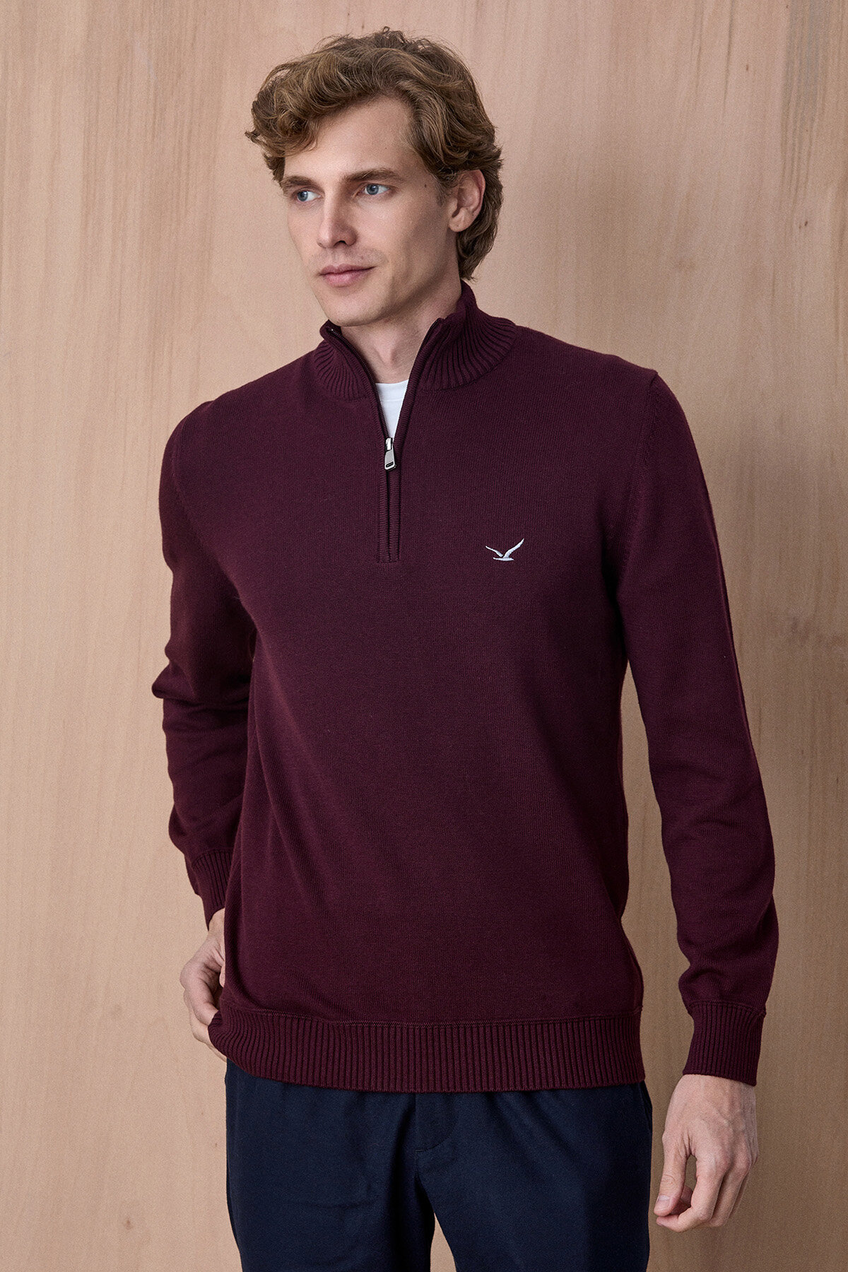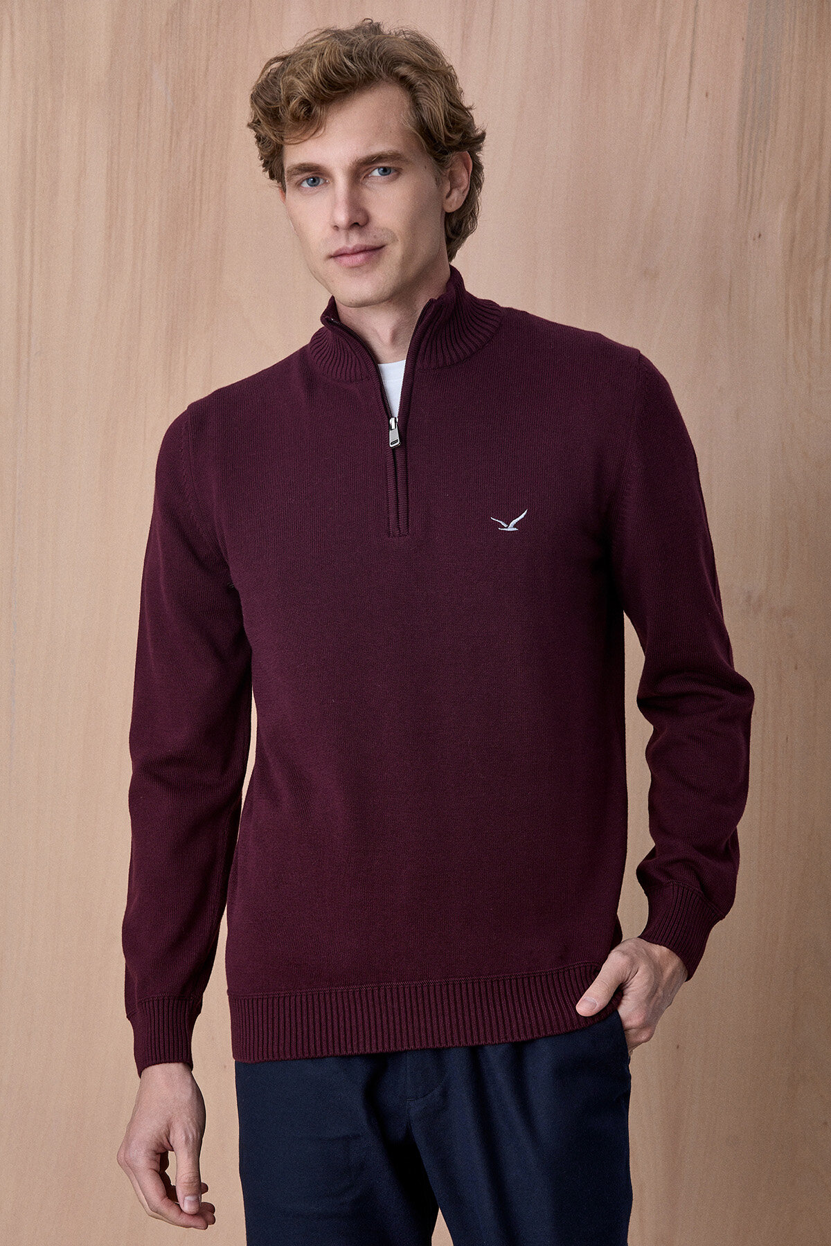 Advent Troyar Bordo Yarım Fermuarlı %100 Pamuk Triko Kazak, klasik stil anlayışını modern detaylarla buluşturan zamansız bir tasarıma sahiptir. %100 pamuklu triko yapısı sayesinde gün boyu konfor sunarken, yarım fermuarlı ve dik yaka formu ürüne dengeli ve şık bir duruş kazandırır. Gömleklerle katmanlı kullanıma uygun yapısı ile hem günlük kombinlerde hem de smart casual stilde rahatlıkla tercih edilebilecek çok yönlü bir parçadır.