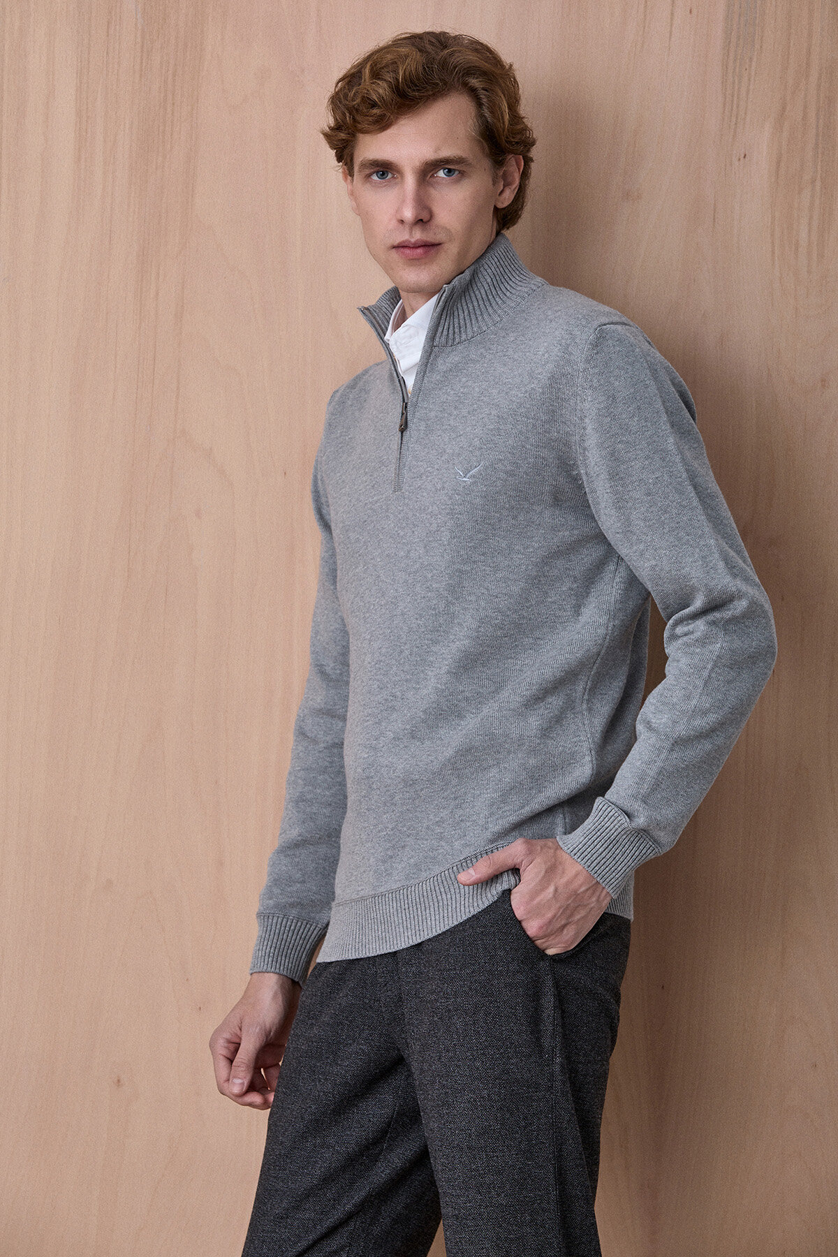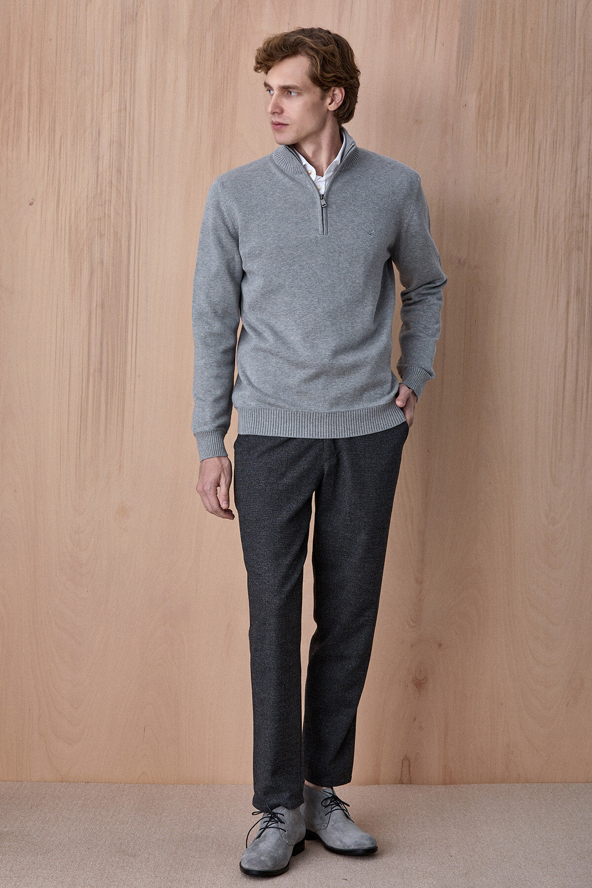 Advent Troyar Gri Melanj Yarım Fermuarlı %100 Pamuk Triko Kazak, klasik stil anlayışını modern detaylarla buluşturan zamansız bir tasarıma sahiptir. %100 pamuklu triko yapısı sayesinde gün boyu konfor sunarken, yarım fermuarlı ve dik yaka formu ürüne dengeli ve şık bir duruş kazandırır. Gömleklerle katmanlı kullanıma uygun yapısı ile hem günlük kombinlerde hem de smart casual stilde rahatlıkla tercih edilebilecek çok yönlü bir parçadır.