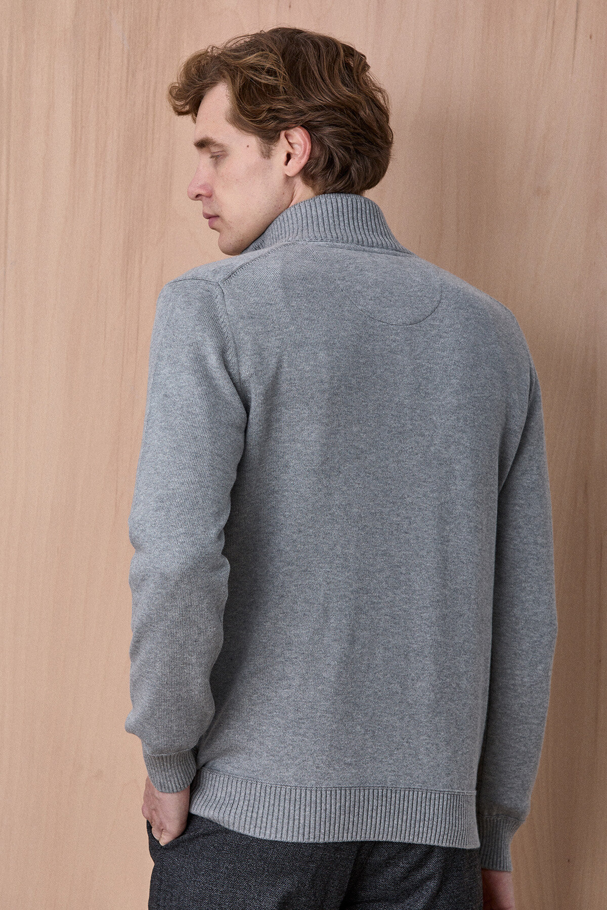 Gri Melanj %100 Pamuk Fermuarlı Kazak