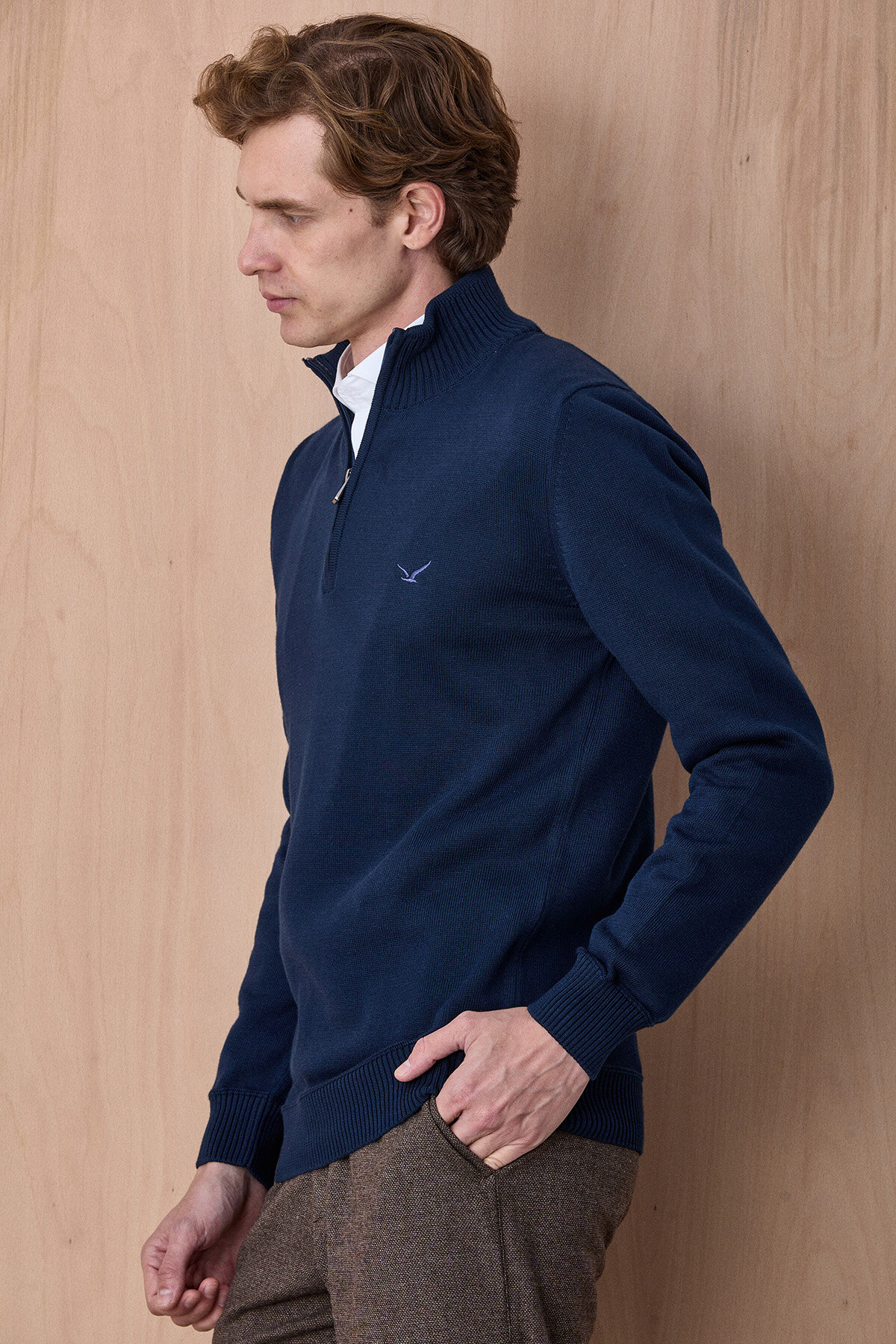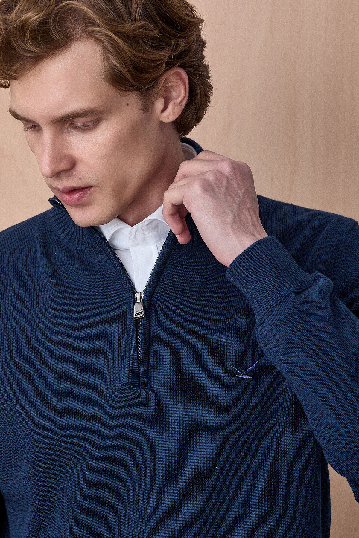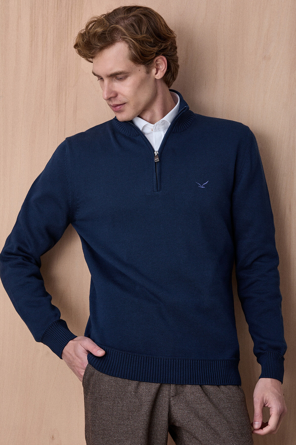 Advent Troyar Petrol Yarım Fermuarlı %100 Pamuk Triko Kazak, klasik stil anlayışını modern detaylarla buluşturan zamansız bir tasarıma sahiptir. %100 pamuklu triko yapısı sayesinde gün boyu konfor sunarken, yarım fermuarlı ve dik yaka formu ürüne dengeli ve şık bir duruş kazandırır. Gömleklerle katmanlı kullanıma uygun yapısı ile hem günlük kombinlerde hem de smart casual stilde rahatlıkla tercih edilebilecek çok yönlü bir parçadır.