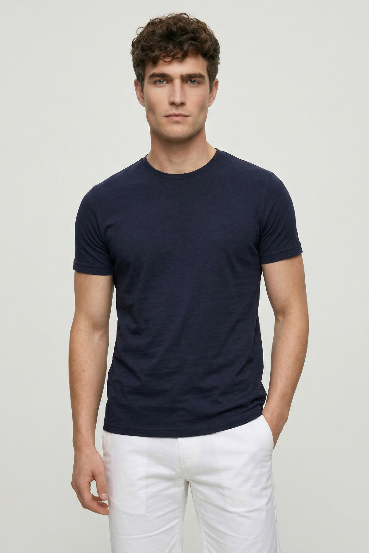 Navy Blue 100% Cotton Crew Neck T-shirt
