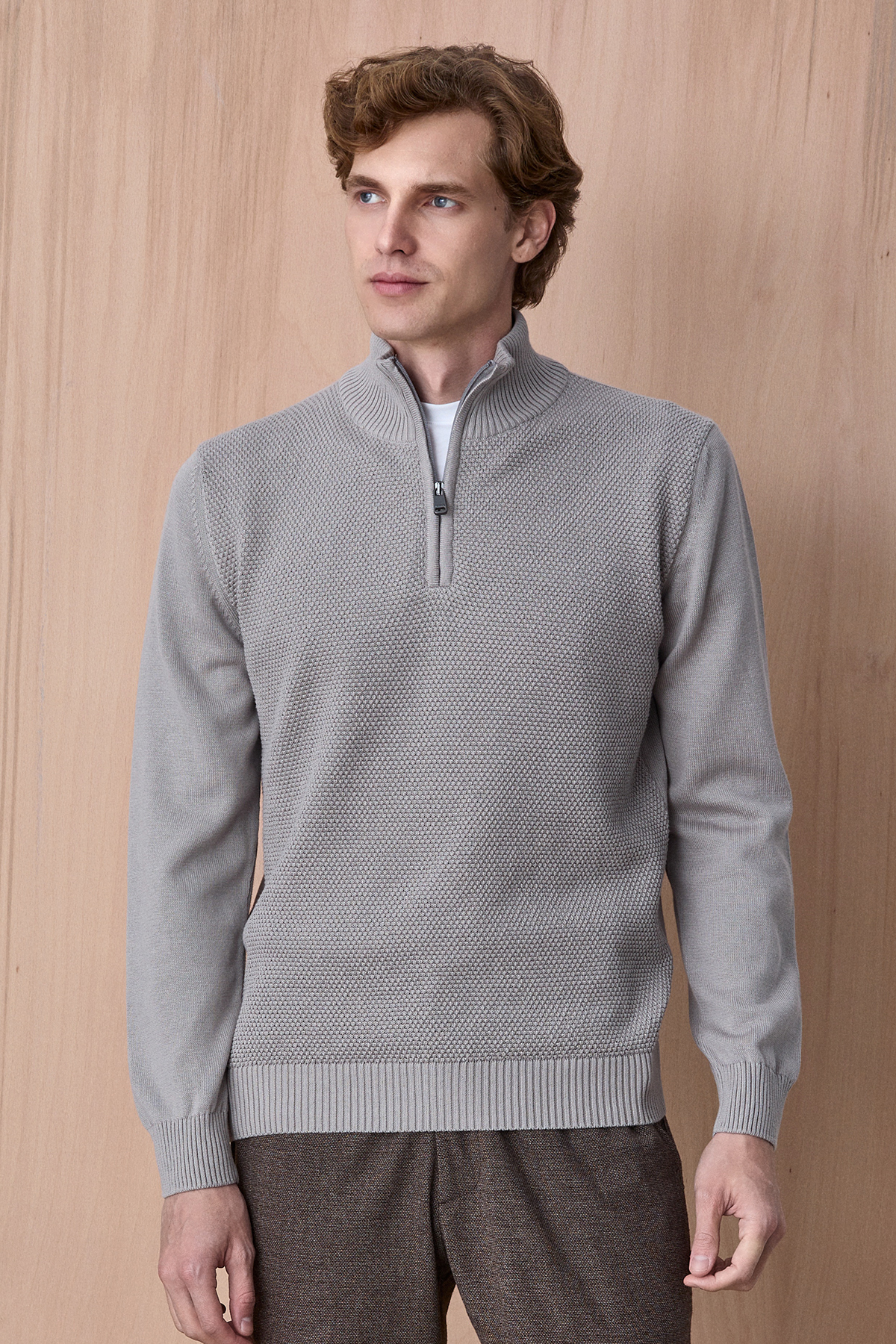 Arasvik Taş Rengi %100 Pamuk Fermuarlı Triko