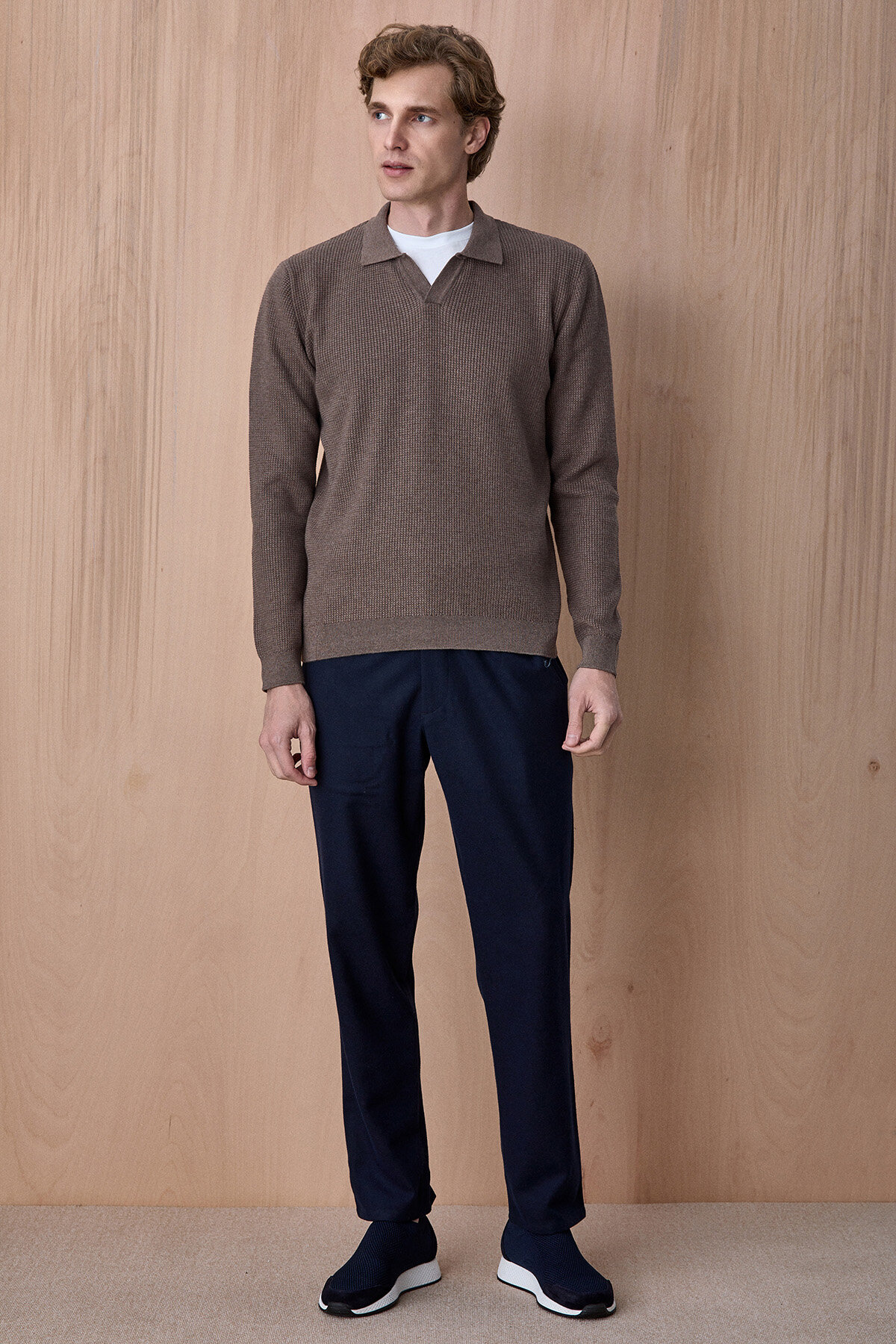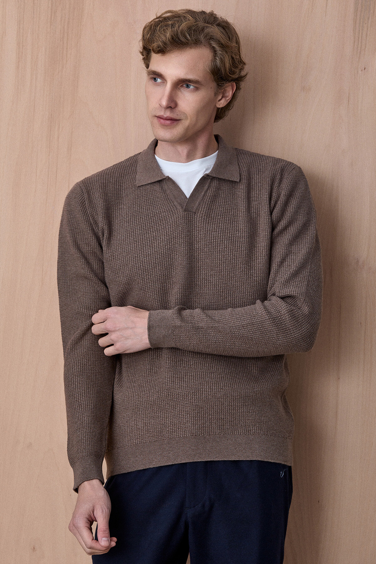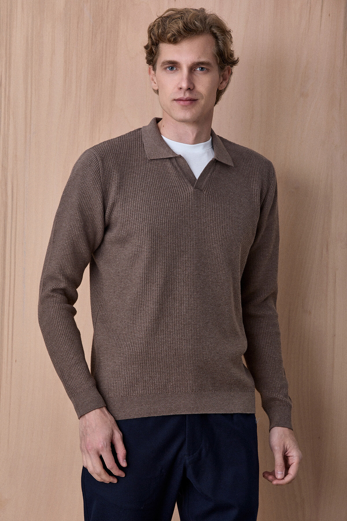 Auste Bej Melanj %100 Pamuk Jakarlı Polo Triko, klasik polo stilini modern triko dokusu ile bir araya getiren zarif ve zamansız bir tasarımdır. %100 pamuklu yapısı sayesinde gün boyu konfor ve nefes alabilirlik sunarken, jakarlı triko yüzeyi ürüne derinlik ve karakter kazandırır. Polo yaka detayı ile hem casual hem de smart casual kombinlerde şık bir görünüm sunan bu tasarım, günlük stil için güçlü bir tamamlayıcıdır.