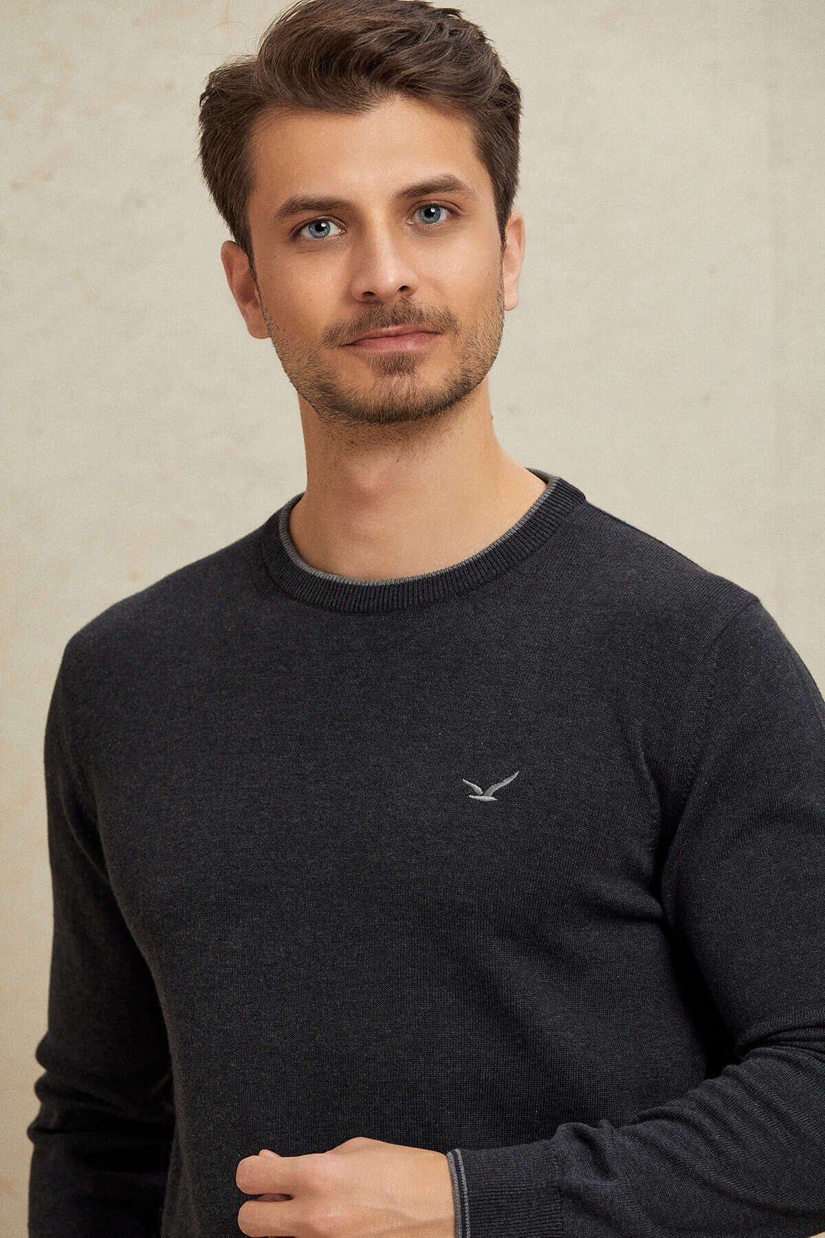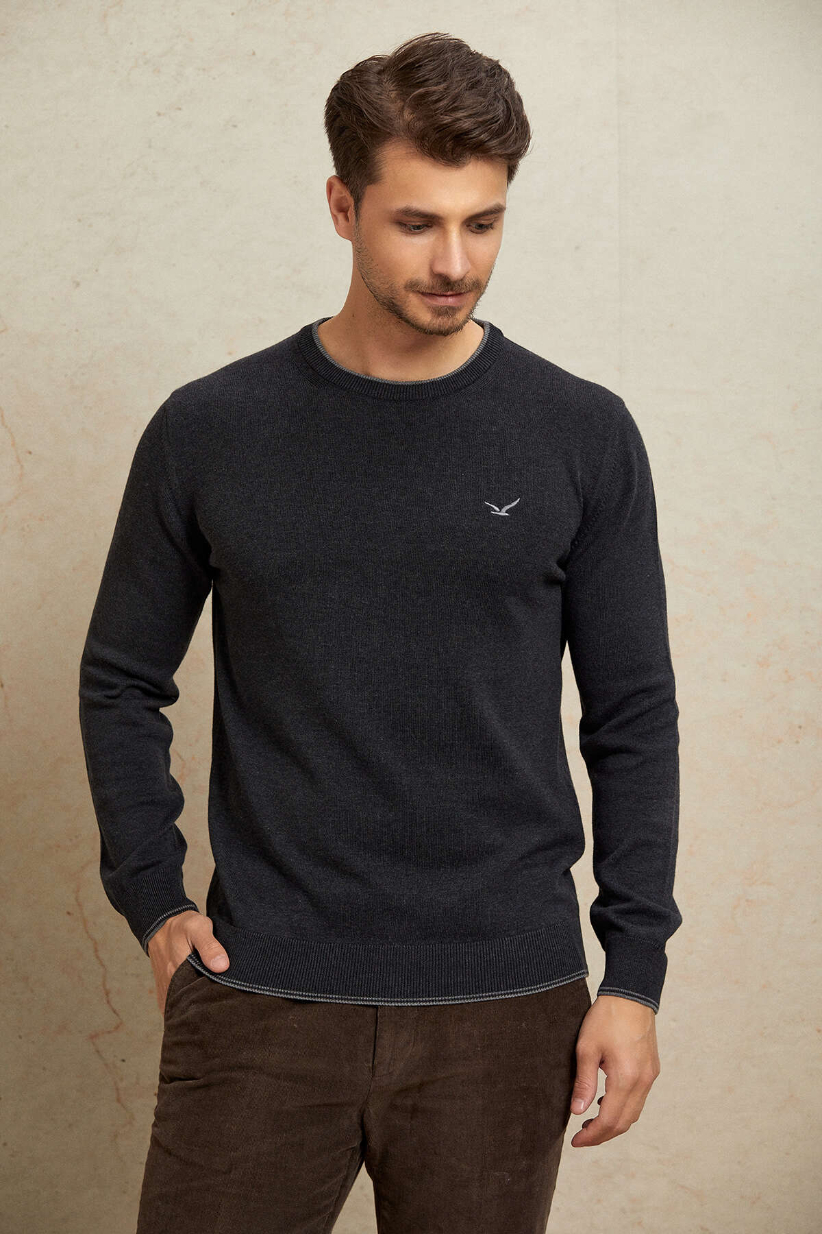 Antrasit %100 Pamuk Yuvarlak Yaka Kazak
