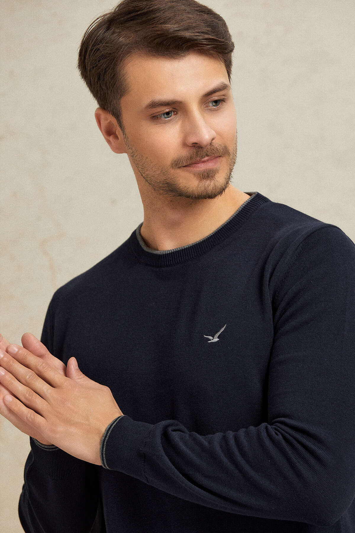 Lacivert %100 Pamuk Yuvarlak Yaka Kazak