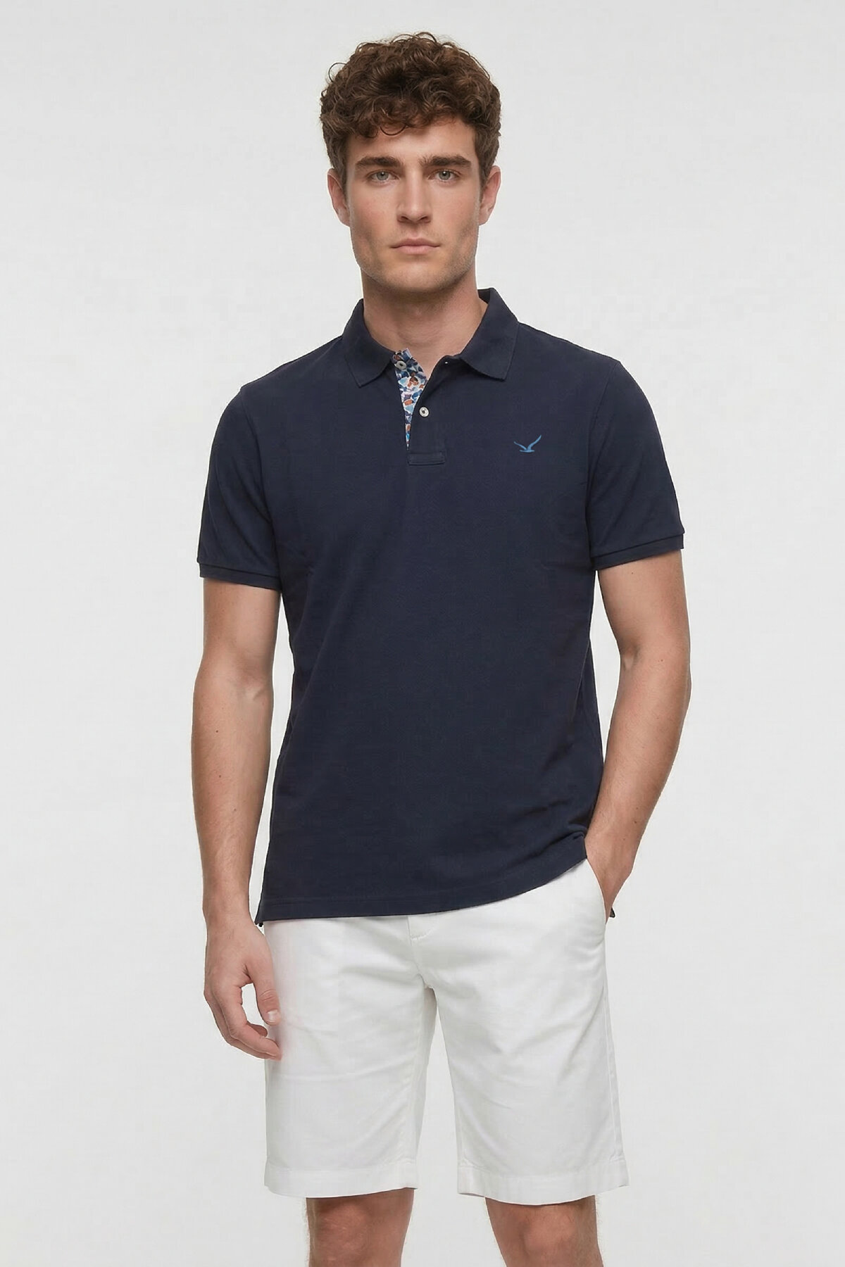 Providing elegance and energy together, the men's blue polo shirt will be one of the indispensable pieces of your wardrobe. Providing comfort all day long with its quality cotton fabric, this model makes a difference with its striking blue tone and floral patterned inner collar detail. Thanks to its modern cut and stylish patterned fabric sewing detail on the back of the collar, it can be easily preferred in both sports and semi-formal combinations. While its breathable fabric keeps you cool in summer, it offers freedom of movement with its flexible structure.