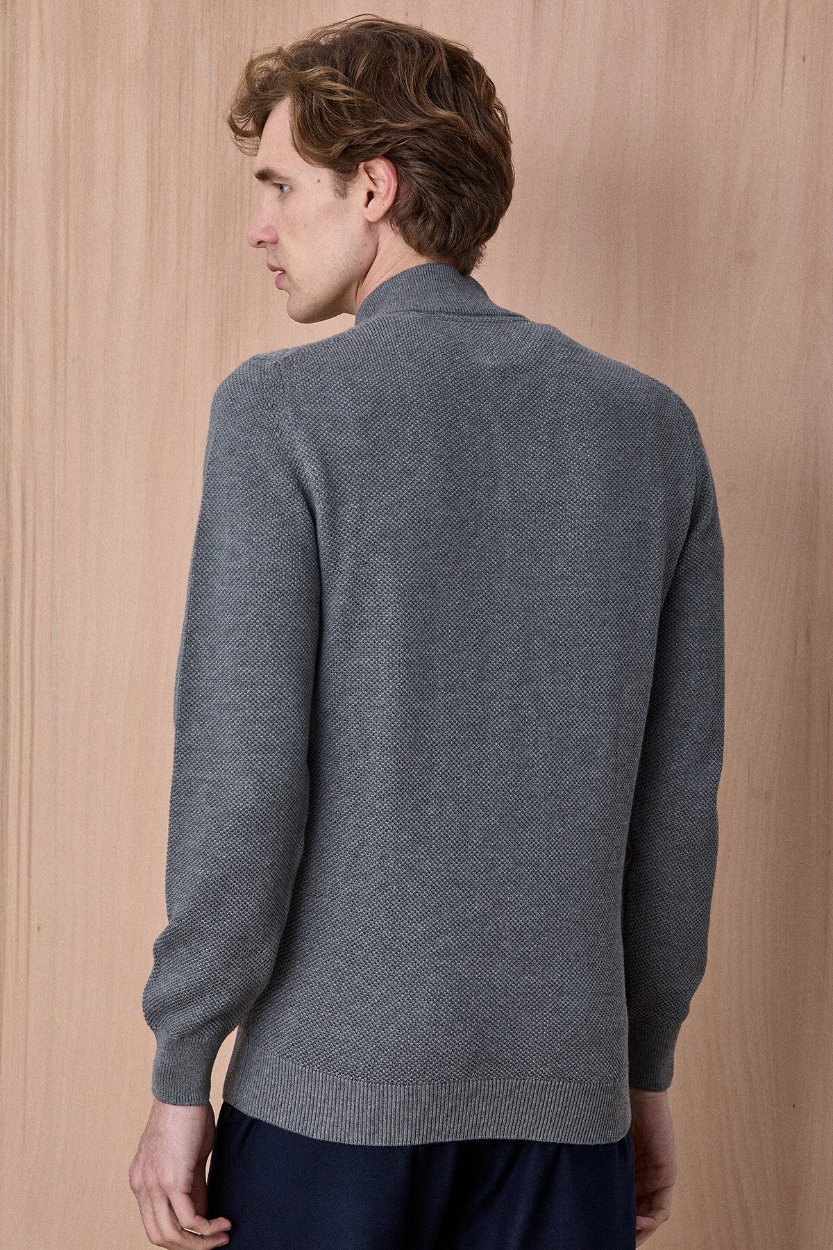 Koyu Gri Pamuklu Kısa Fermuarlı Kazak
