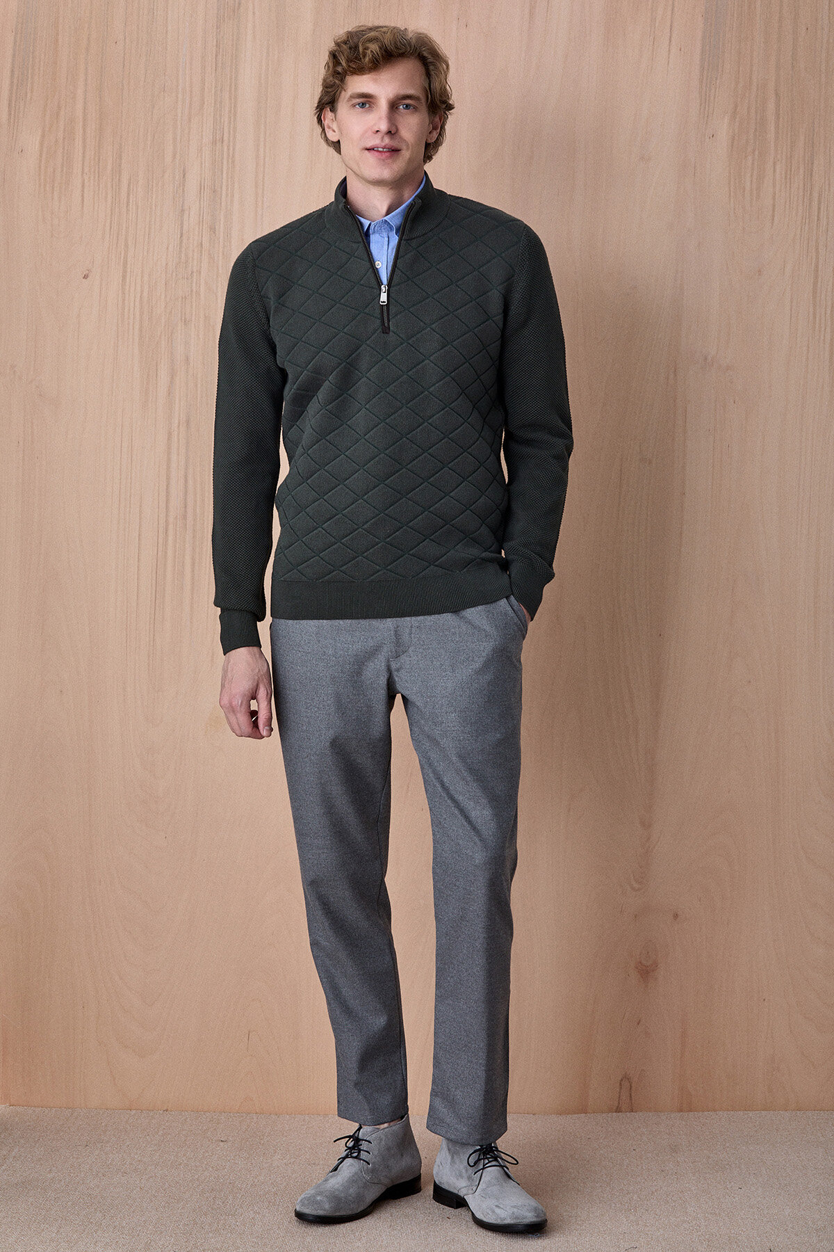 - • Modern görünüm sunan yarım fermuarlı yaka tasarım