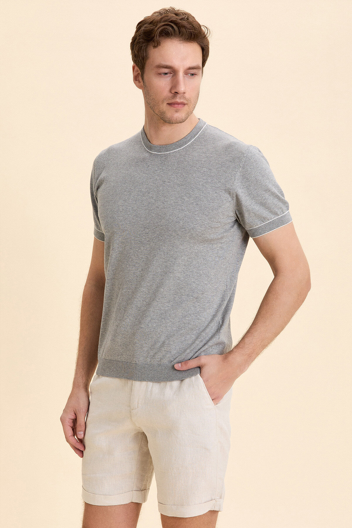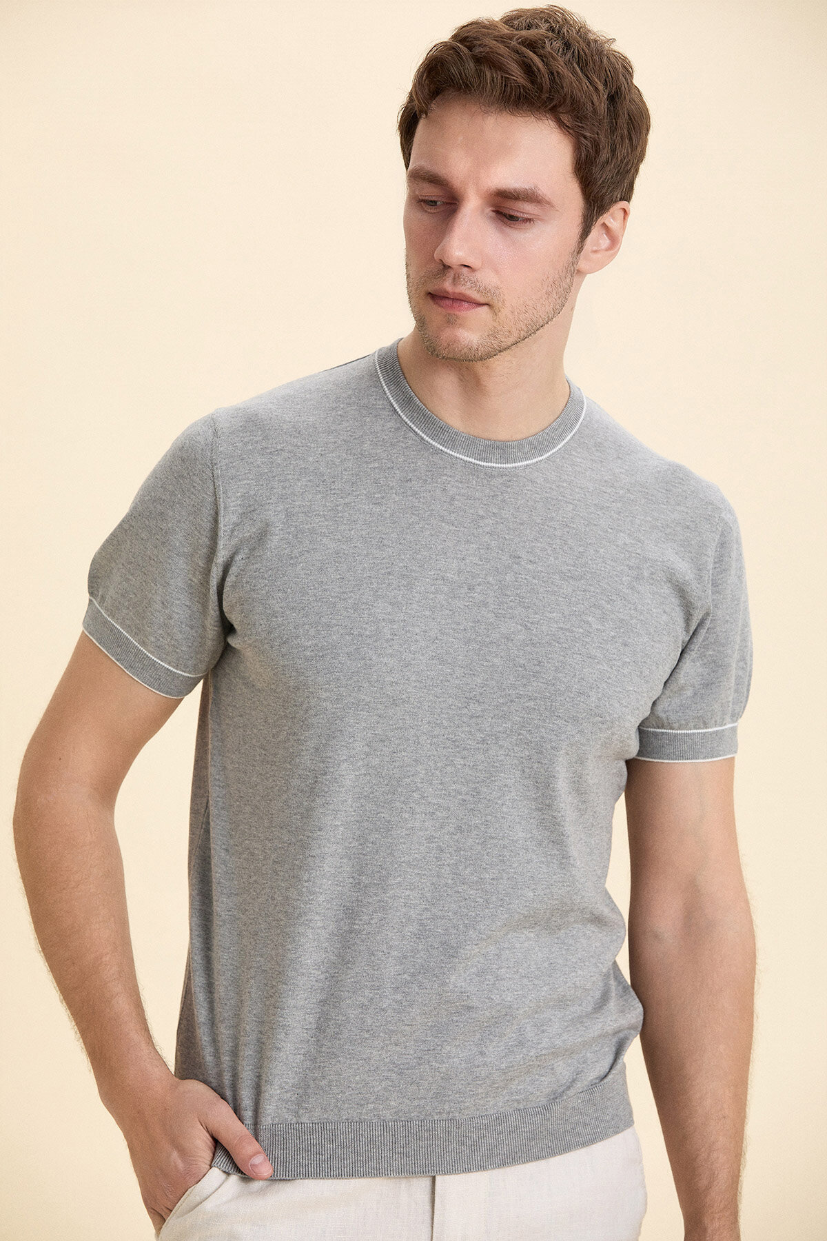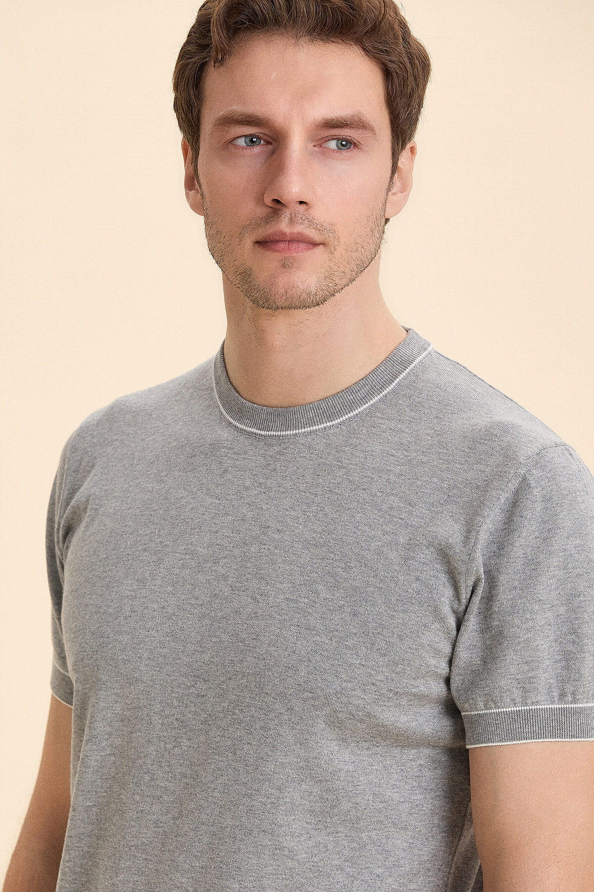 Gri Melanj %100 Pamuk Bisiklet Yaka Polo Kazak