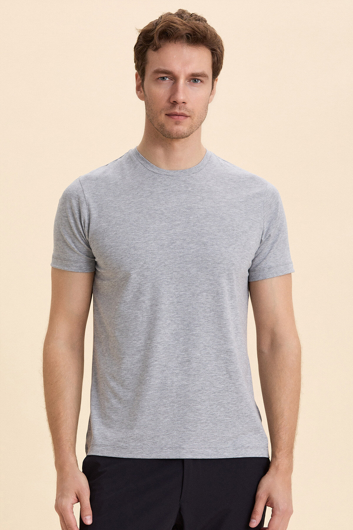 Gri Melanj Pamuklu Basic Tişört