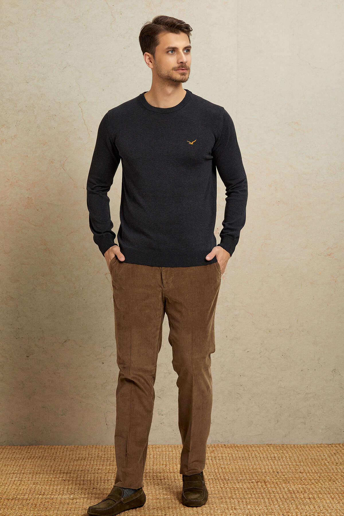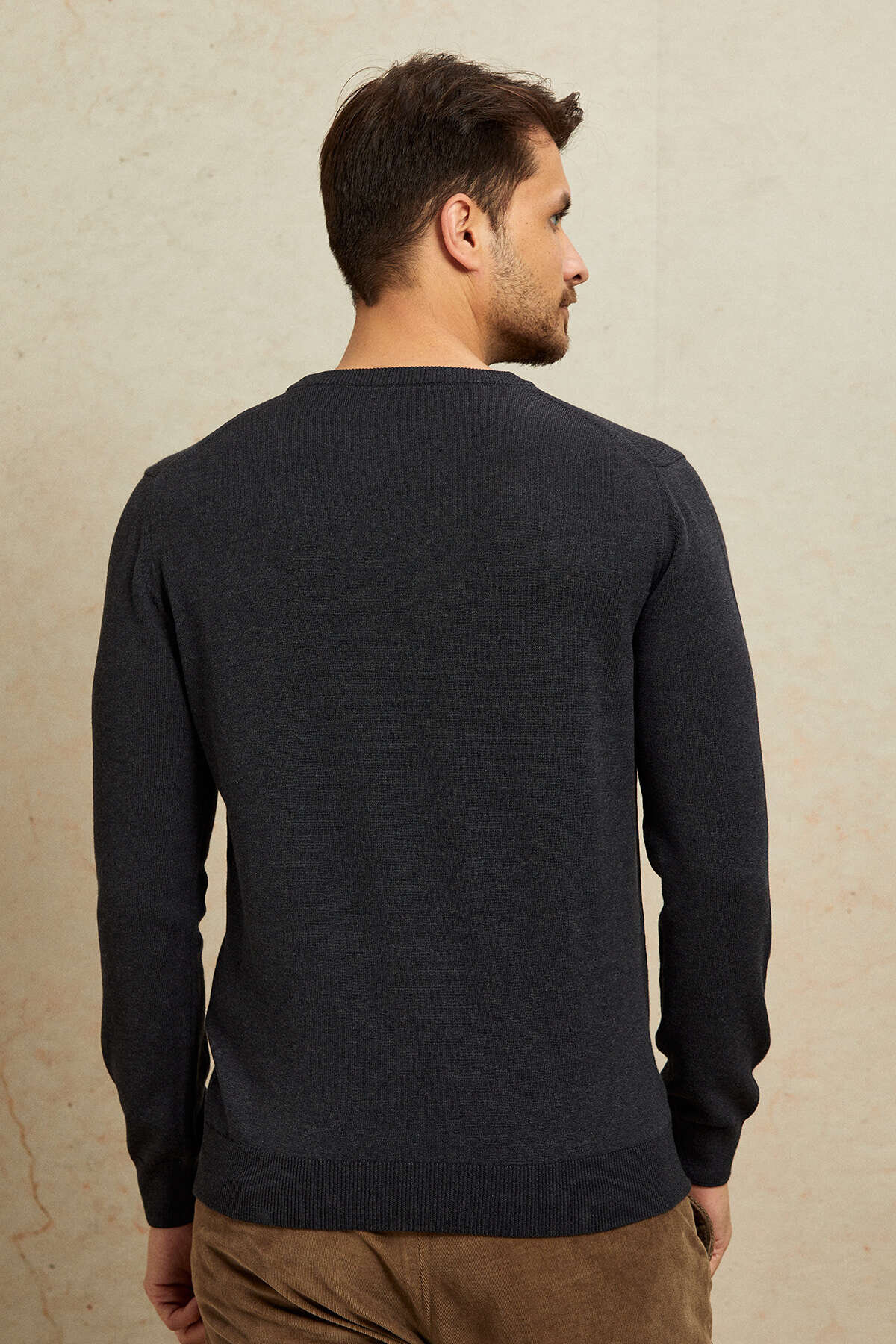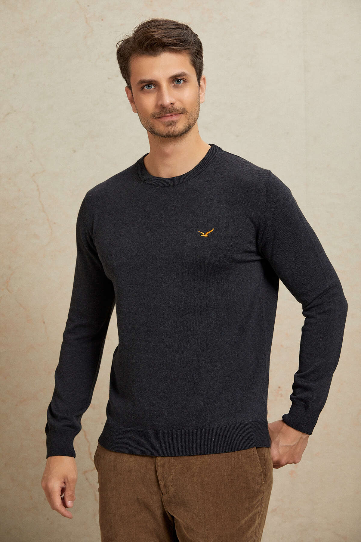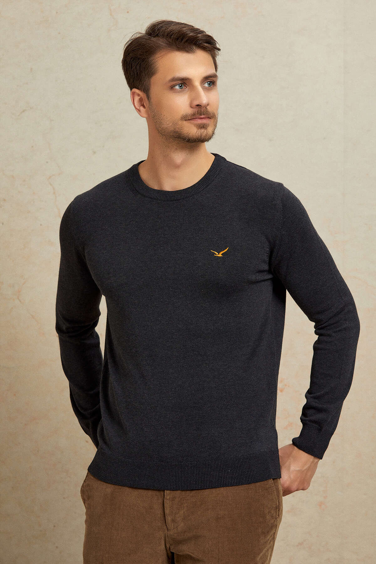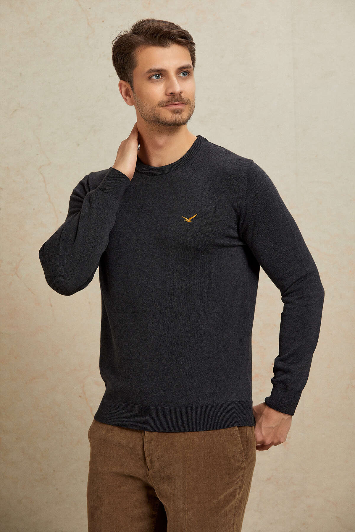 Antrasit %100 Pamuk Yuvarlak Yaka Kazak