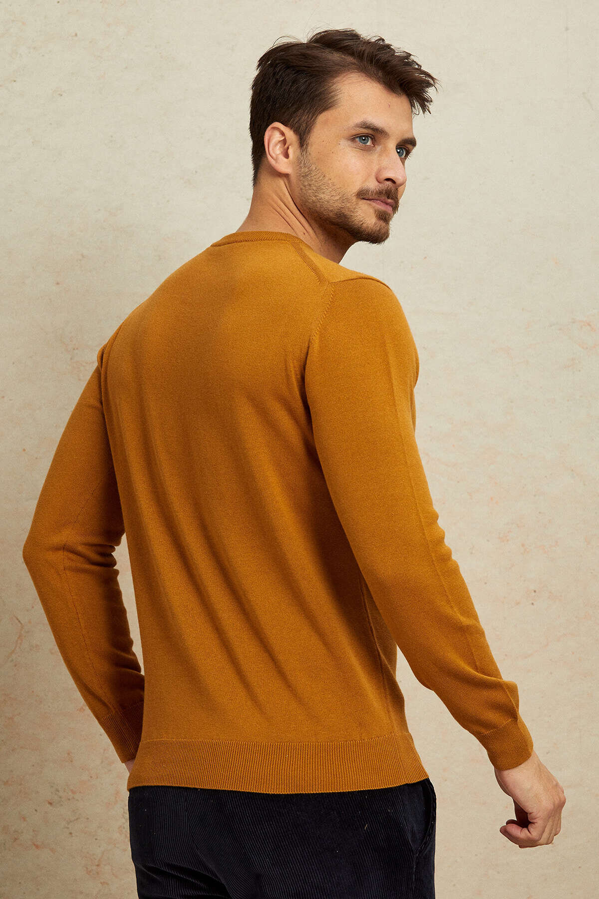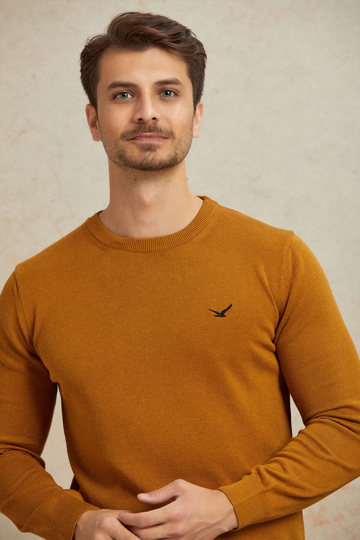 Hardal %100 Pamuk Yuvarlak Yaka Kazak