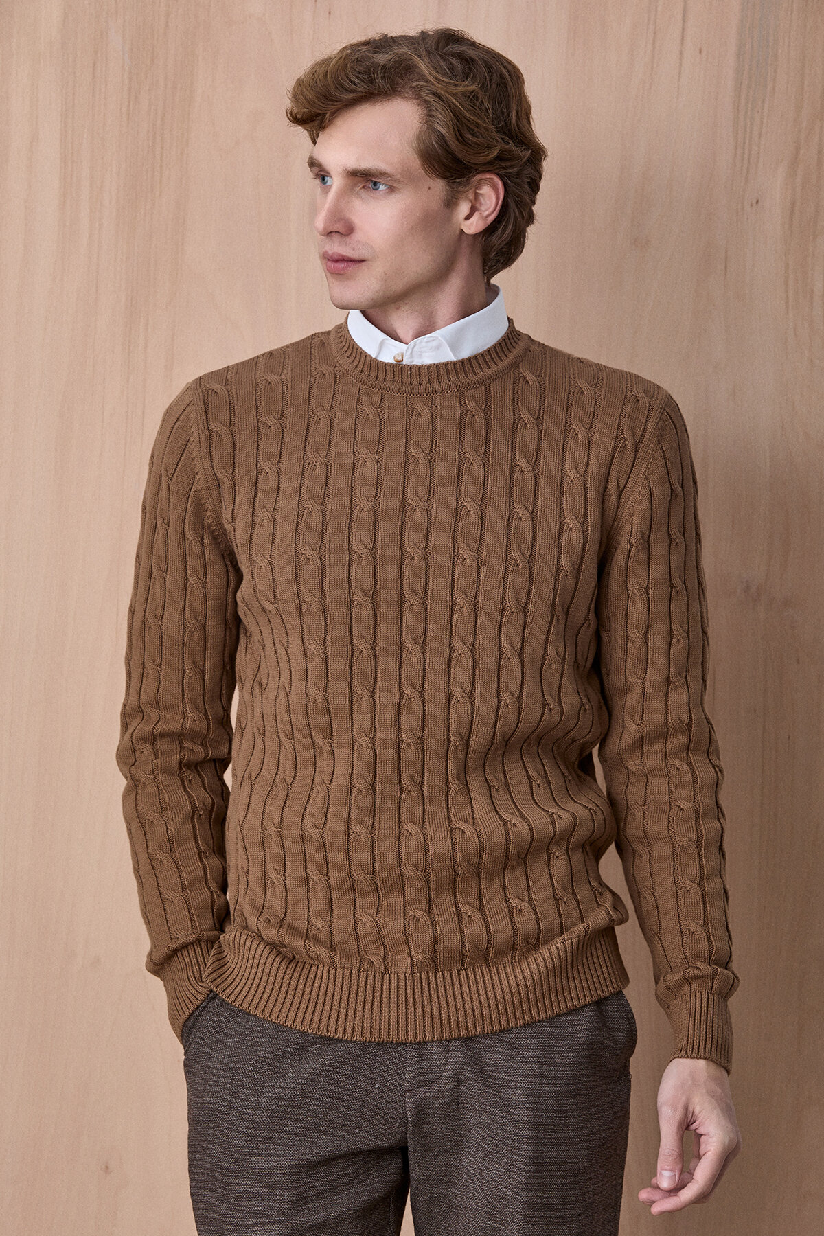 With its soft texture, braid pattern and colorful details inside the collar, this knitwear sweater adds both pleasure and elegance to your style. This knitwear, which you can wear with a shirt or on its own with its round neck and custom fit cut, will be an indispensable part of the seasonal transitions.
