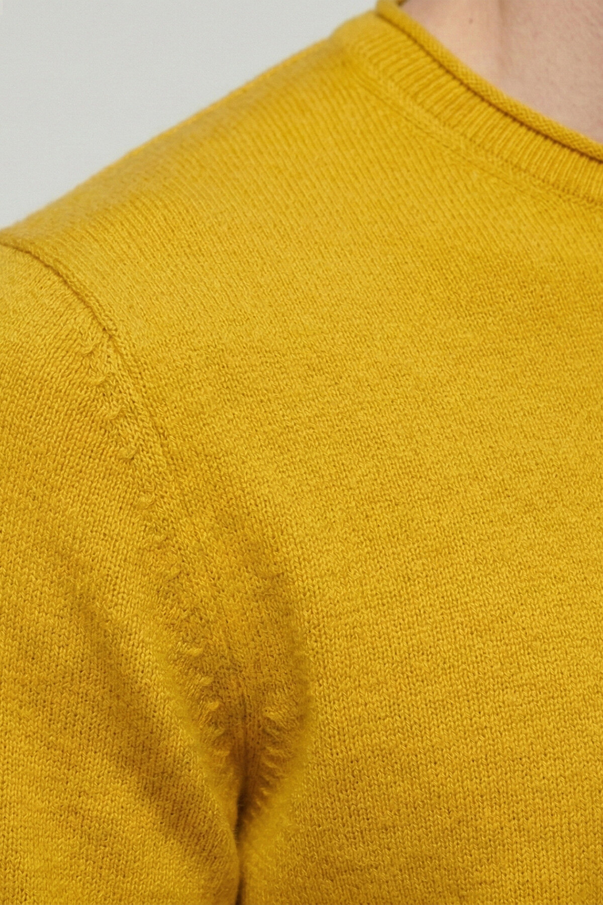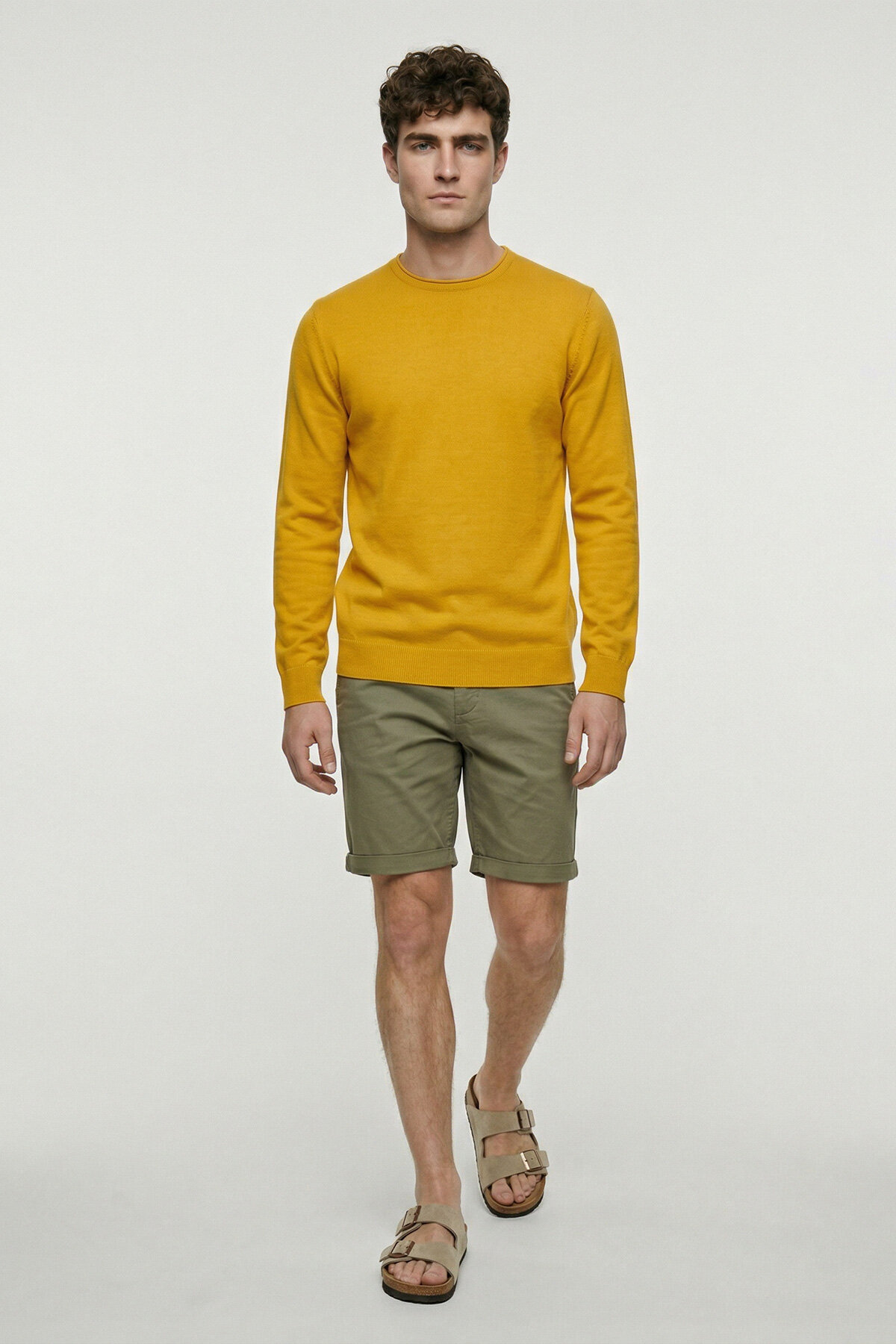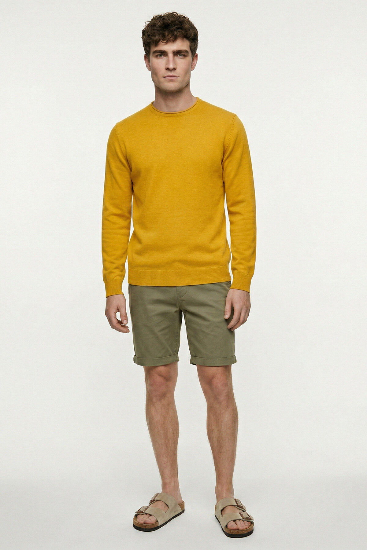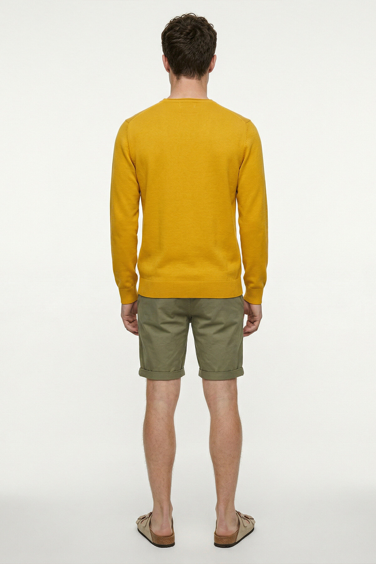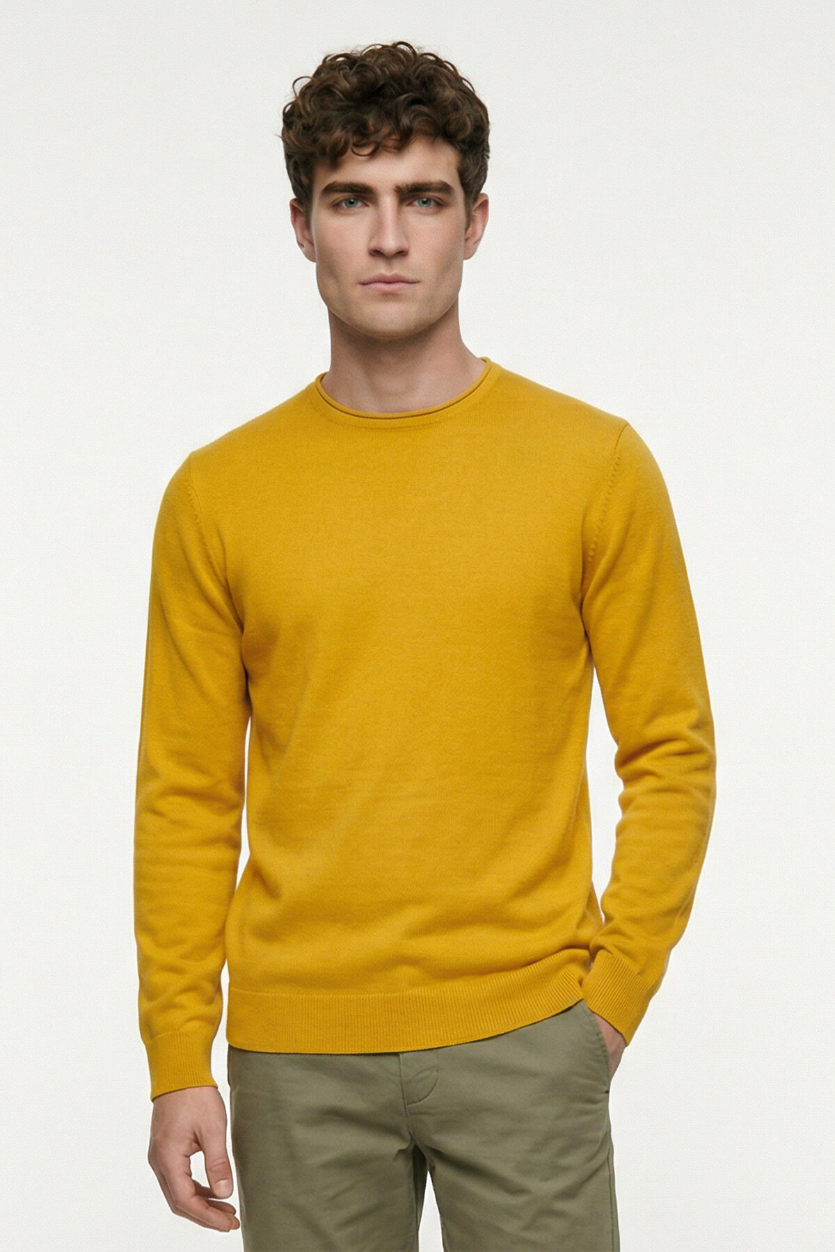 Sarı %100 Pamuk Uzun Kollu İnce Kazak