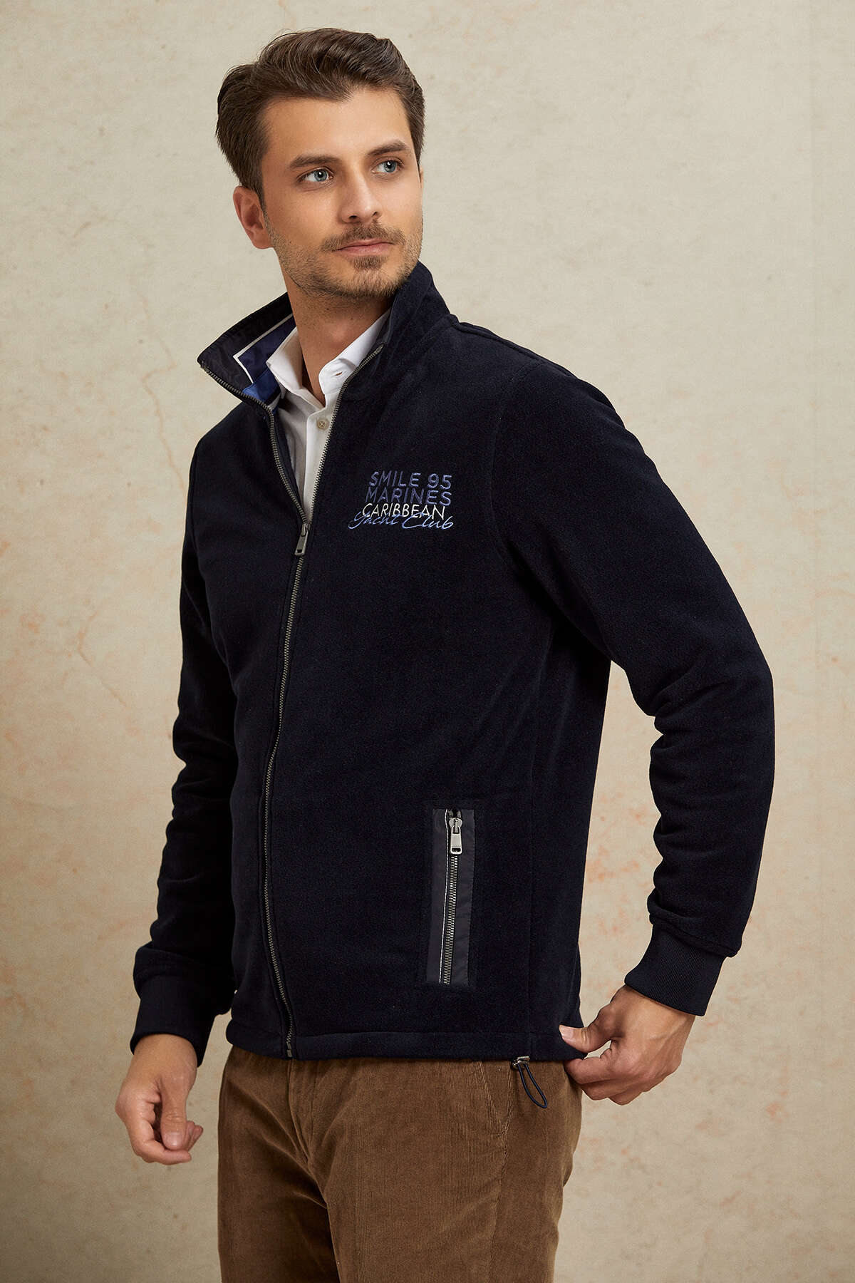 Caribbean Lacivert Fermuarlı Sweatshirt, sportif ve modern tasarımıyla günlük stilin konforlu tamamlayıcılarından biridir. %100 polyester kumaşı sayesinde hafif, dayanıklı ve pratik bir kullanım sunar. Yüksek yaka tasarımı ve tam fermuarlı yapısı farklı kullanım alternatifleri sağlarken, göğüs kısmındaki yazı detayı ürüne dinamik bir karakter kazandırır. Günlük kombinlerde ve hafta sonu stilinde rahatlıkla tercih edilebilecek fonksiyonel bir parçadır.