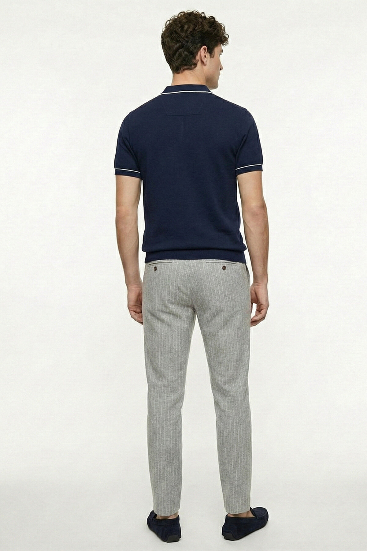 This extra-thin cotton short sleeve polo knitwear, which draws attention with its modern and simple design, offers elegance and comfort together in your daily combinations. While it keeps you cool in summer thanks to its breathable structure, it adds a modern style to your daily wear with its elegant thin contrast on the collar and placket edge.