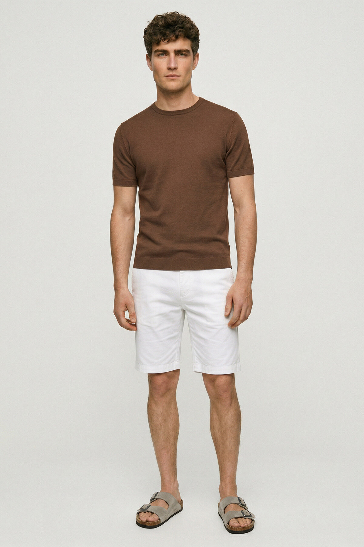 Clermont Kahverengi %100 Pamuk Triko Tişört, minimal tasarımı ve doğal dokusuyla yaz stiline sade ve modern bir görünüm kazandırır. %100 pamuk triko kumaşı sayesinde gün boyu nefes alabilen ve konforlu bir kullanım sunarken, yalın tasarımı ürünü hem günlük kombinlerde hem de smart casual stil içerisinde rahatlıkla kullanılabilir hale getirir. Zamansız çizgileri sayesinde gardırobun çok yönlü parçalarından biri olmaya adaydır.