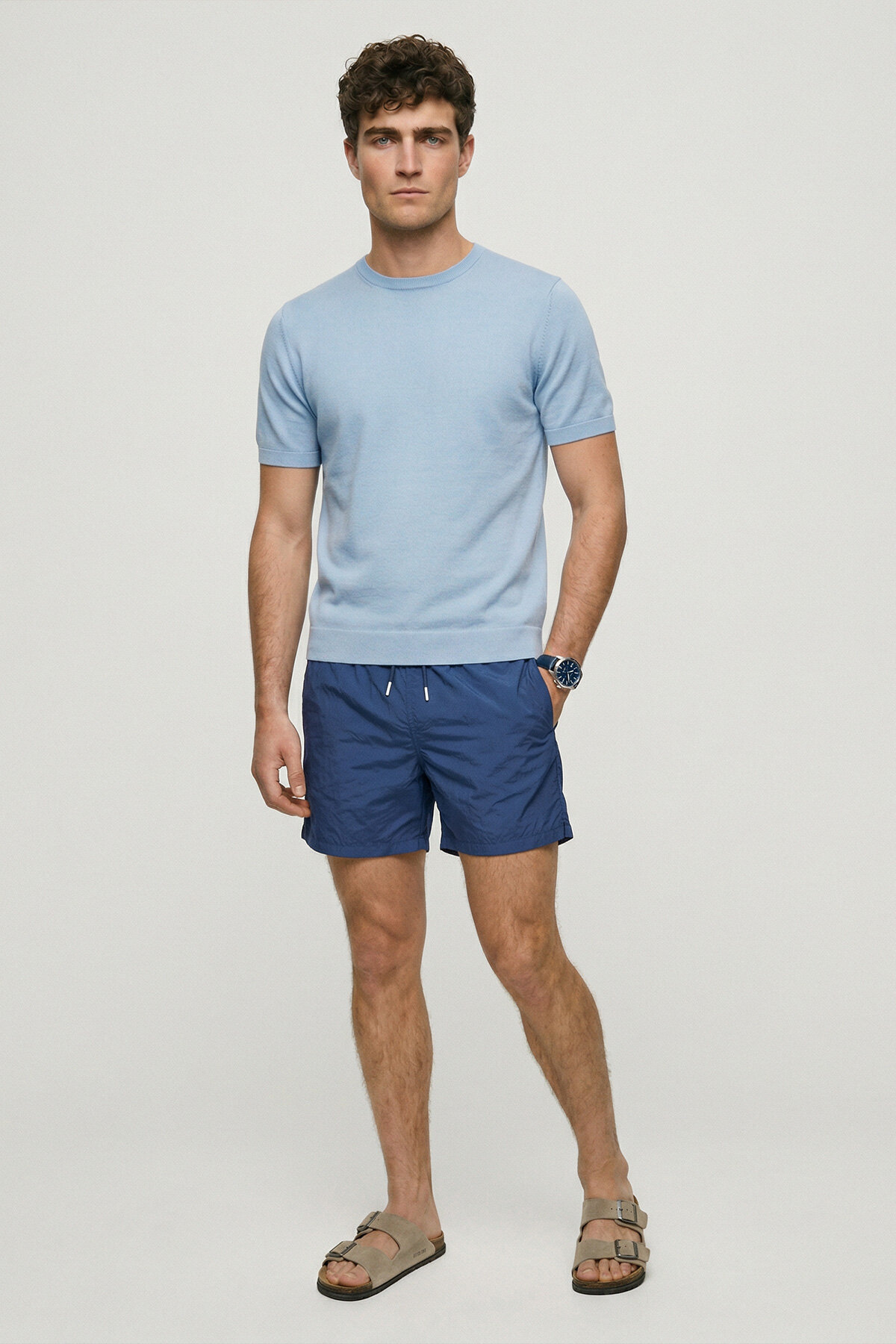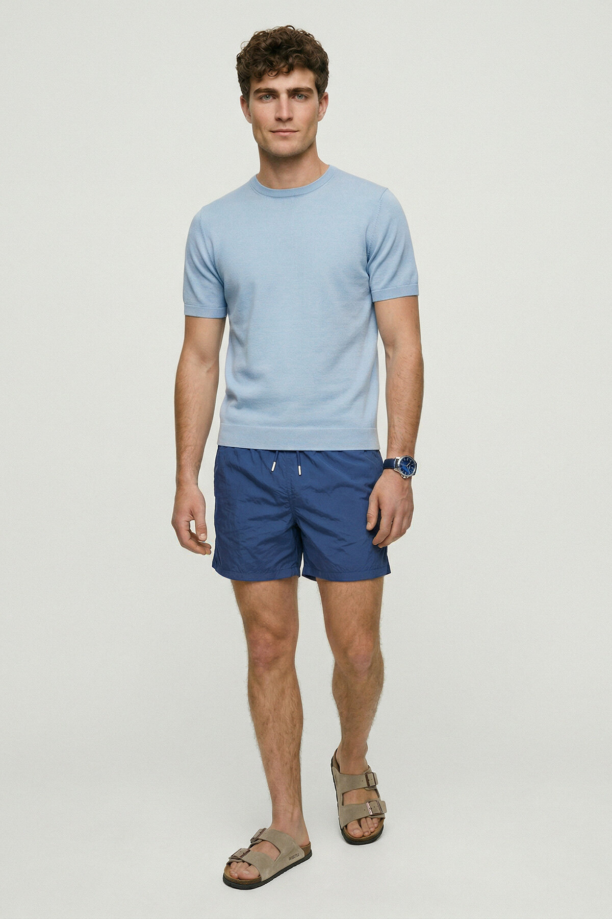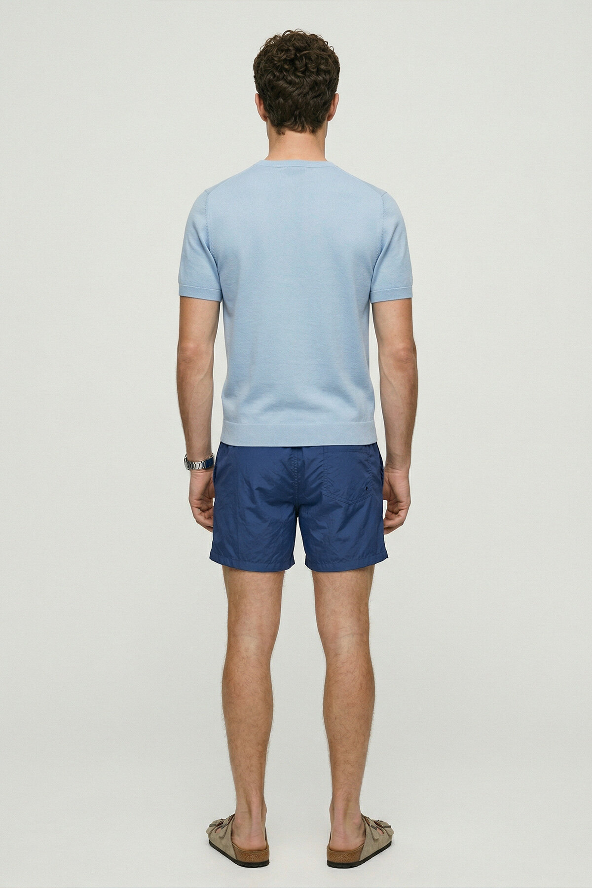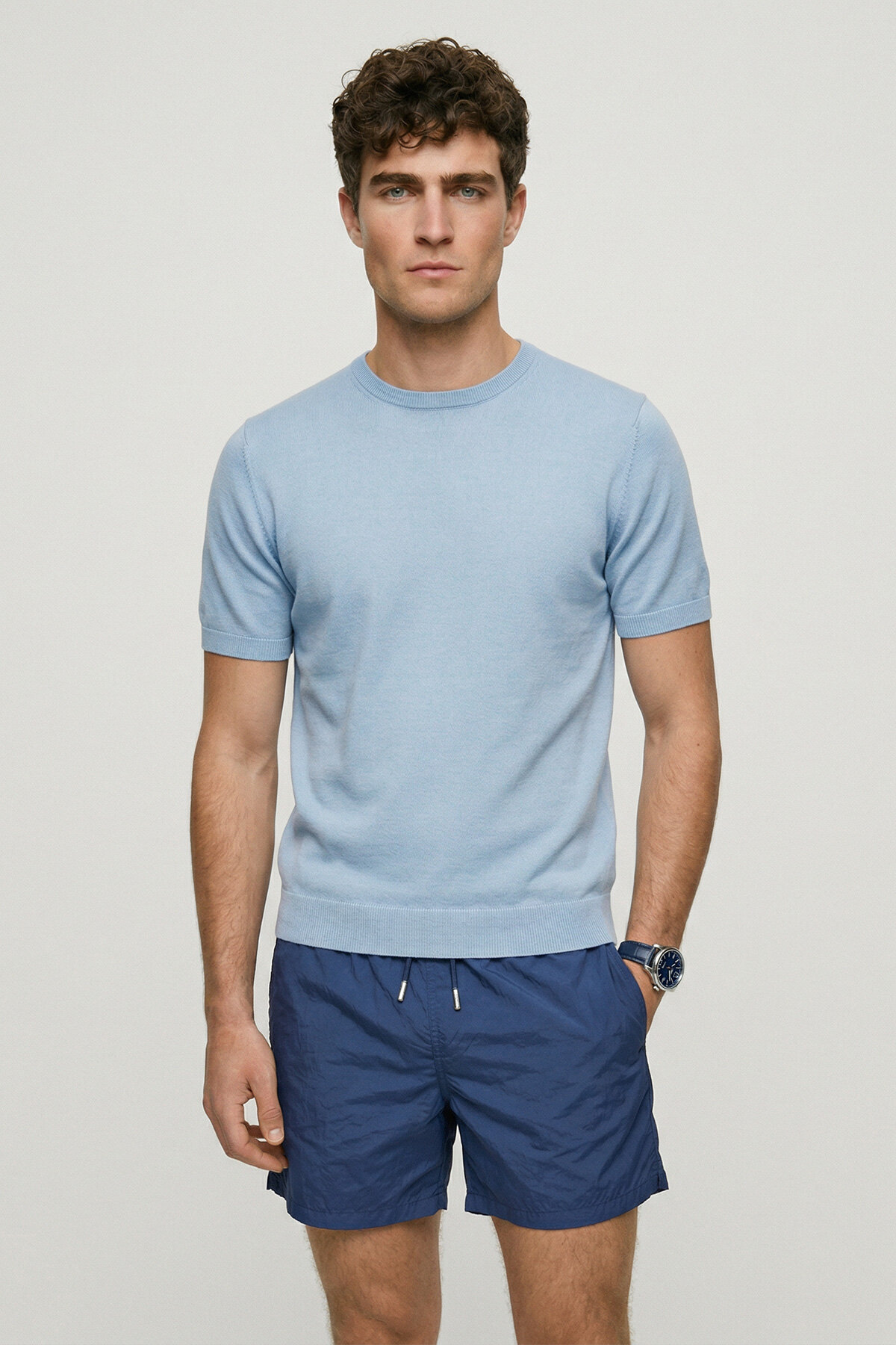 Mavi %100 Pamuk Bisiklet Yaka Triko Tişört