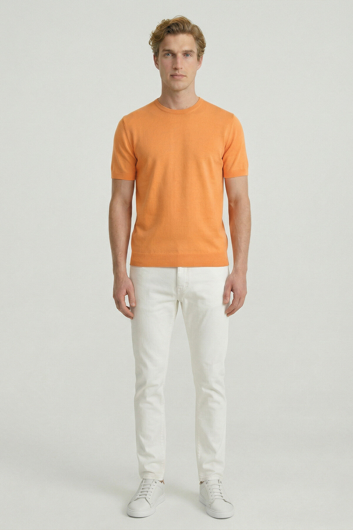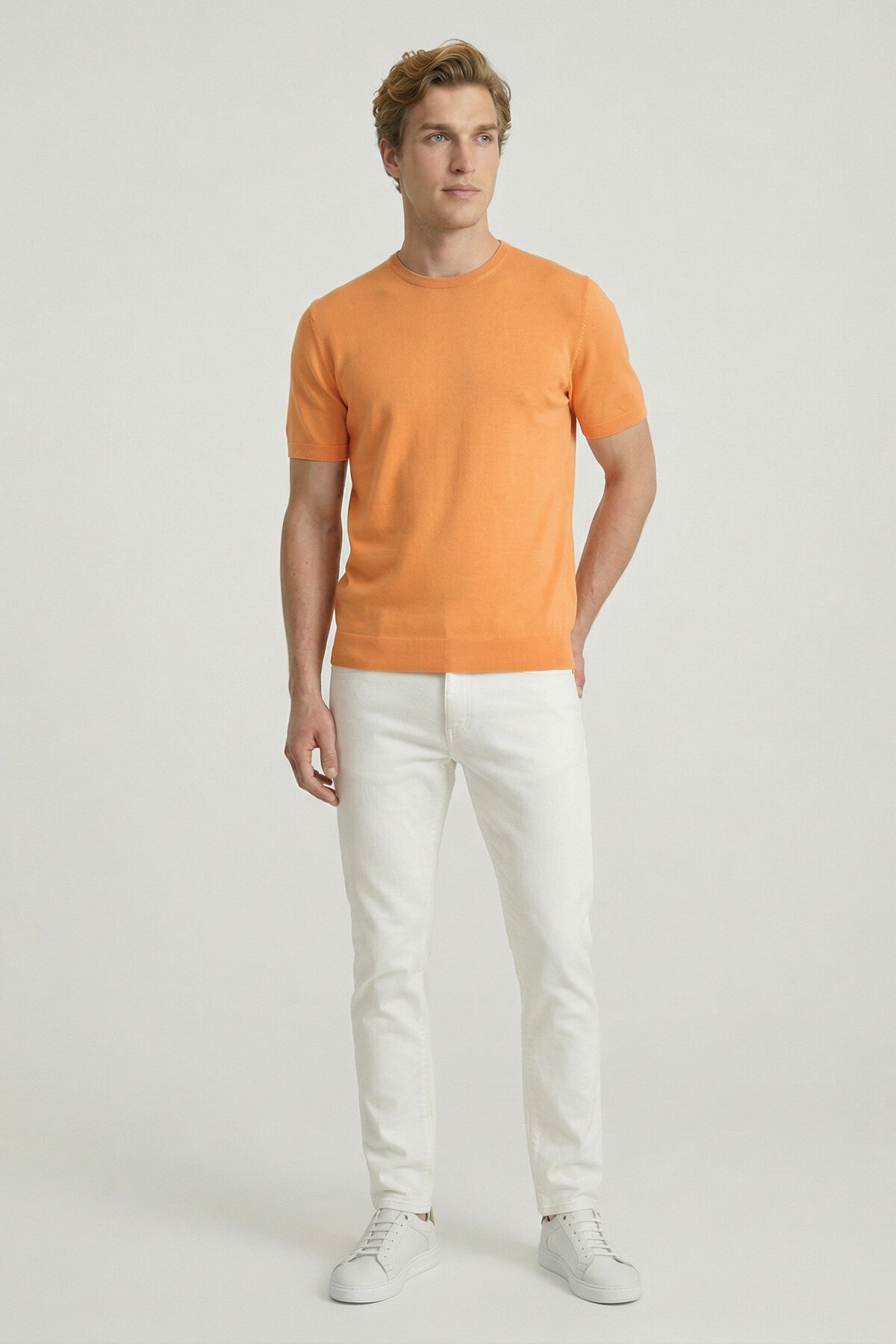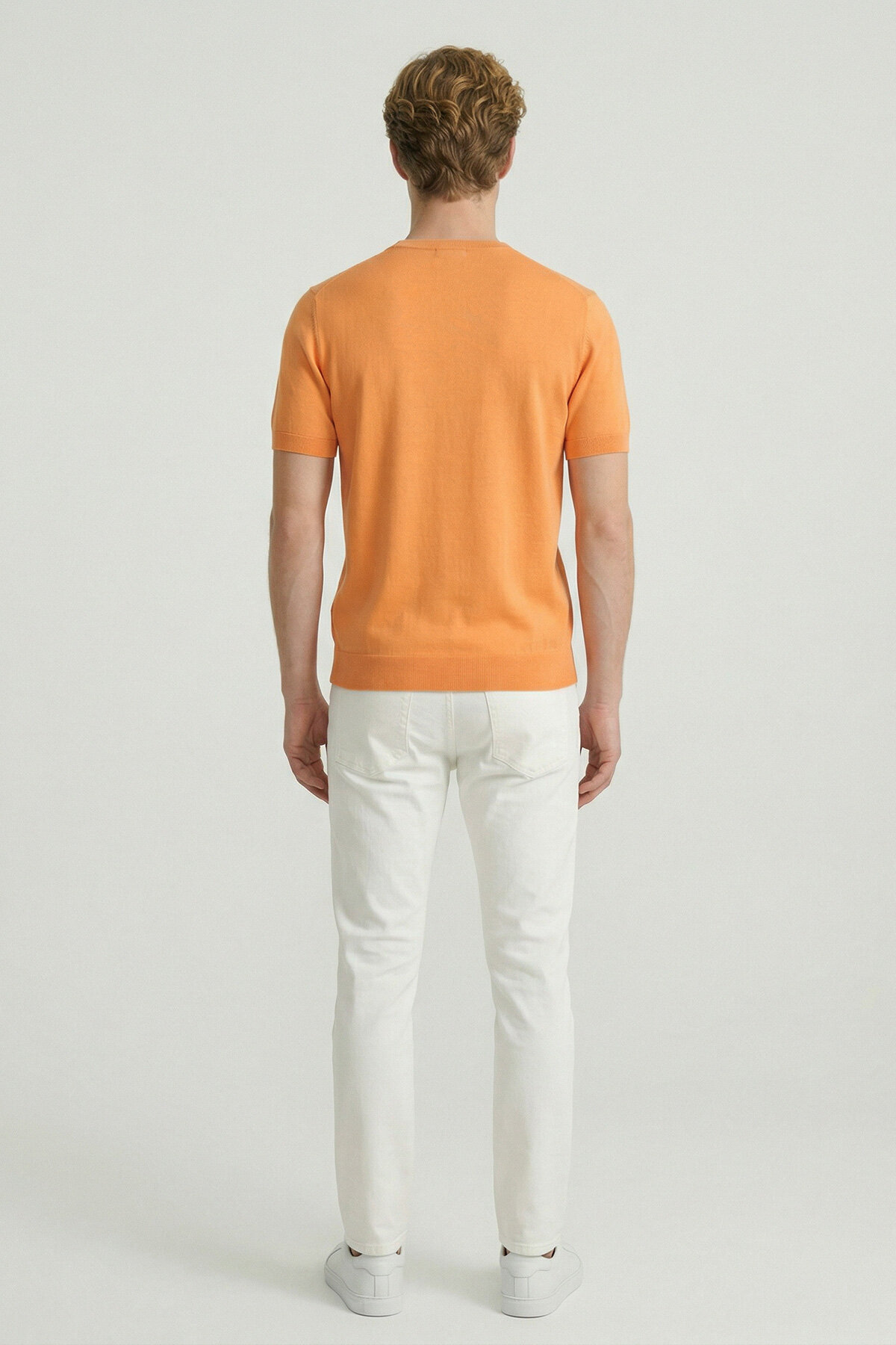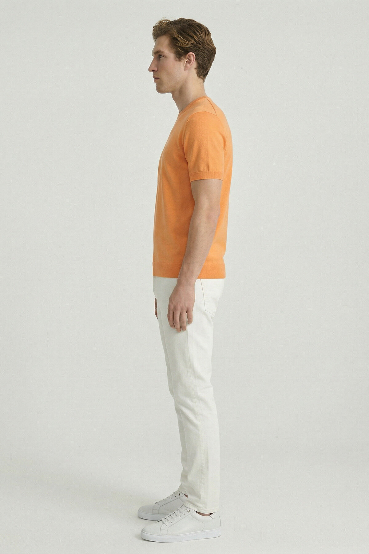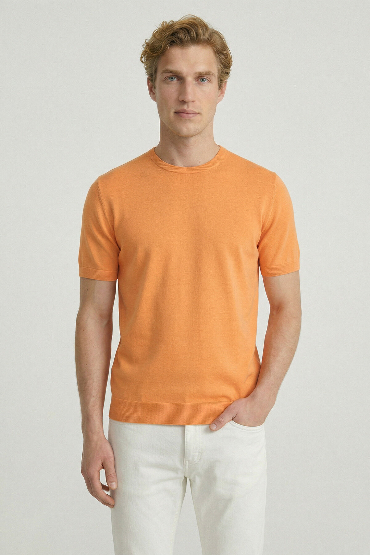 Turuncu %100 Pamuk Bisiklet Yaka Triko Tişört