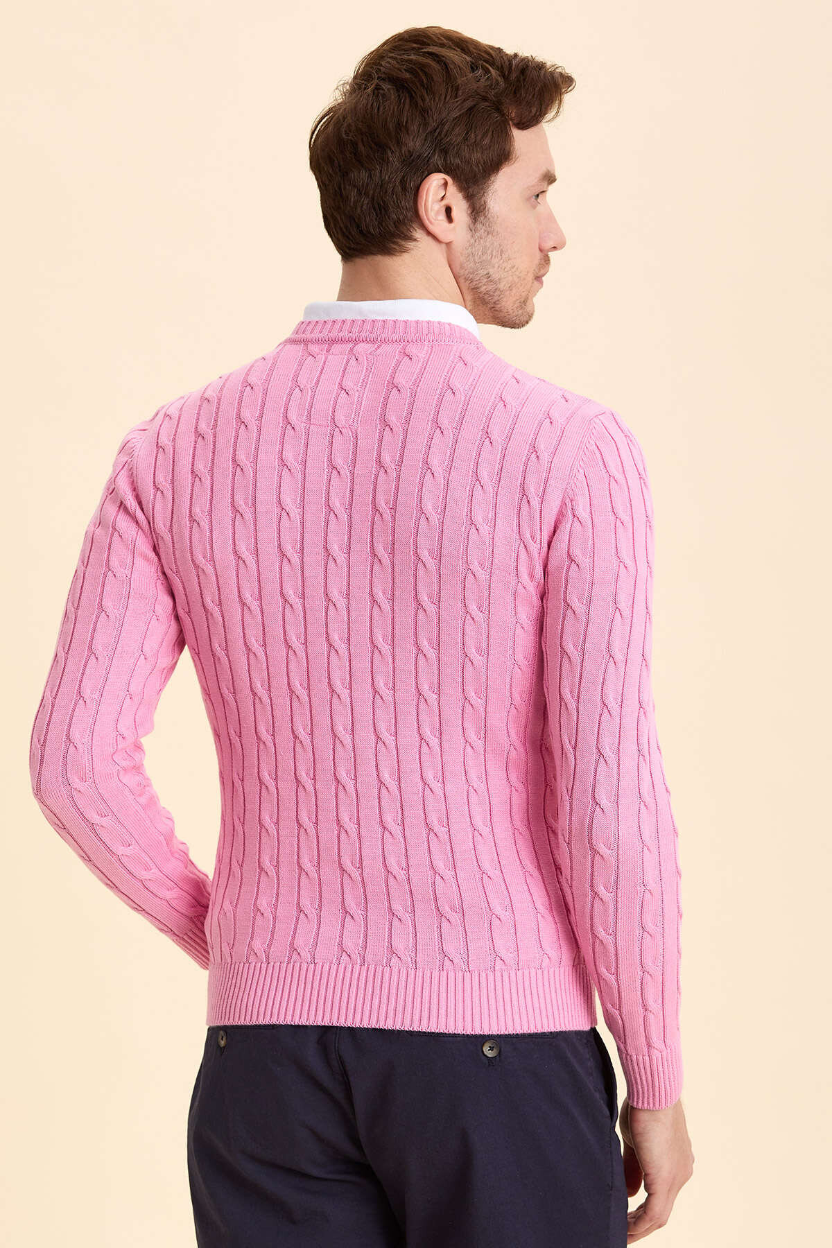 Dario Pembe %100 Pamuk Saç Örgü Bisiklet Yaka Kazak