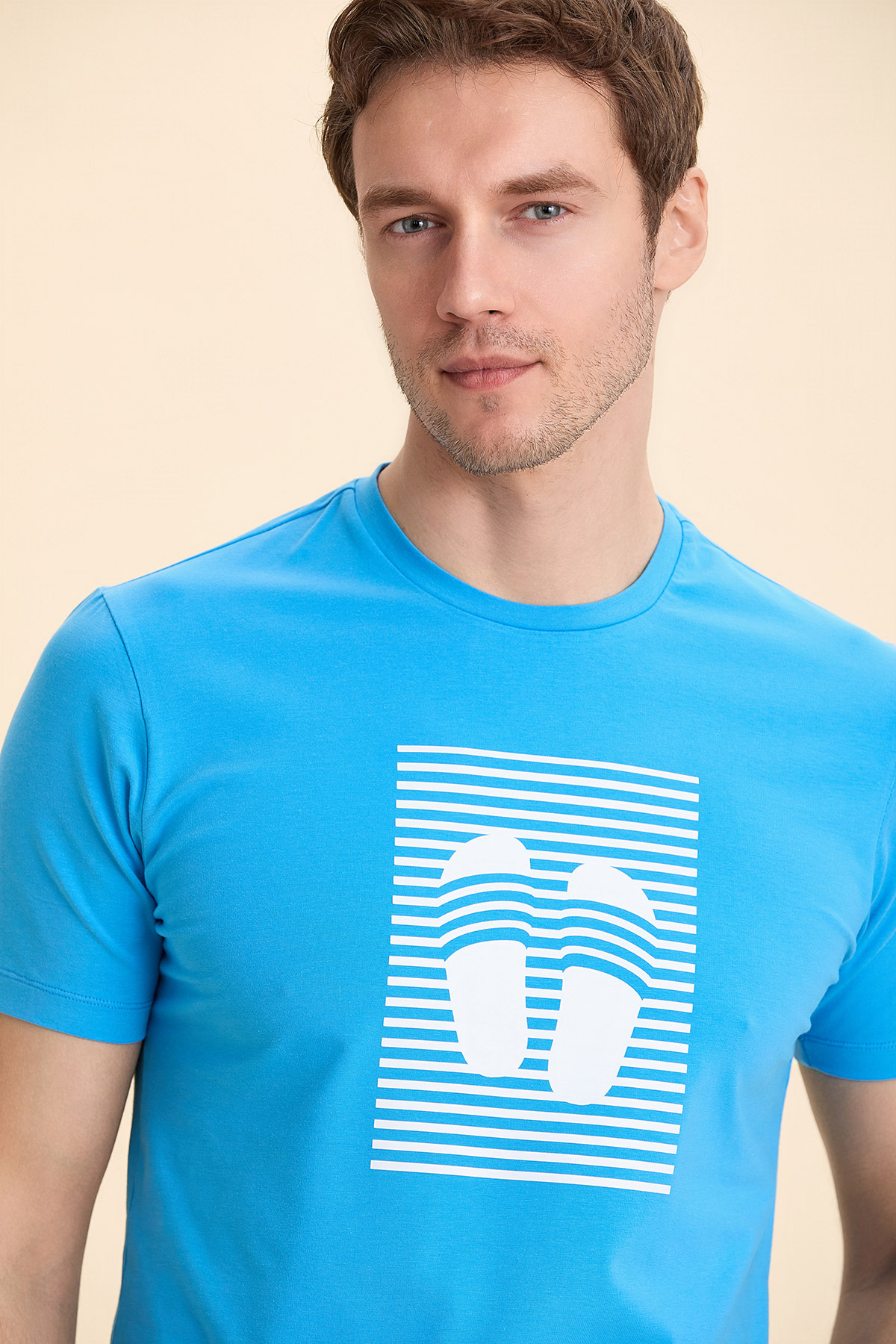 Delroy Turkuaz Pamuklu Baskılı Tişört