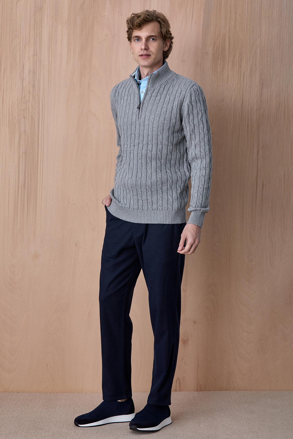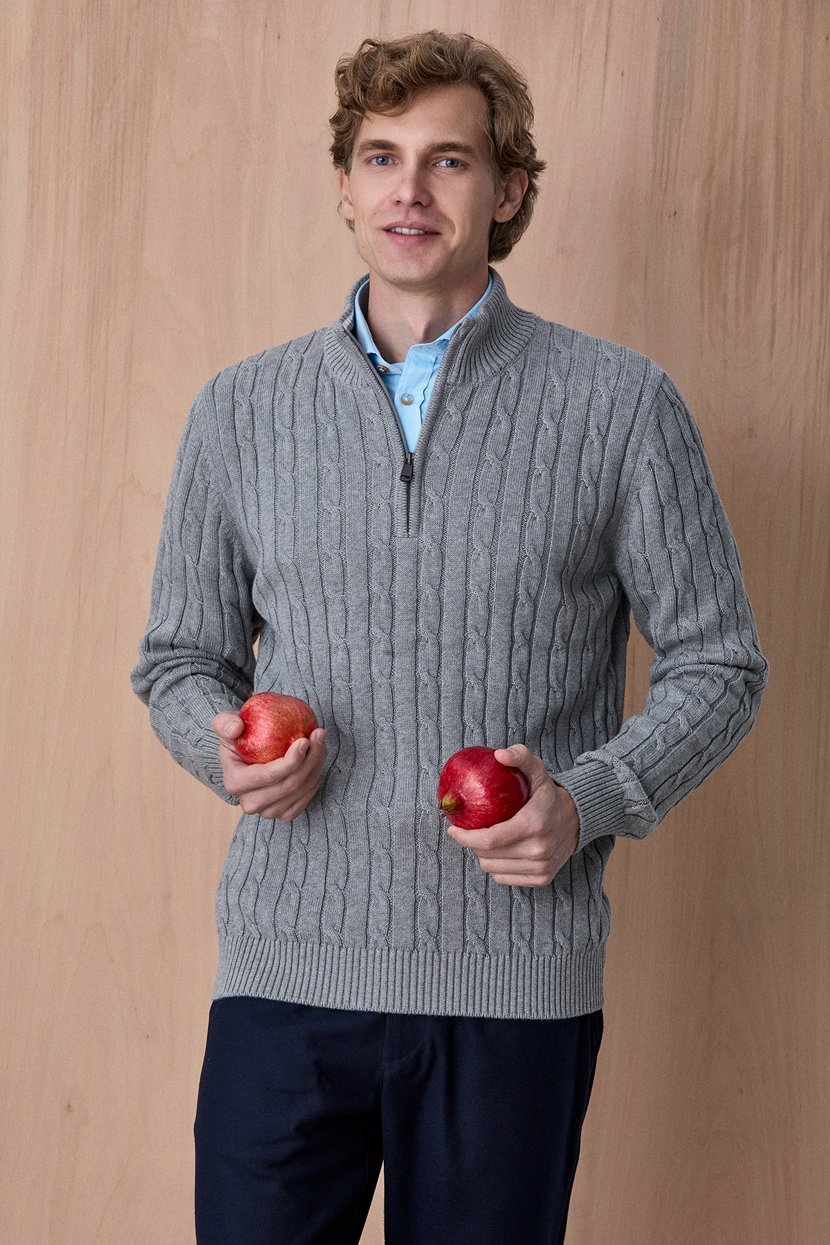 Dramen Gri Melanj %100 Pamuk Fermuarlı Triko