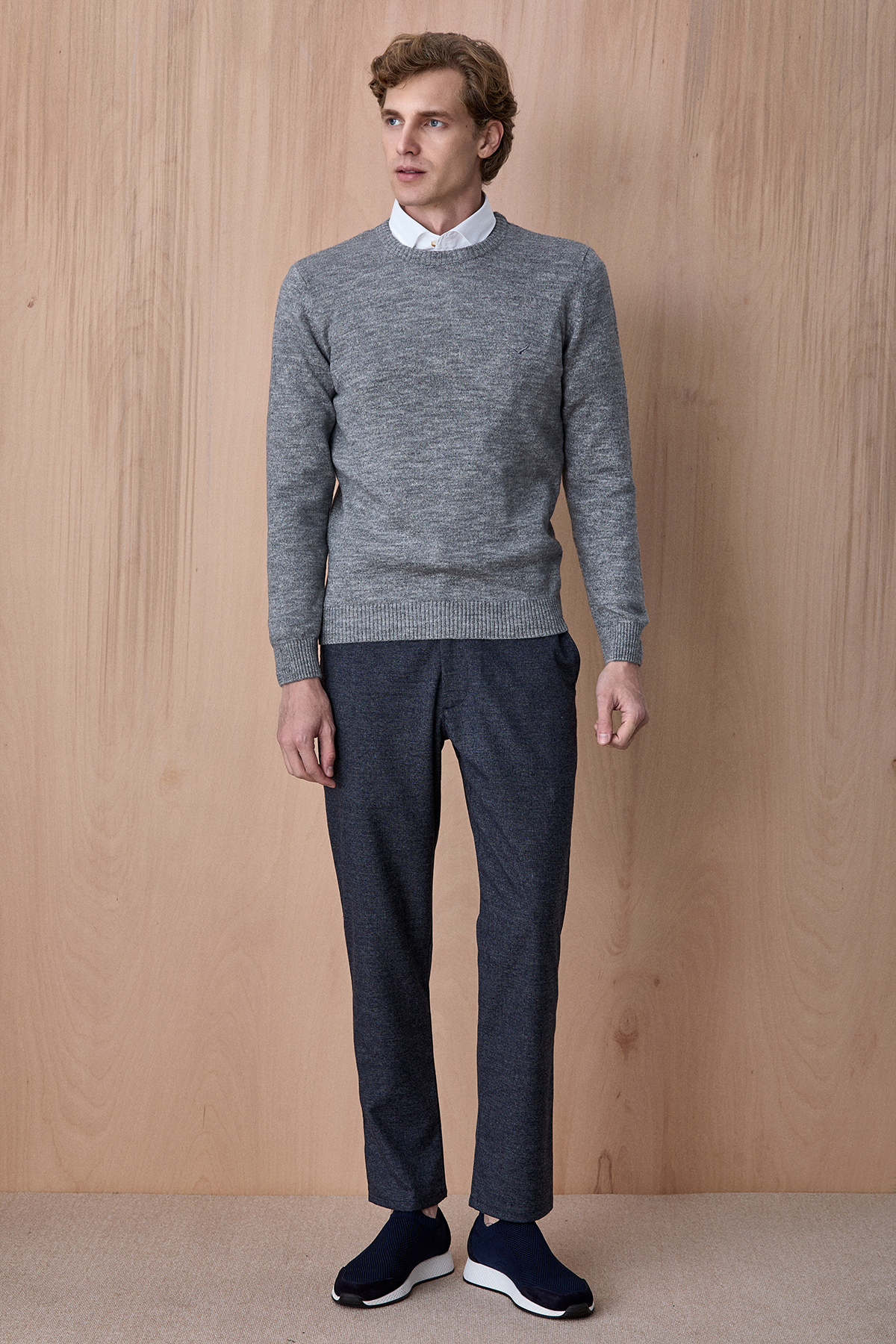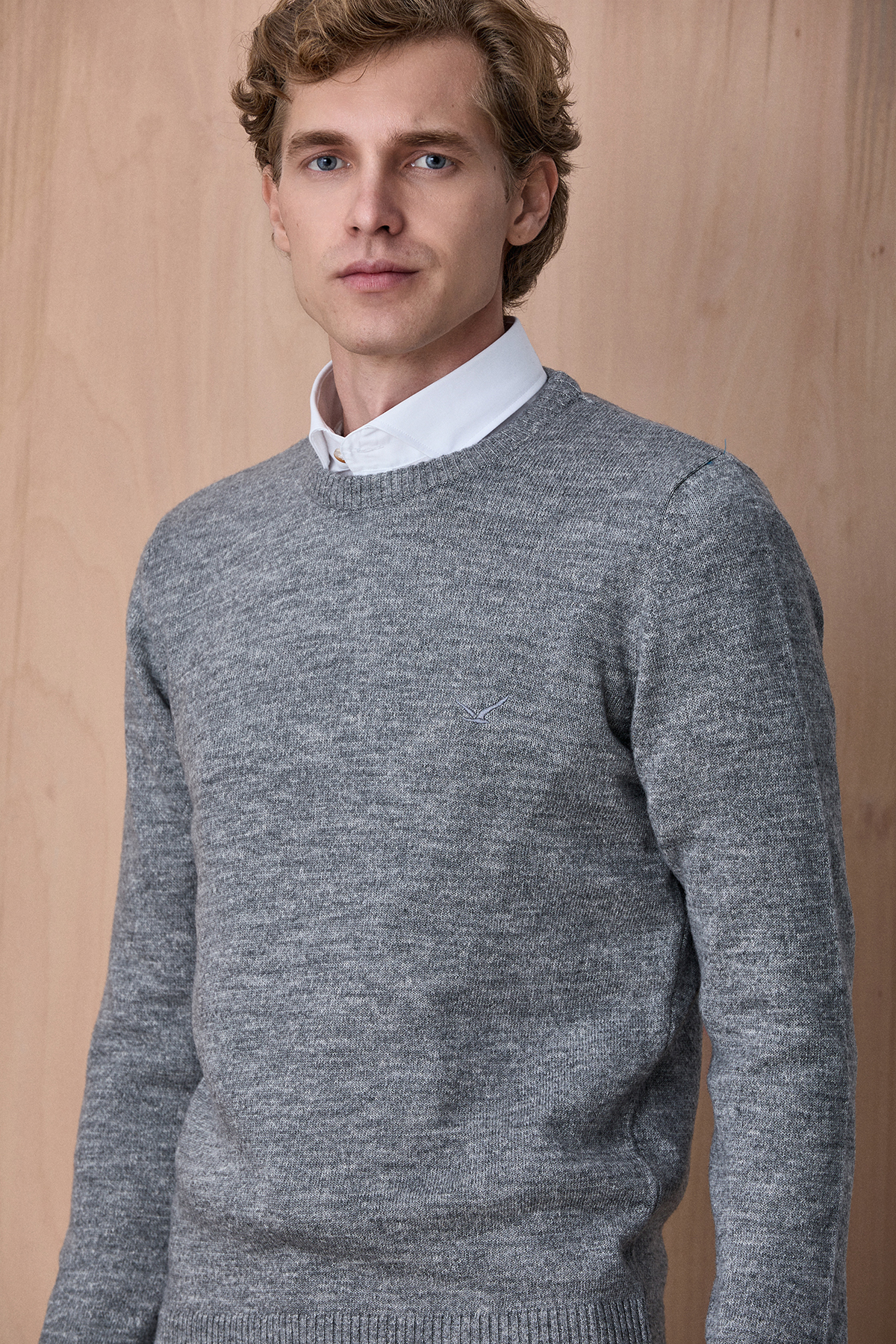 Fanne Gri Pamuklu Bisiklet Yaka Triko