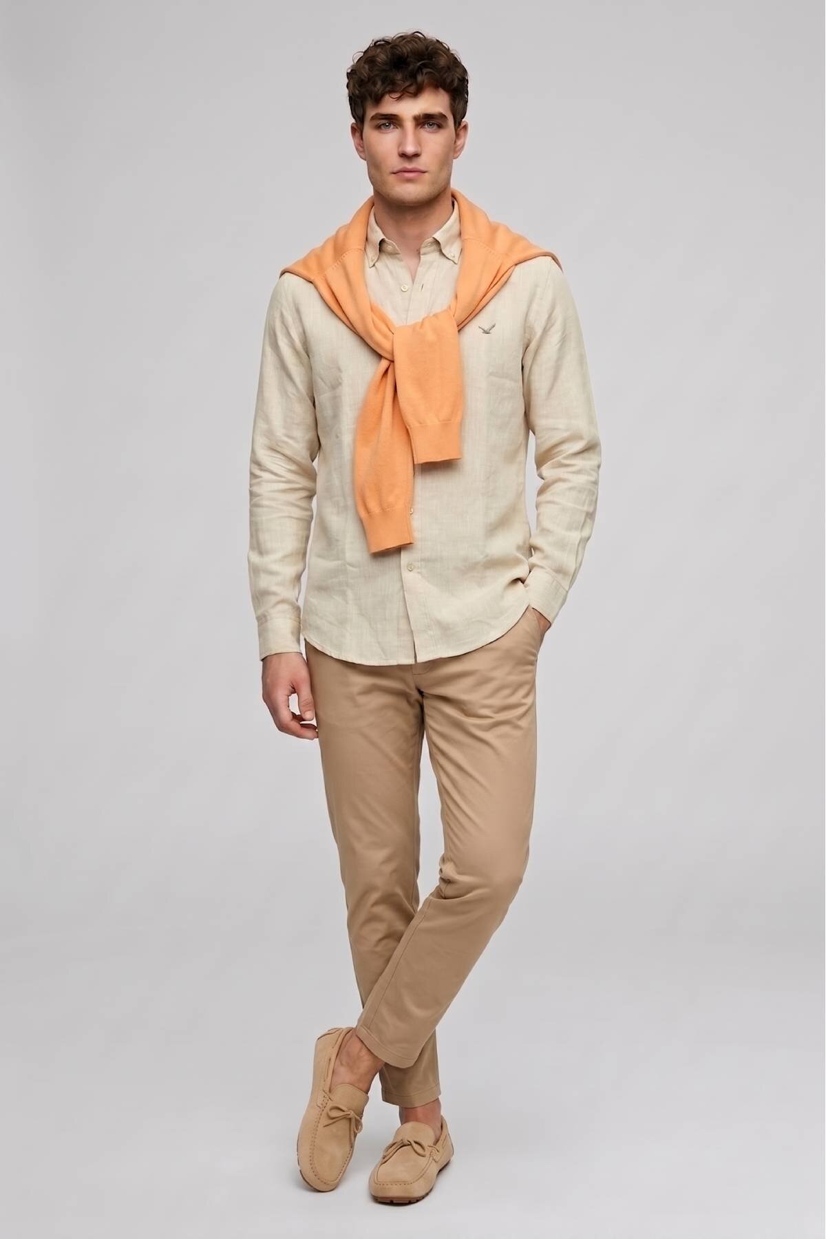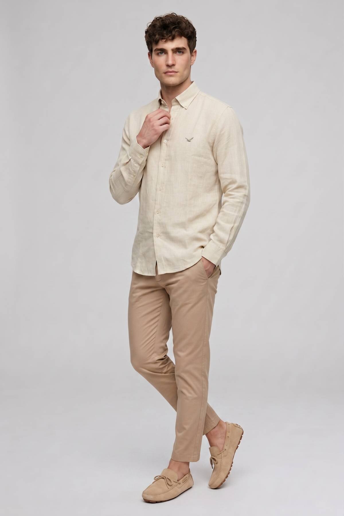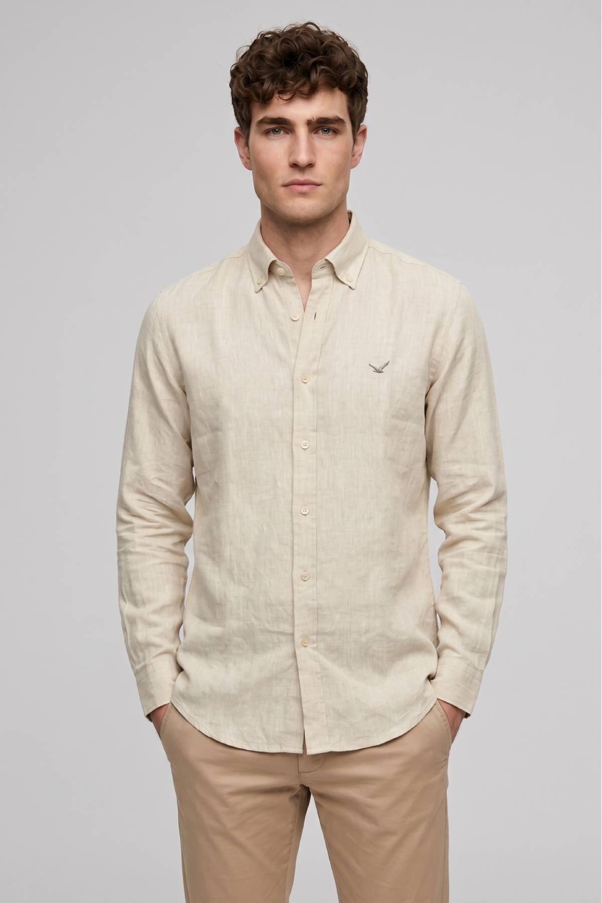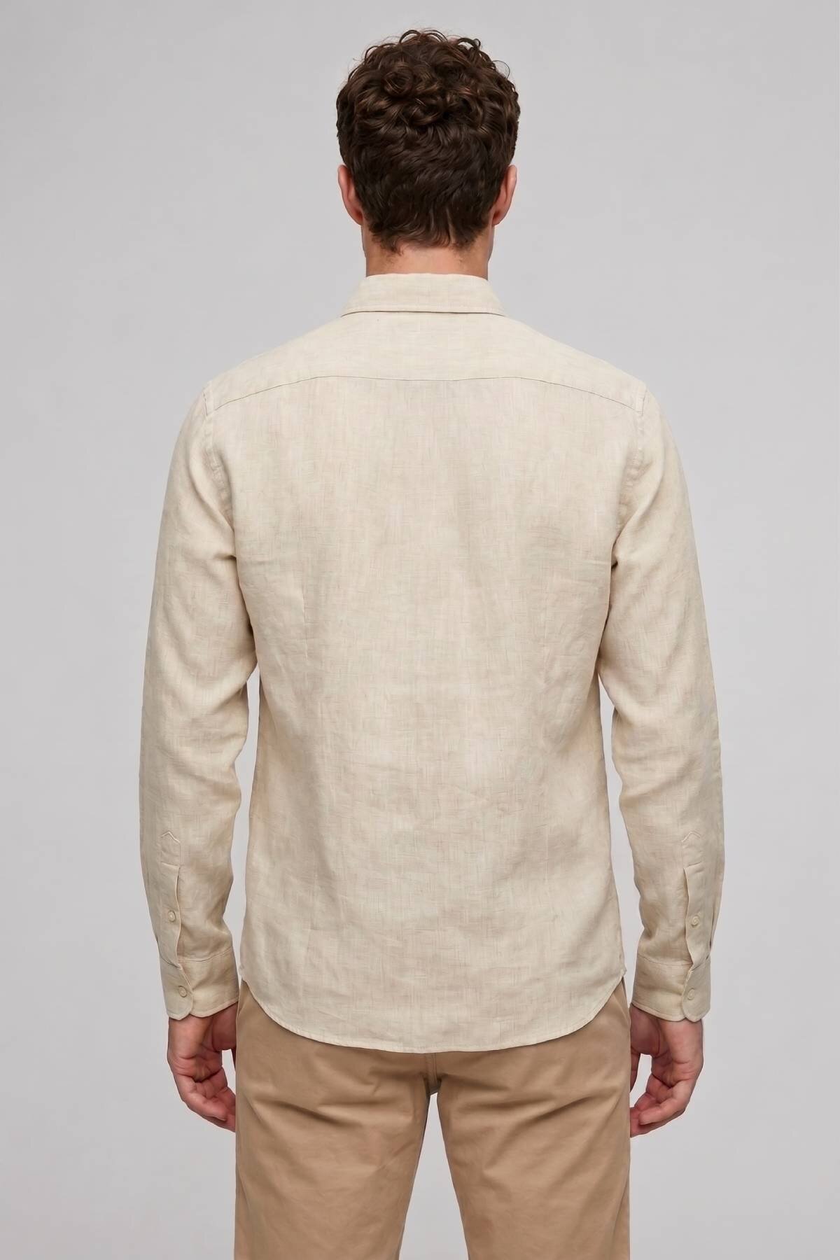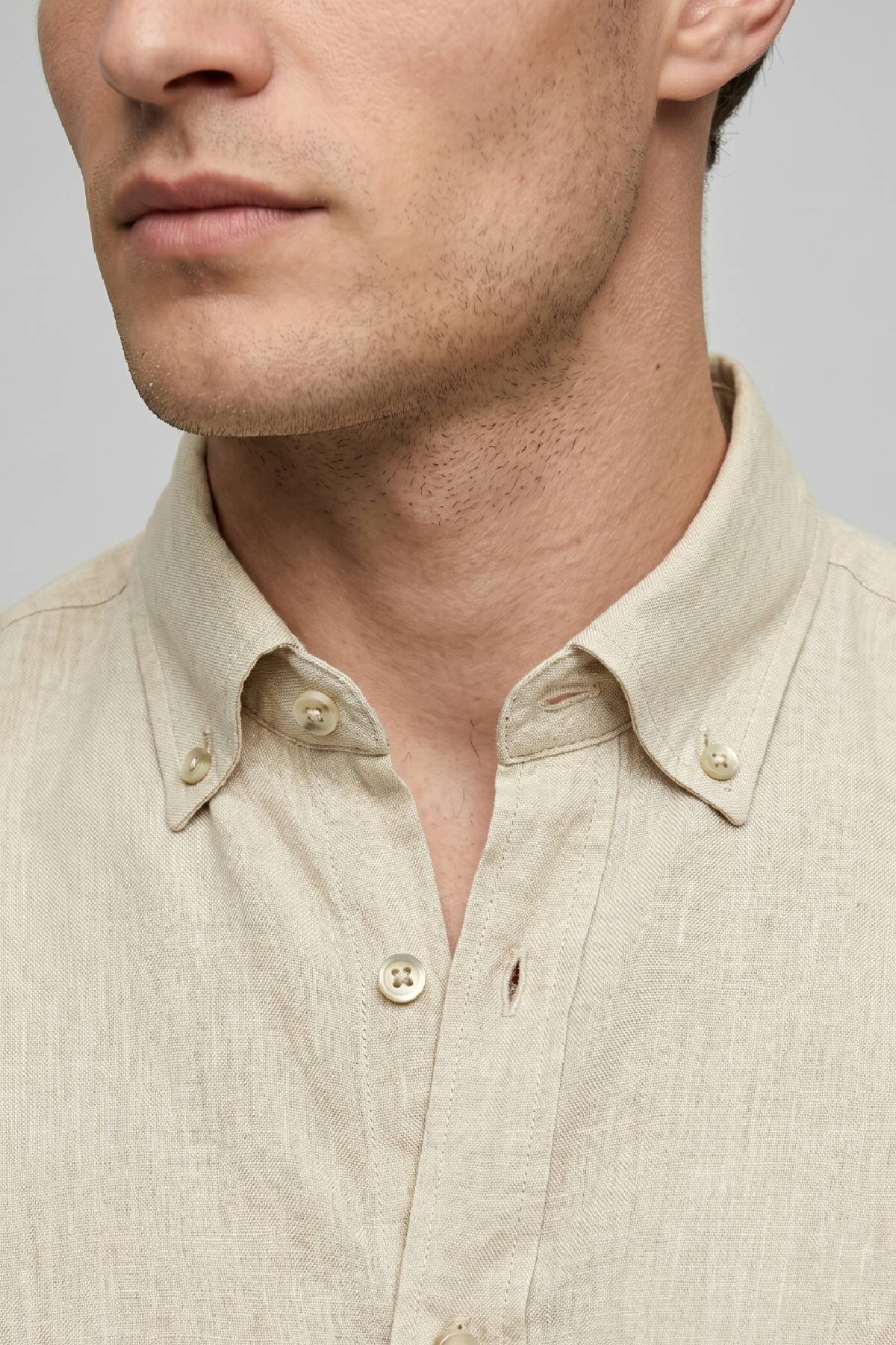 Bej %100 Keten Gömlek