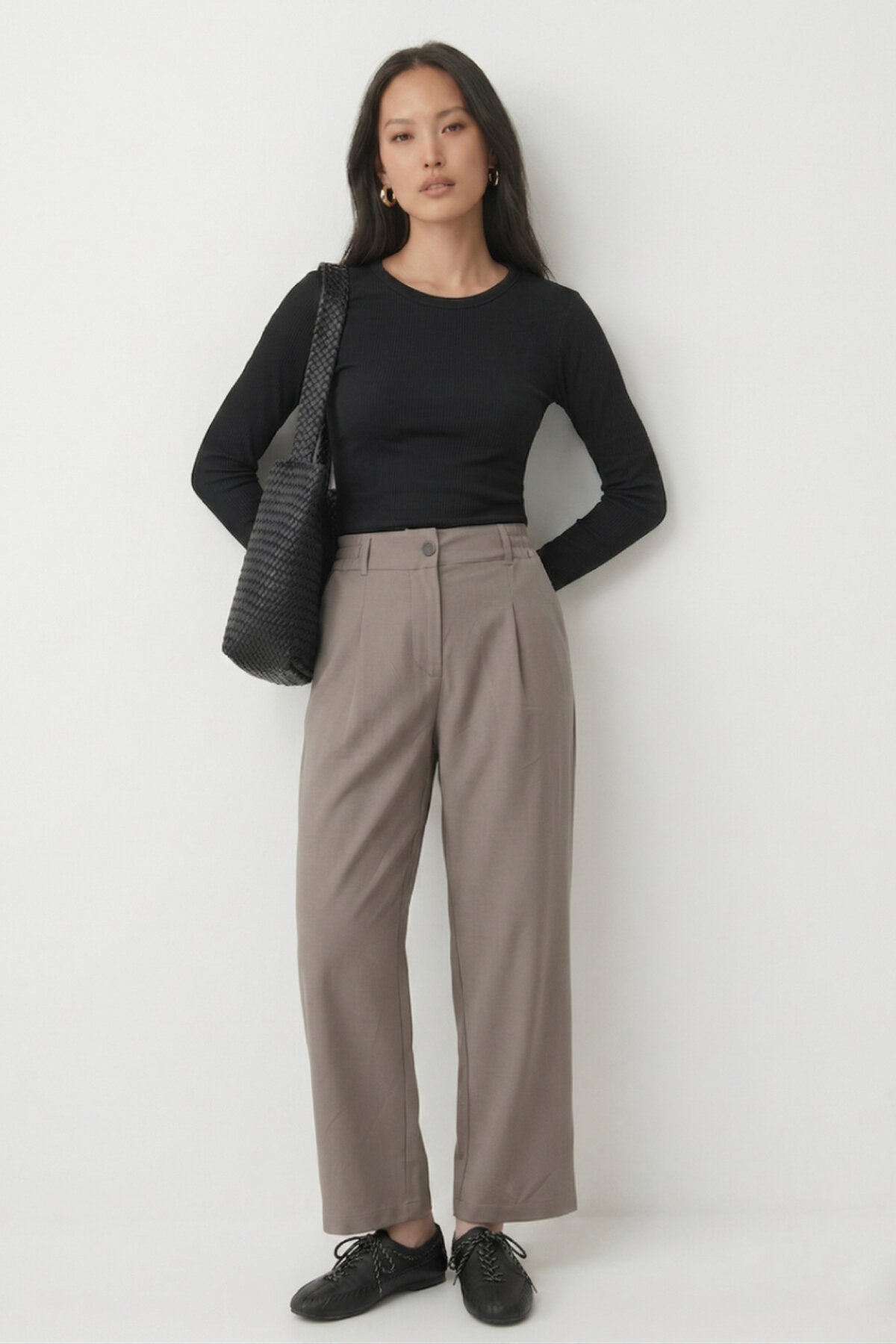 - • Farklı üst giyim parçalarıyla kolay kombinlenebilen çok yönlü form