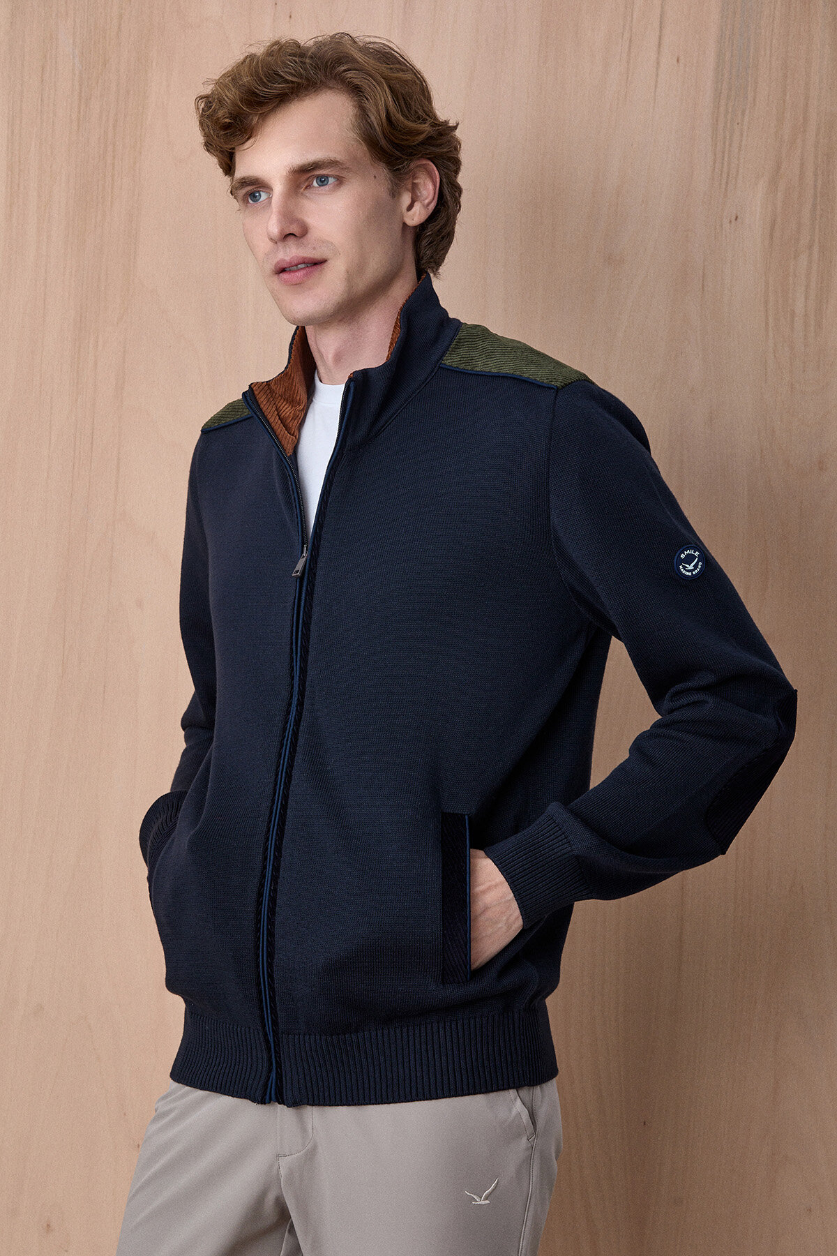 Fossing Lacivert %100 Pamuk Omuz Detaylı Fermuarlı Hırka, sportif tasarımı ve modern detaylarıyla günlük stilinize güçlü bir karakter kazandırır. %100 pamuklu kumaşı sayesinde nefes alabilen ve konforlu bir kullanım sunarken, tam fermuarlı yapısı pratik ve rahat bir giyim deneyimi sağlar. Omuz kısmındaki kontrast dokulu detaylar ve kol üzerindeki arma tasarıma dinamik bir görünüm katarken, şehir stiline uyum sağlayan modern bir siluet oluşturur.