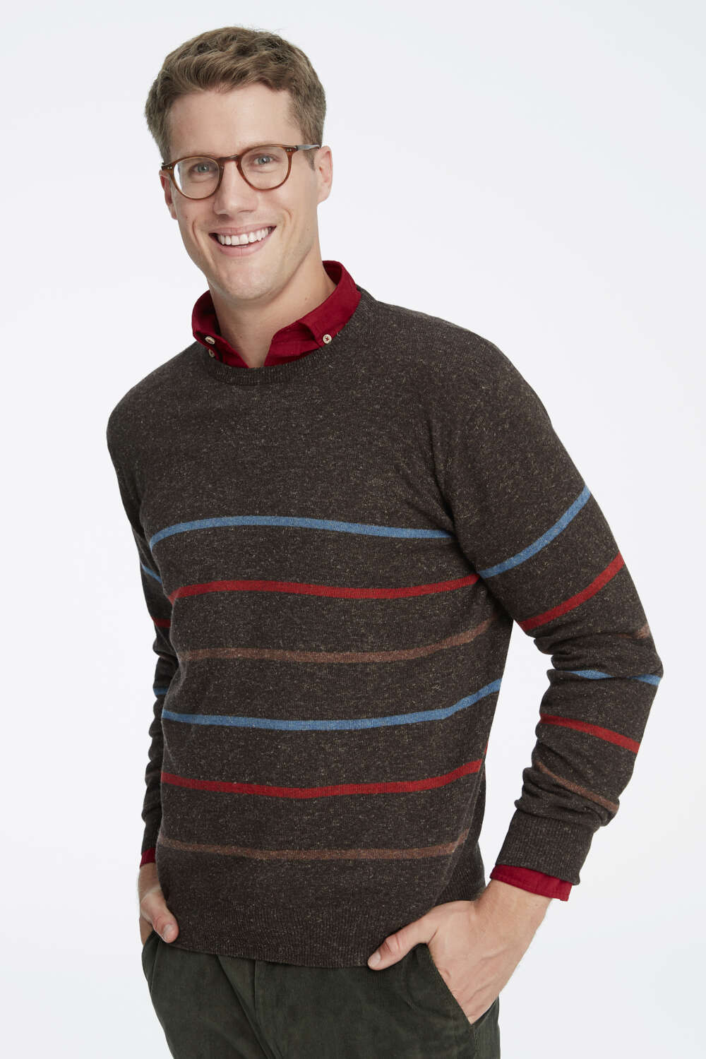 Fraser Kahverengi Çizgili Yün Karışımlı Bisiklet Yaka Kazak, sıcak tutan yapısı ve modern çizgili tasarımıyla soğuk havalarda stilinizi tamamlayan şık bir parçadır. Yün karışımlı özel kumaşı sayesinde hem konforlu hem de dengeli bir sıcaklık sunarken, çok renkli ince çizgi detayları ürüne hareketli ve modern bir görünüm kazandırır. Günlük stilinizi zenginleştiren bu kazak, gömleklerle birlikte kullanıldığında smart casual kombinler için ideal bir seçim oluşturur.