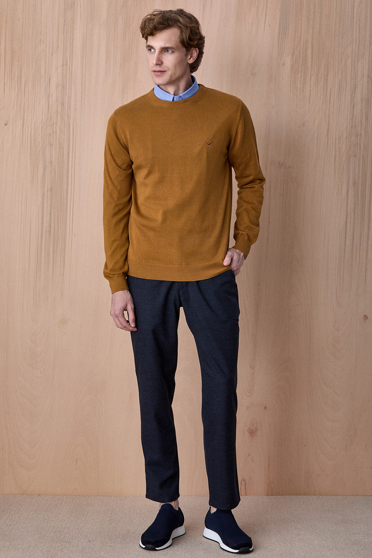Fusa Hardal %100 Pamuk Bisiklet Yaka Triko Kazak, sade ve zamansız tasarımıyla günlük stilin vazgeçilmez parçalarından biridir. %100 pamuklu kumaşı sayesinde nefes alabilen ve konforlu bir kullanım sunarken, yumuşak dokusu gün boyu rahatlık sağlar. Minimal nakış detayı ve modern kesimiyle hem casual hem de smart casual kombinlerde kolayca kullanılabilir. Gömleklerle birlikte kullanıldığında şık ve dengeli bir görünüm elde edilir.