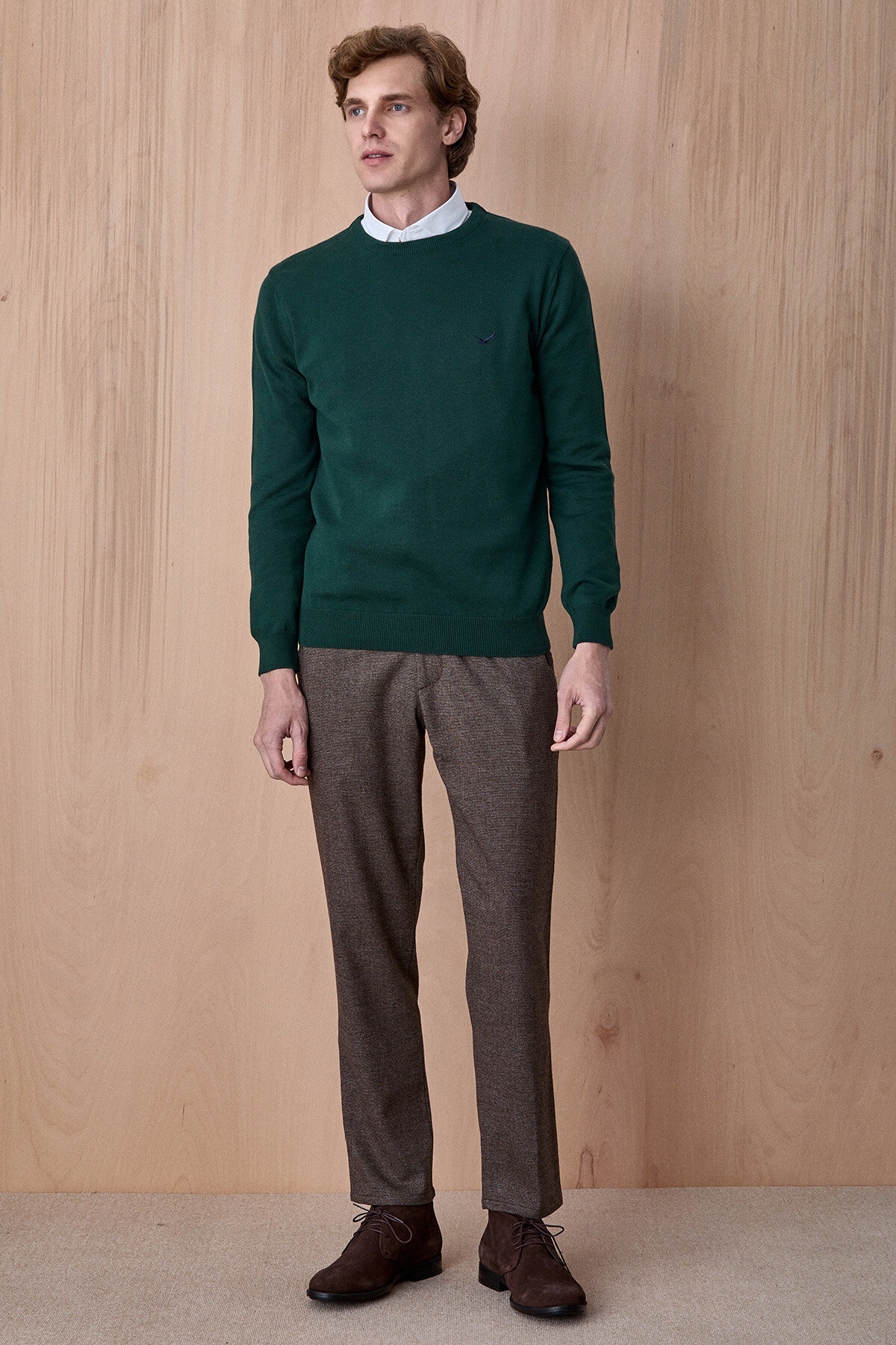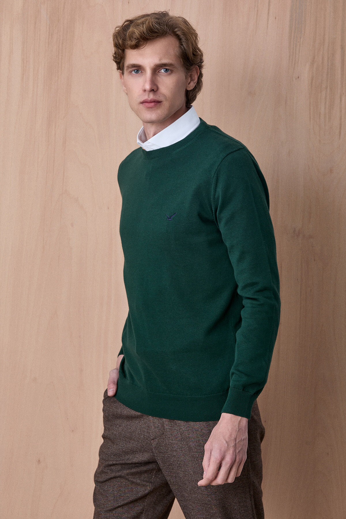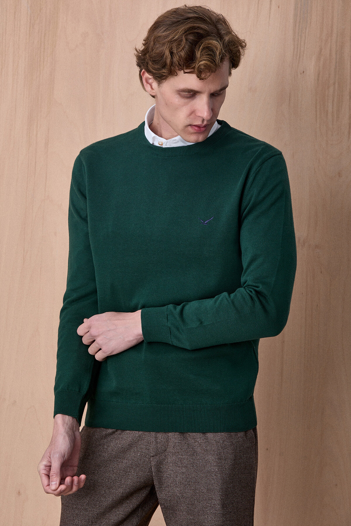 Fusa Koyu Yeşil %100 Pamuk Bisiklet Yaka Triko Kazak, sade ve zamansız tasarımıyla günlük stilin vazgeçilmez parçalarından biridir. %100 pamuklu kumaşı sayesinde nefes alabilen ve konforlu bir kullanım sunarken, yumuşak dokusu gün boyu rahatlık sağlar. Minimal nakış detayı ve modern kesimiyle hem casual hem de smart casual kombinlerde kolayca kullanılabilir. Gömleklerle birlikte kullanıldığında şık ve dengeli bir görünüm elde edilir.