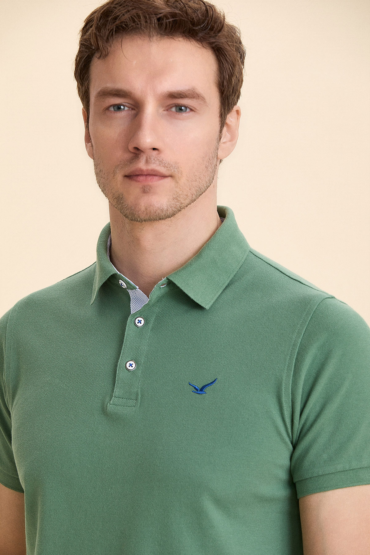 Designed for men who want to bring the energy of summer to their style, this t-shirt offers a dynamic and positive look. It keeps you fresh on hot days with its light and breathable cotton fabric. It adds simple elegance to modern men's style with its minimalist embroidery logo detail and classic buttoned collar design. It is a piece that can be easily preferred in many occasions, from daily combinations to weekend trips.