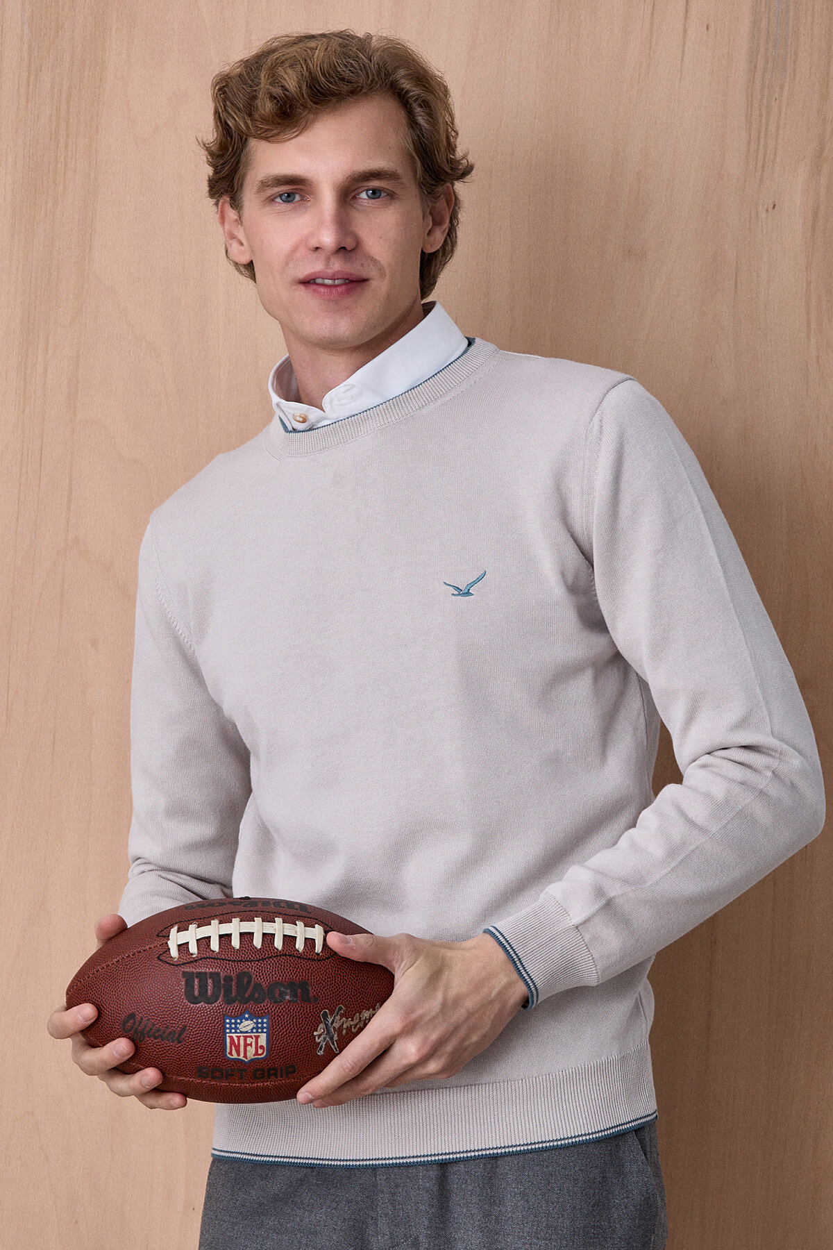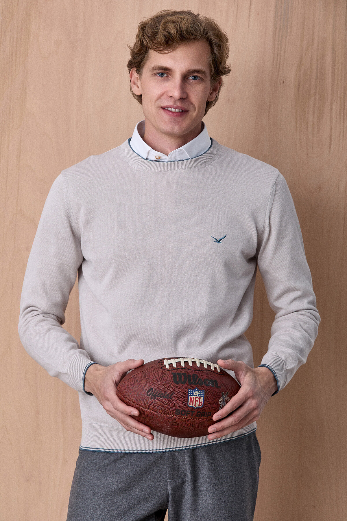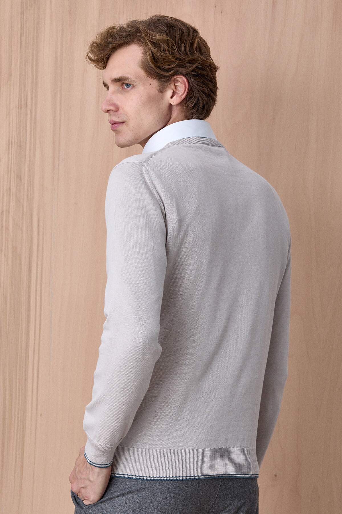 Buz Grisi %100 Pamuk Bisiklet Yaka Kazak