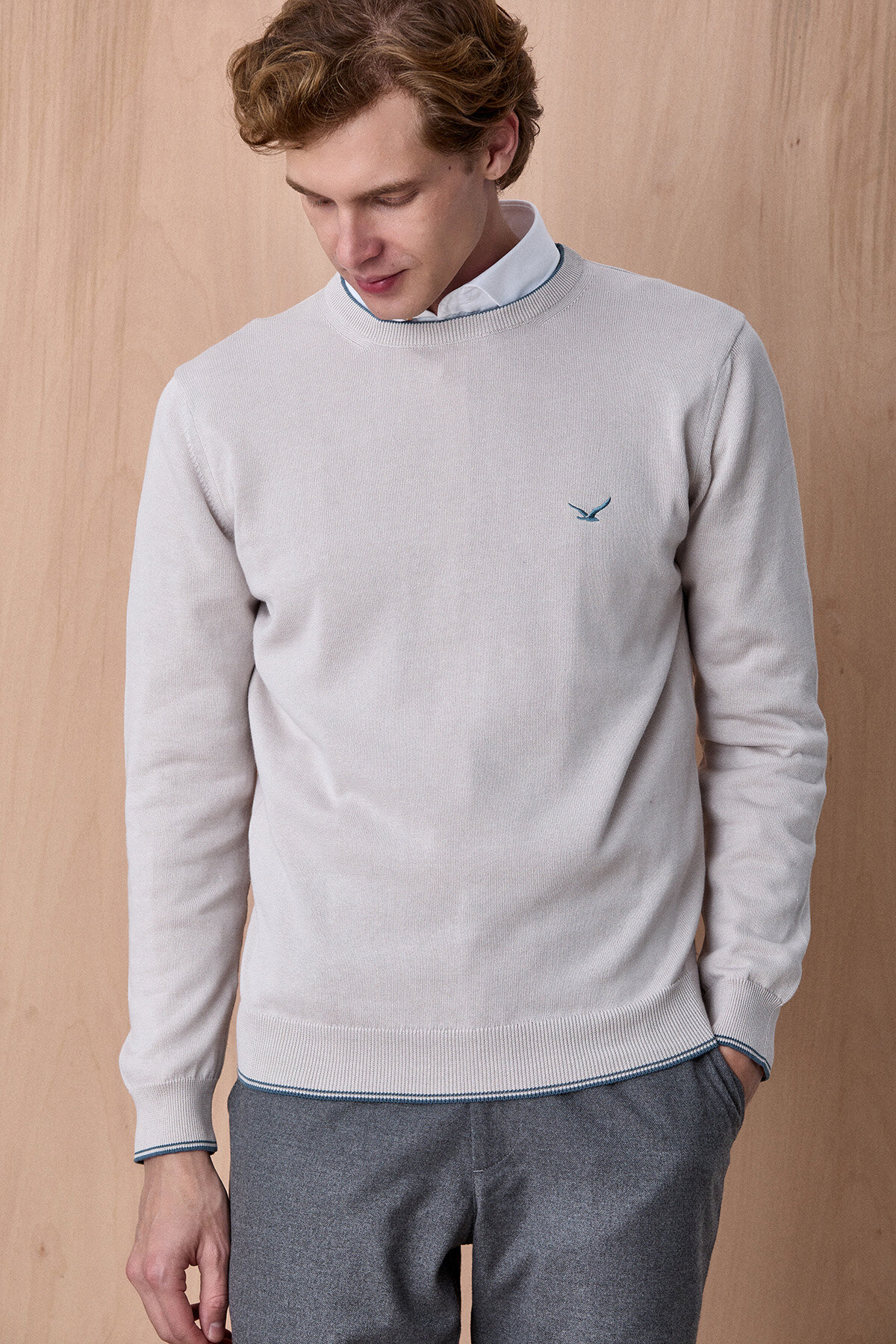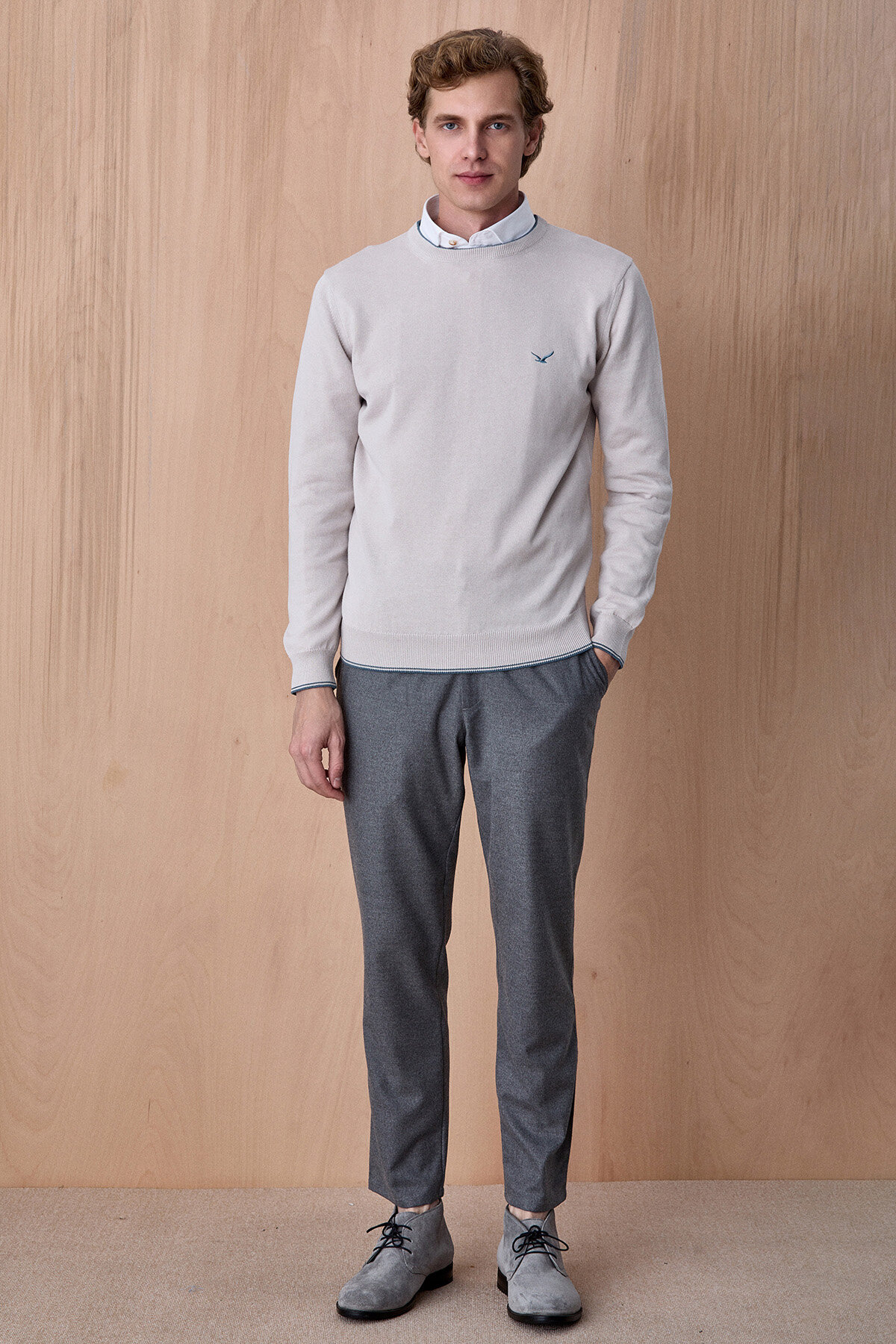 - • Klasik ve zamansız bisiklet yaka tasarım