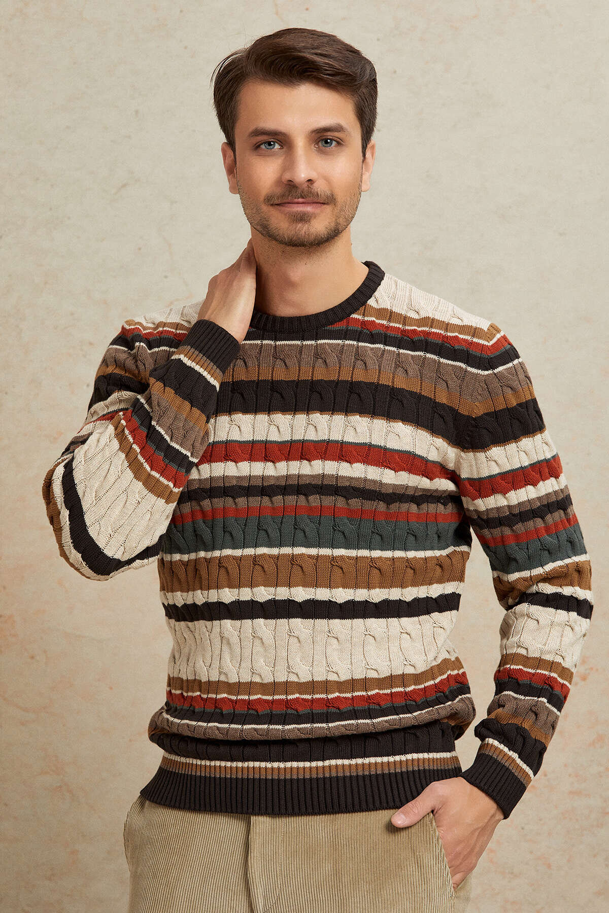 Brown 100% Cotton Round Neck Sweater