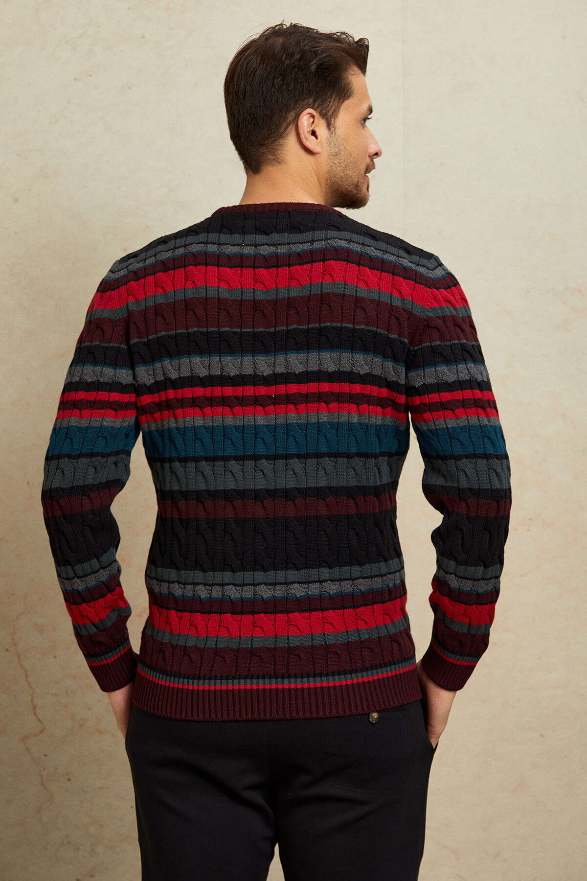 Burgundy 100% Cotton Round Neck Sweater