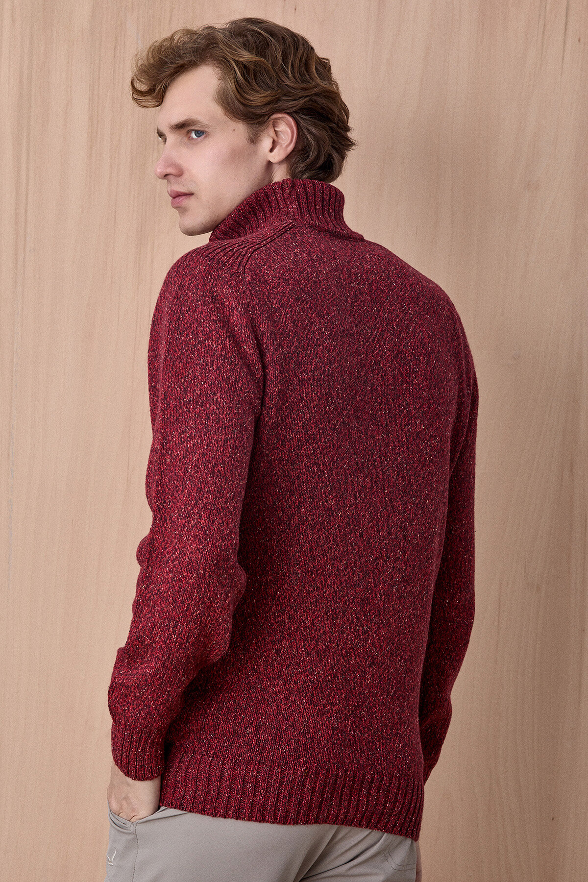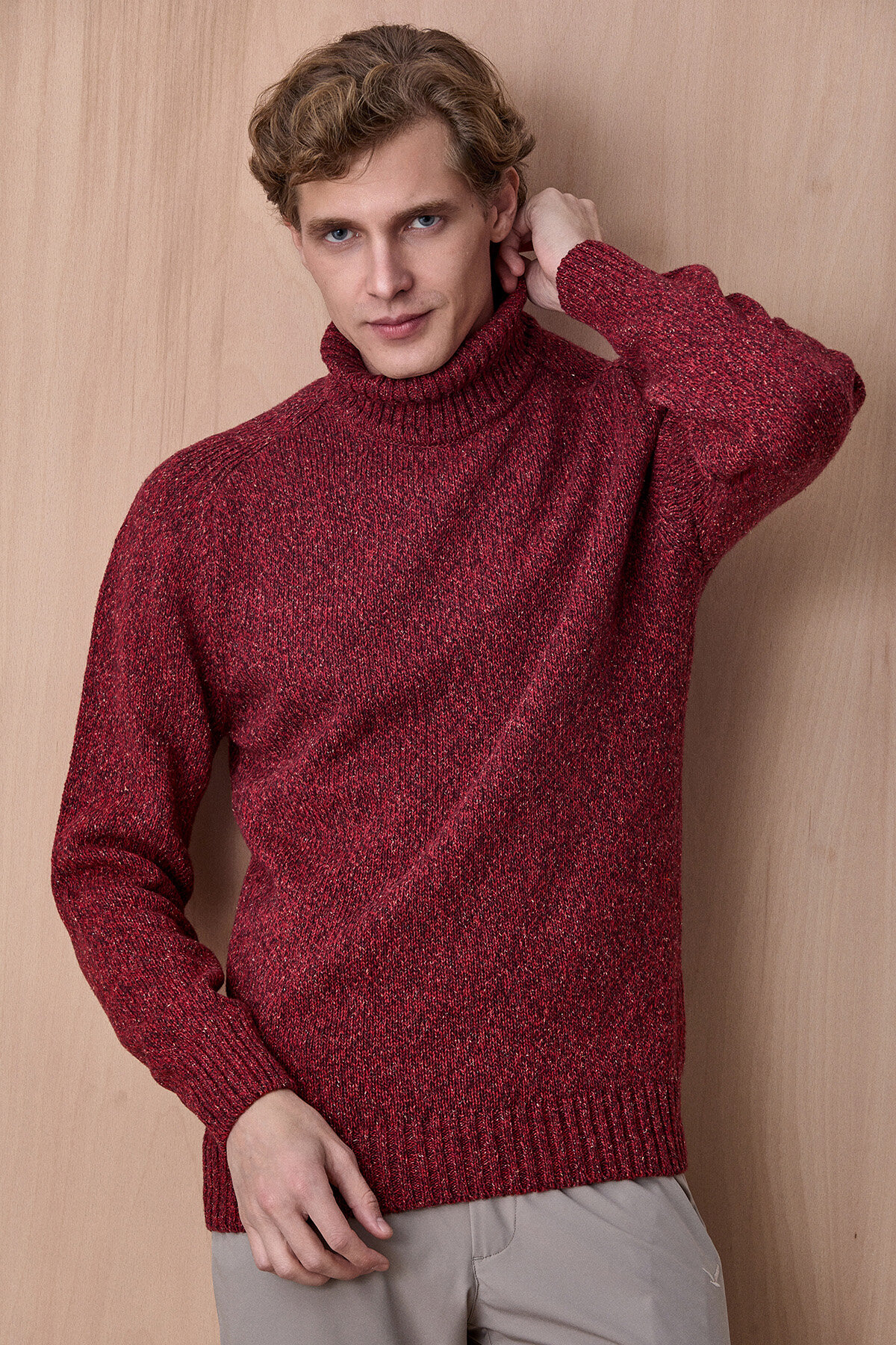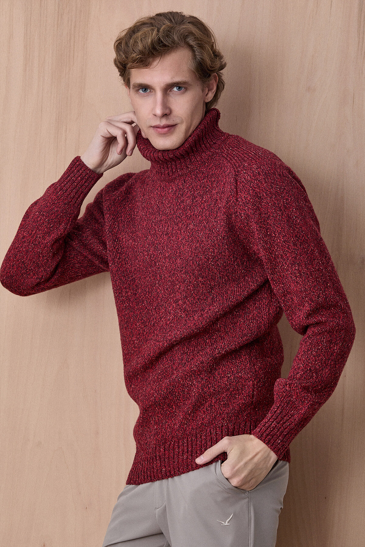 Grandi Bordo %100 Pamuk Balıkçı Yaka Triko Kazak, sıcak tonları ve dokulu triko örgüsü ile kış stiline güçlü ve zamansız bir karakter kazandırır. %100 pamuklu kumaşı sayesinde gün boyu konfor sunarken, balıkçı yaka tasarımı serin havalarda ekstra koruma ve şık bir görünüm sağlar. Doğal dokusu ve sade formu sayesinde hem günlük kombinlerde hem de smart casual stillerde rahatlıkla tercih edilebilecek modern bir parçadır.