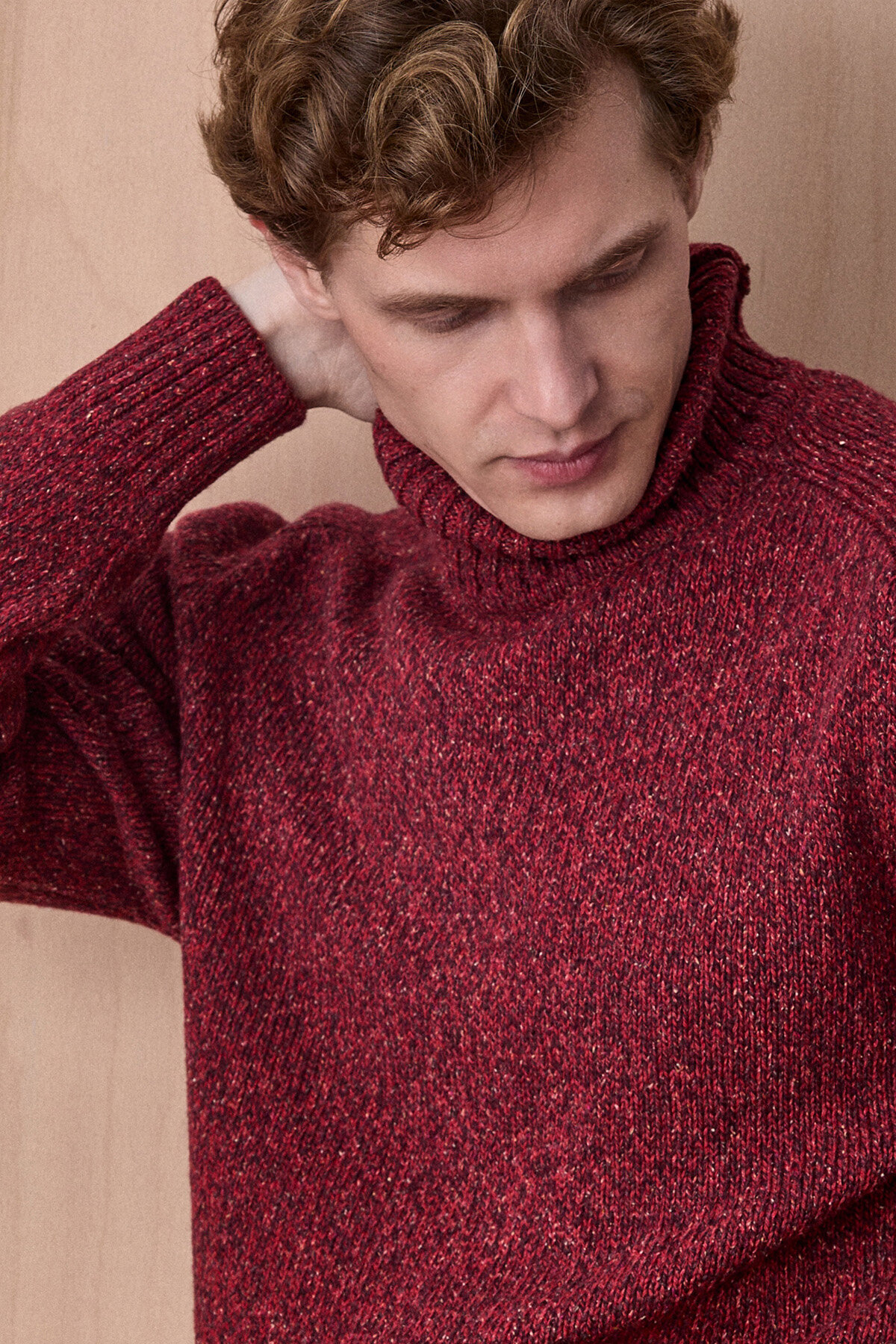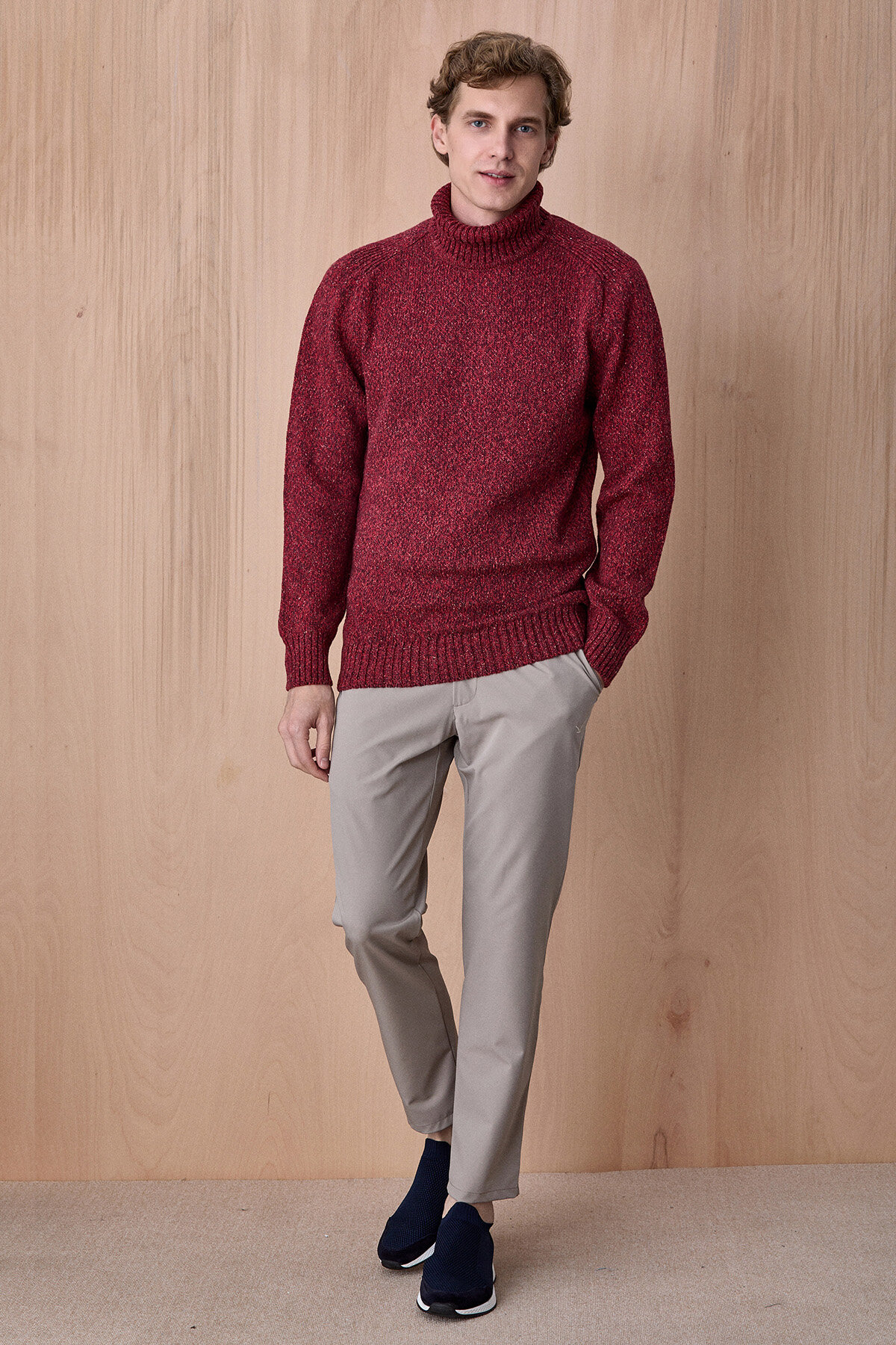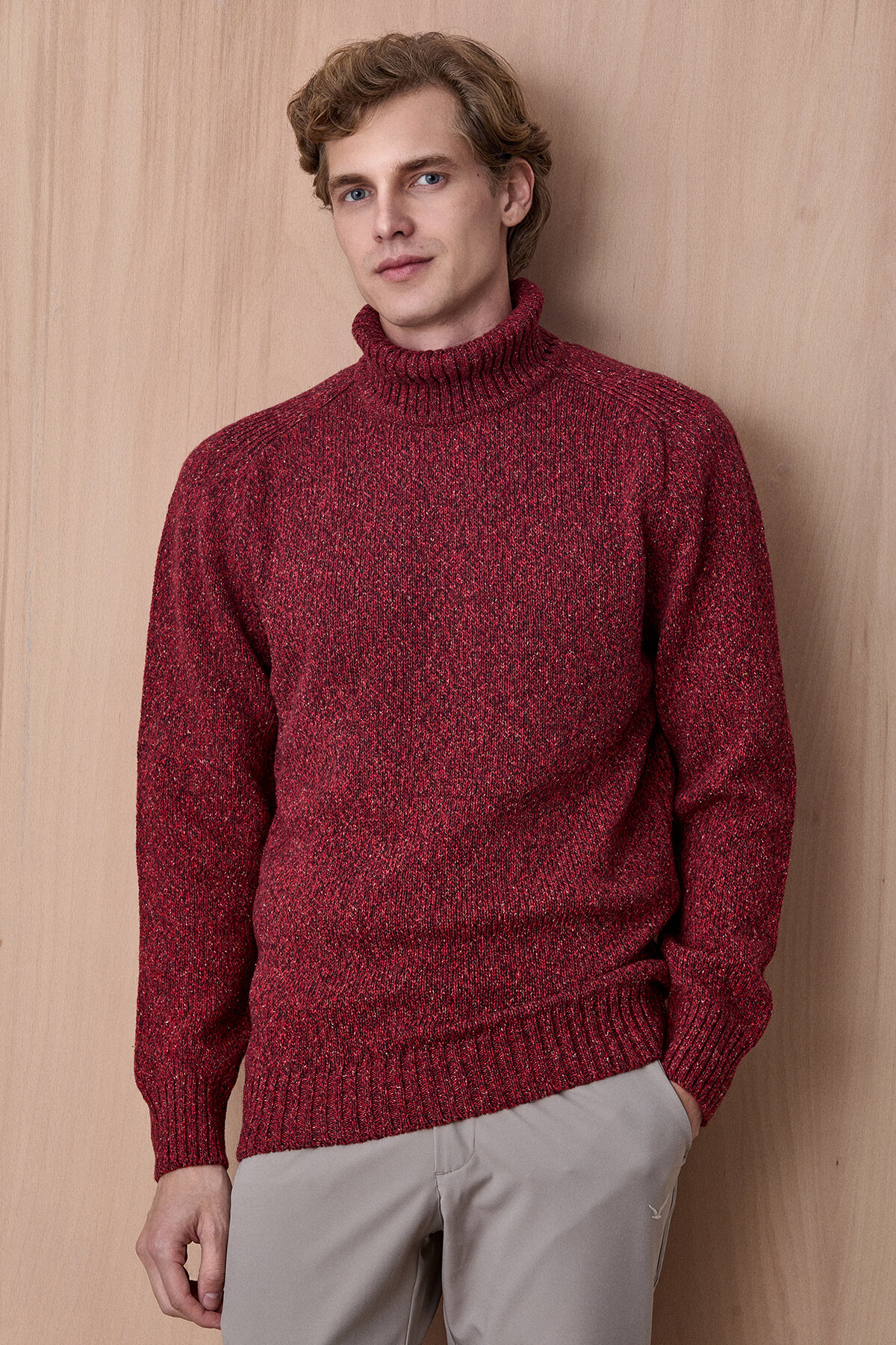 Grandi Bordo %100 Pamuk Yuvarlak Yaka Kazak