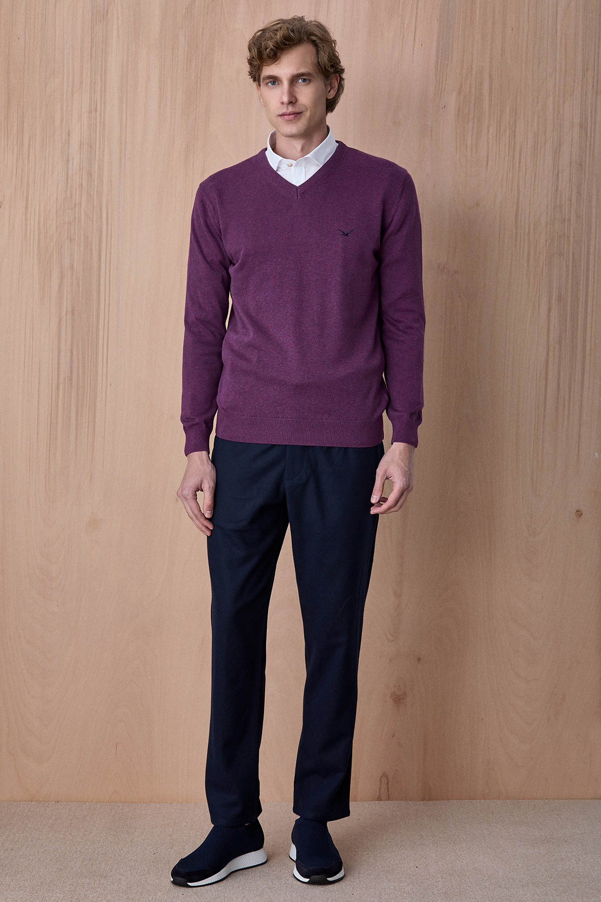 Gratengen Mor %100 Pamuk V Yaka Triko
