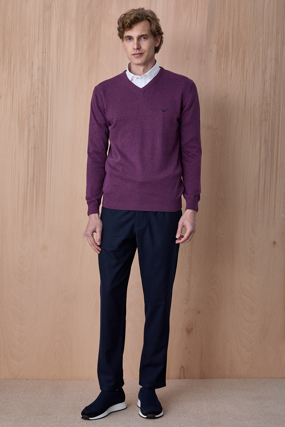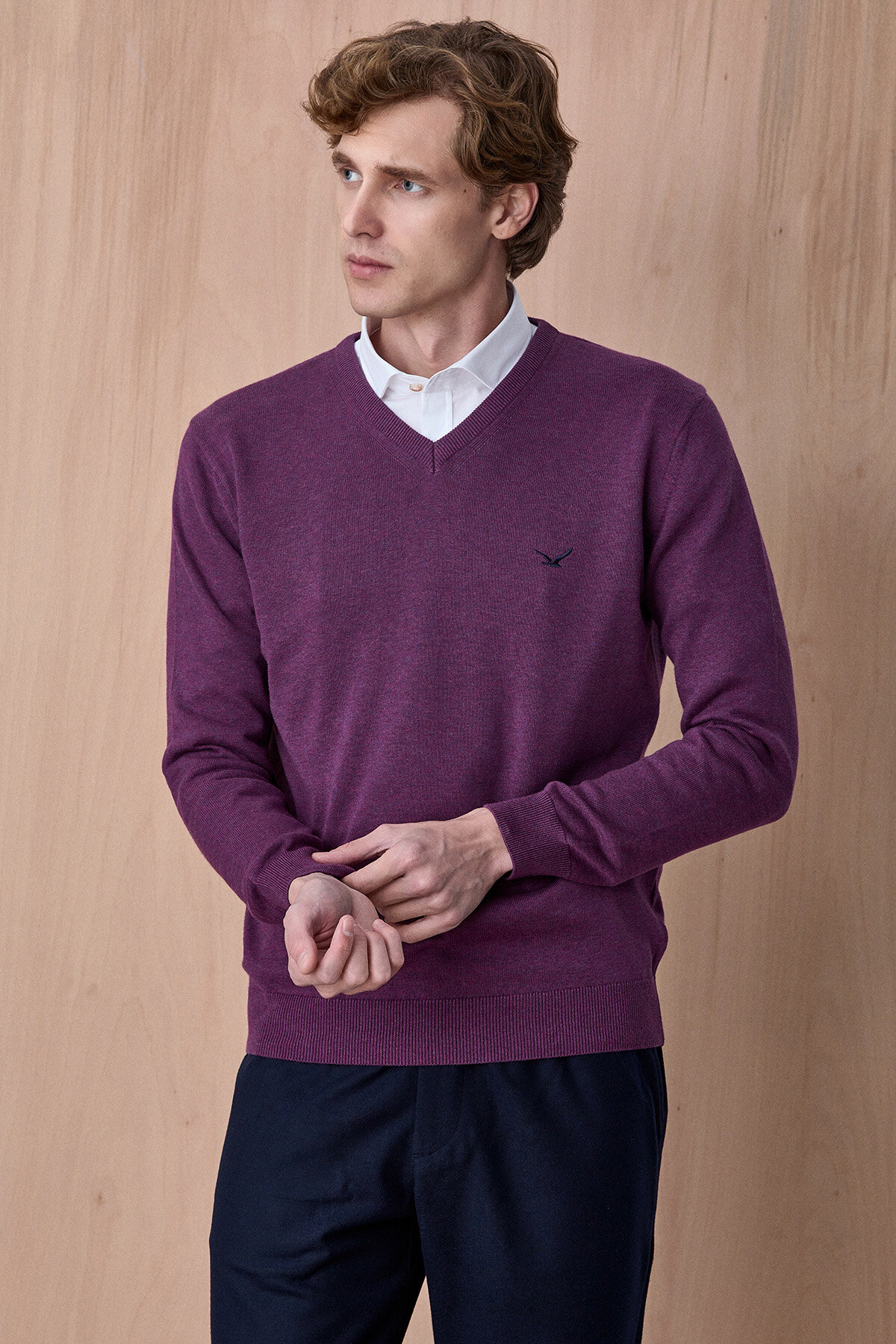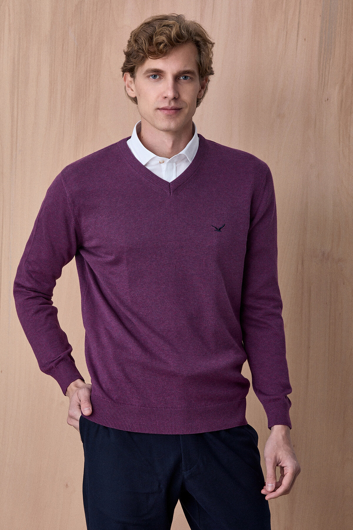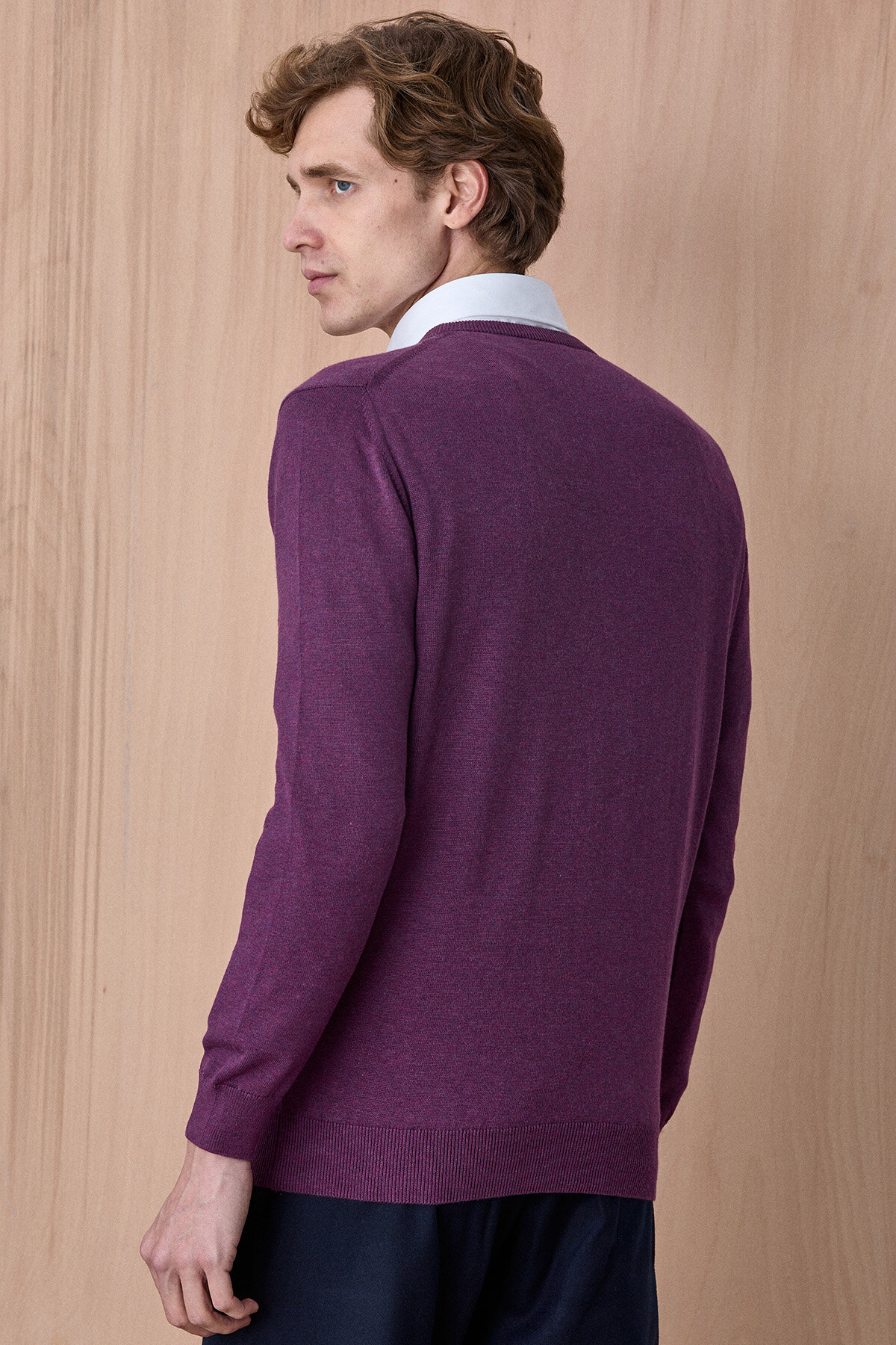 Mor %100 Pamuk V Yaka Kazak