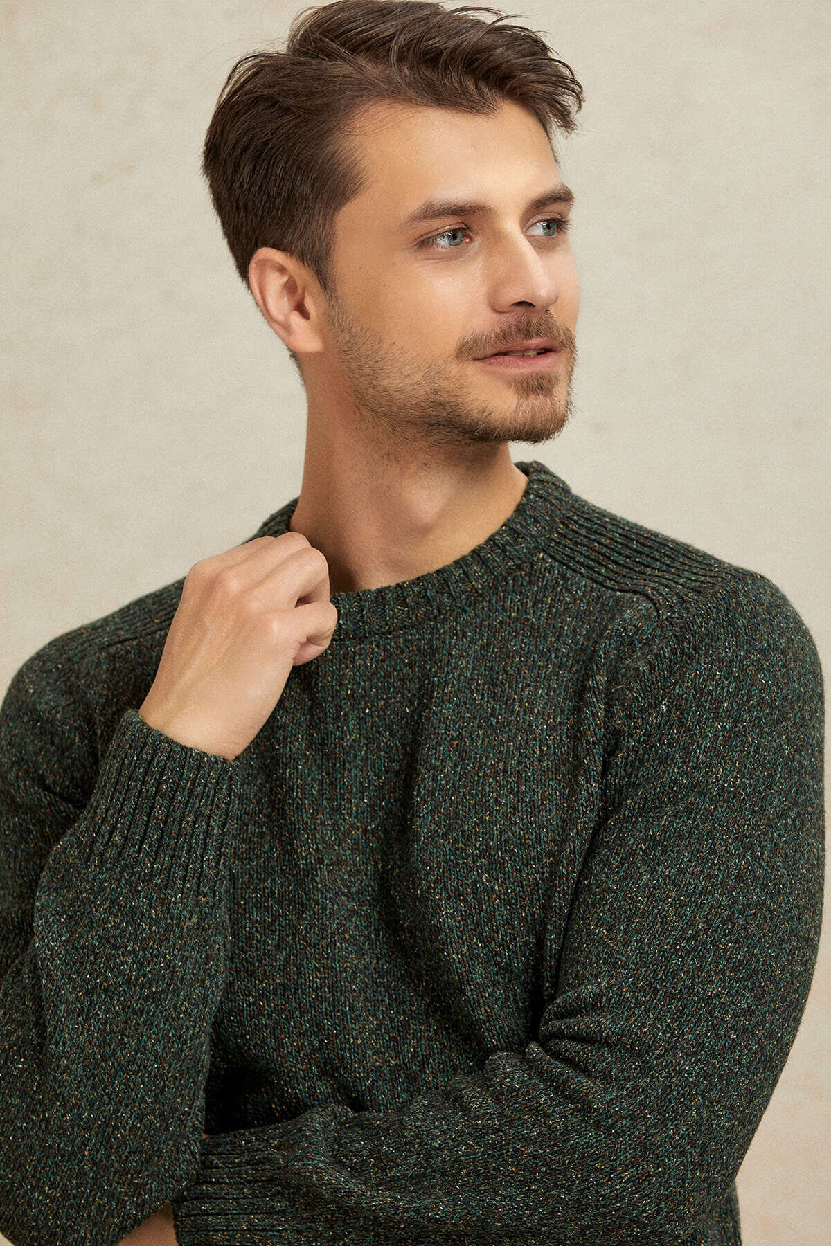 Grund Yeşil %100 Pamuk Bisiklet Yaka Triko Kazak, doğal tonları ve dokulu triko örgüsü ile günlük stilinize sıcak ve dengeli bir görünüm kazandırır. %100 pamuklu kumaşı sayesinde gün boyu konfor sunarken, sade bisiklet yaka tasarımı ürünü zamansız bir parçaya dönüştürür. Hem günlük kombinlerde hem de smart casual stil içerisinde rahatlıkla tercih edilebilecek çok yönlü ve modern bir kazaktır.