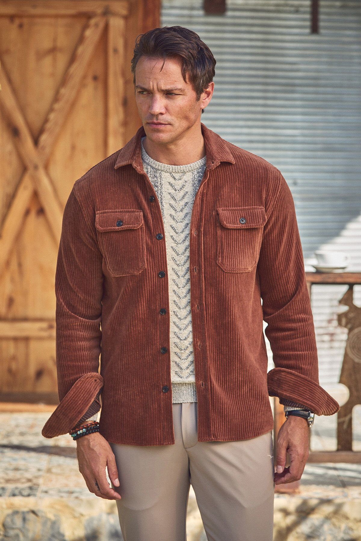 Gunnar Kiremit Pamuklu Kadife Dış Gömlek