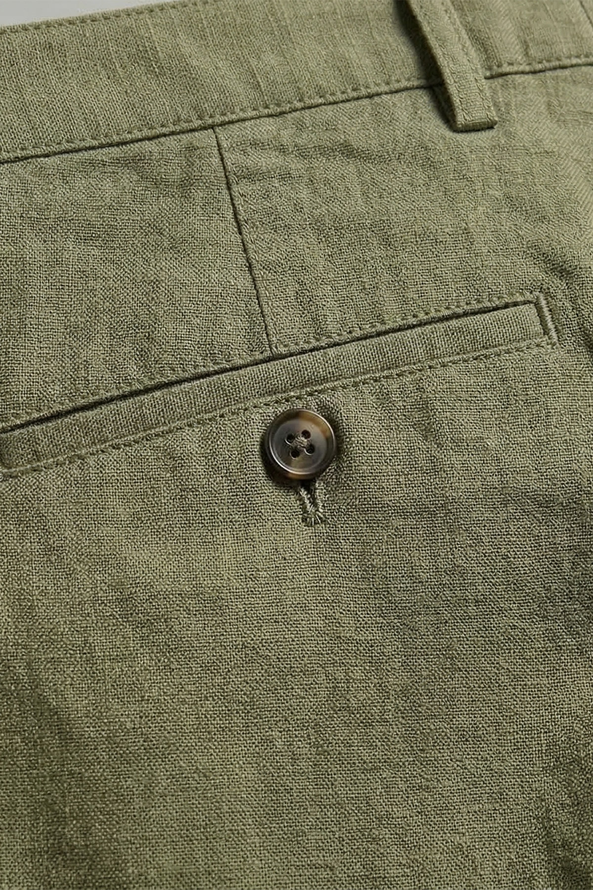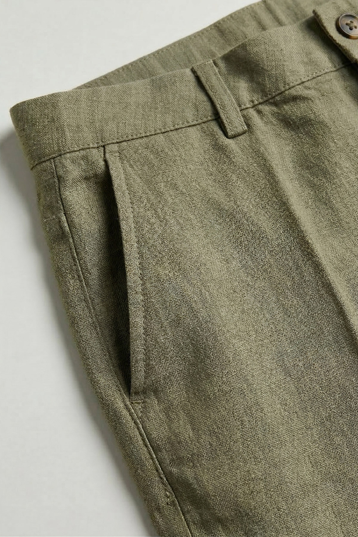 Koyu Haki %100 Keten Şort