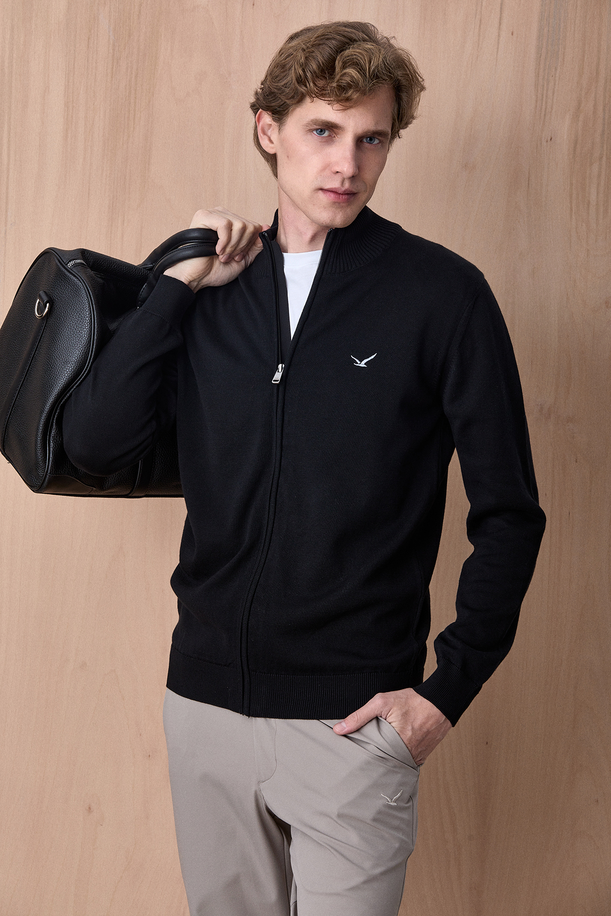 Hervik Siyah %100 Pamuk Örgü Hırka