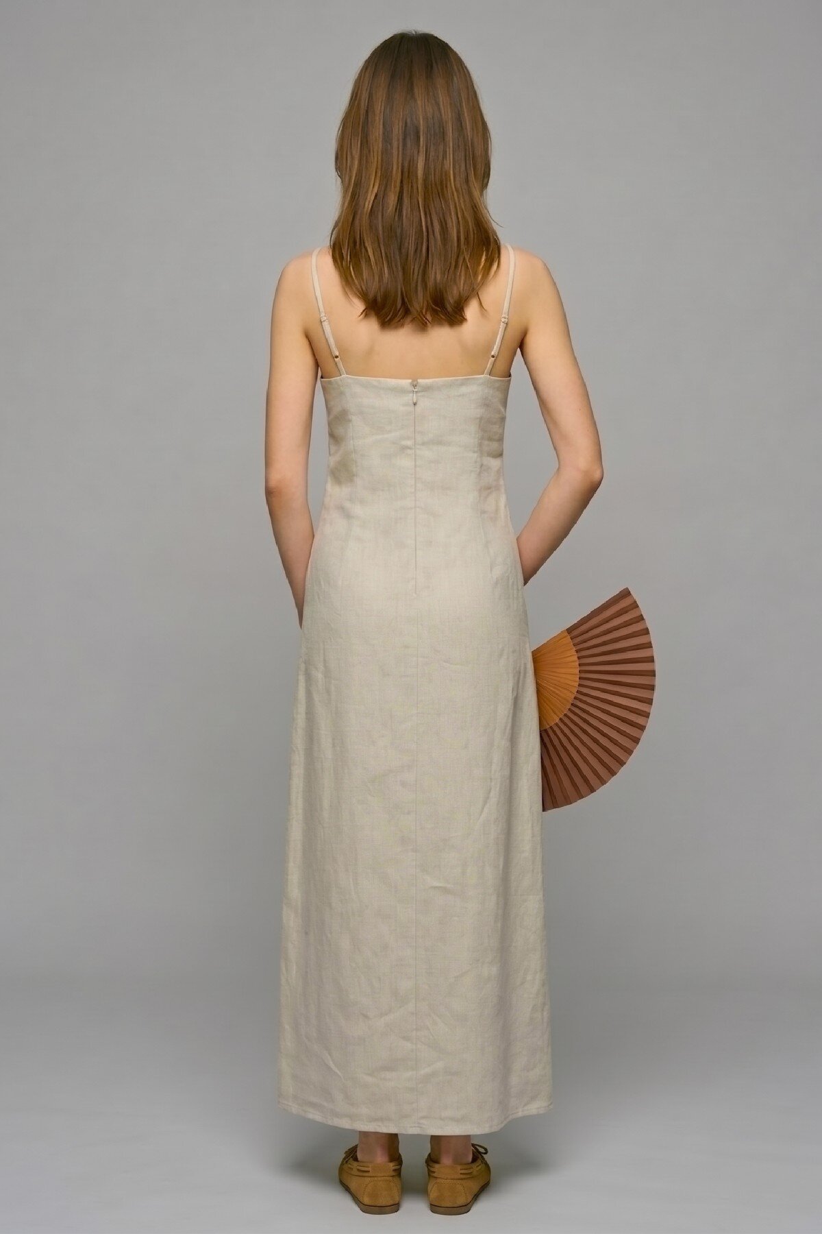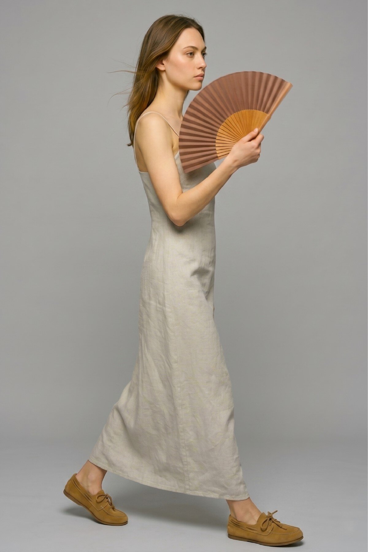 Julia Bej %100 Keten Askılı Midi Elbise, sade formu ve doğal dokusuyla yaz stilinin en rafine parçalarından biridir. %100 keten kumaşı sayesinde nefes alabilir ve hafif bir kullanım sunarken, düz kesimi ile yalın ve dengeli bir siluet oluşturur. İnce askı detayı ve minimal tasarımıyla öne çıkan bu elbise, günlük kullanımdan tatil stiline kadar geniş bir kullanım alanı sunar.