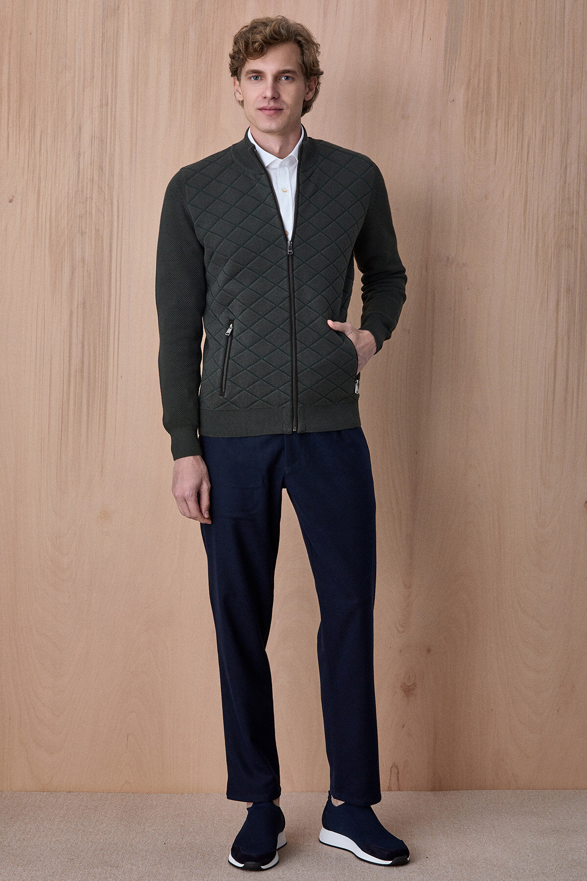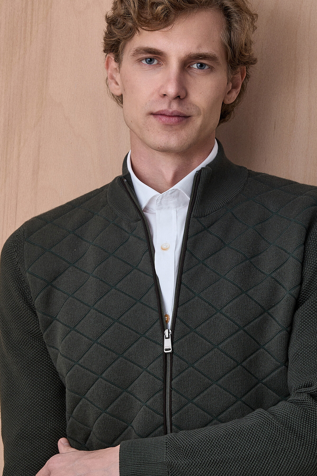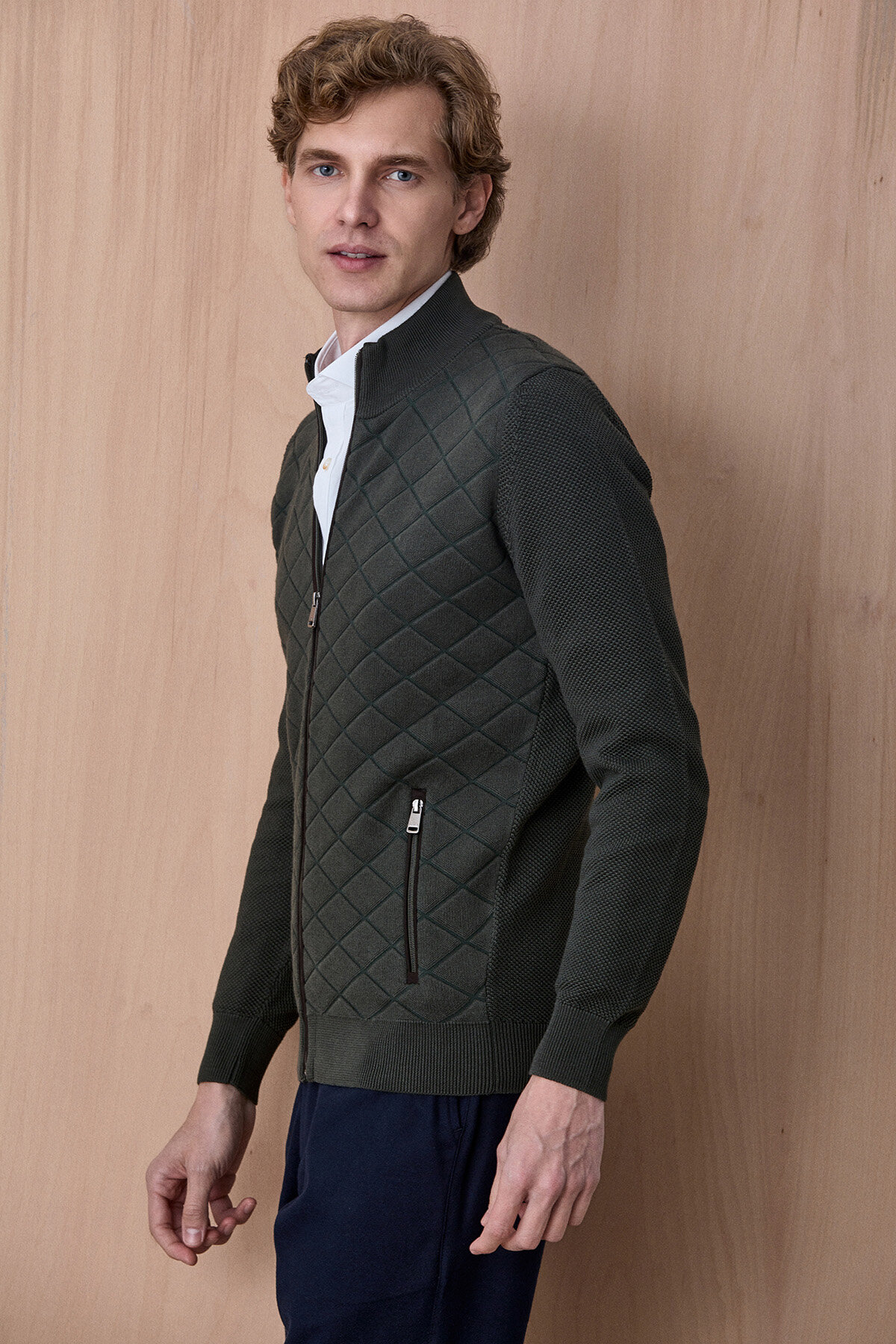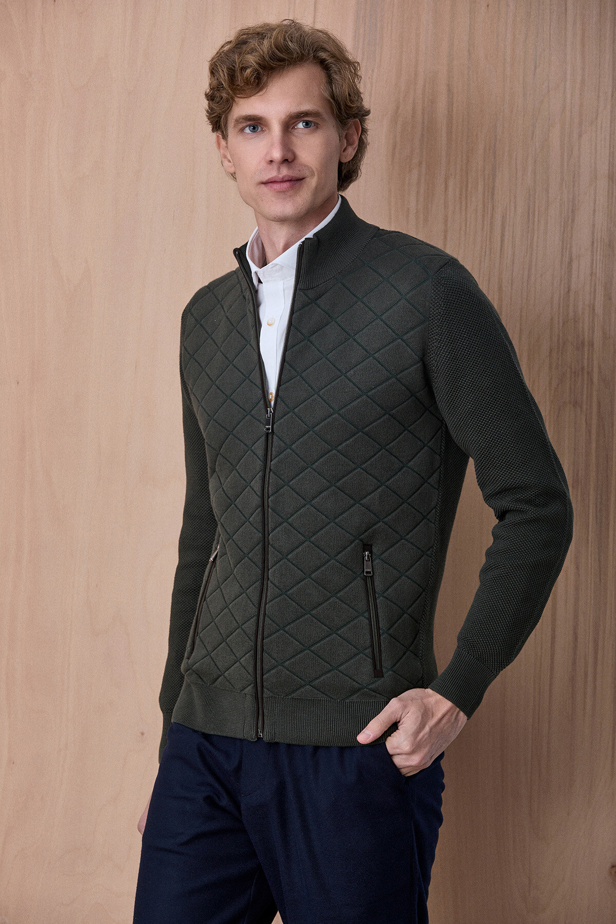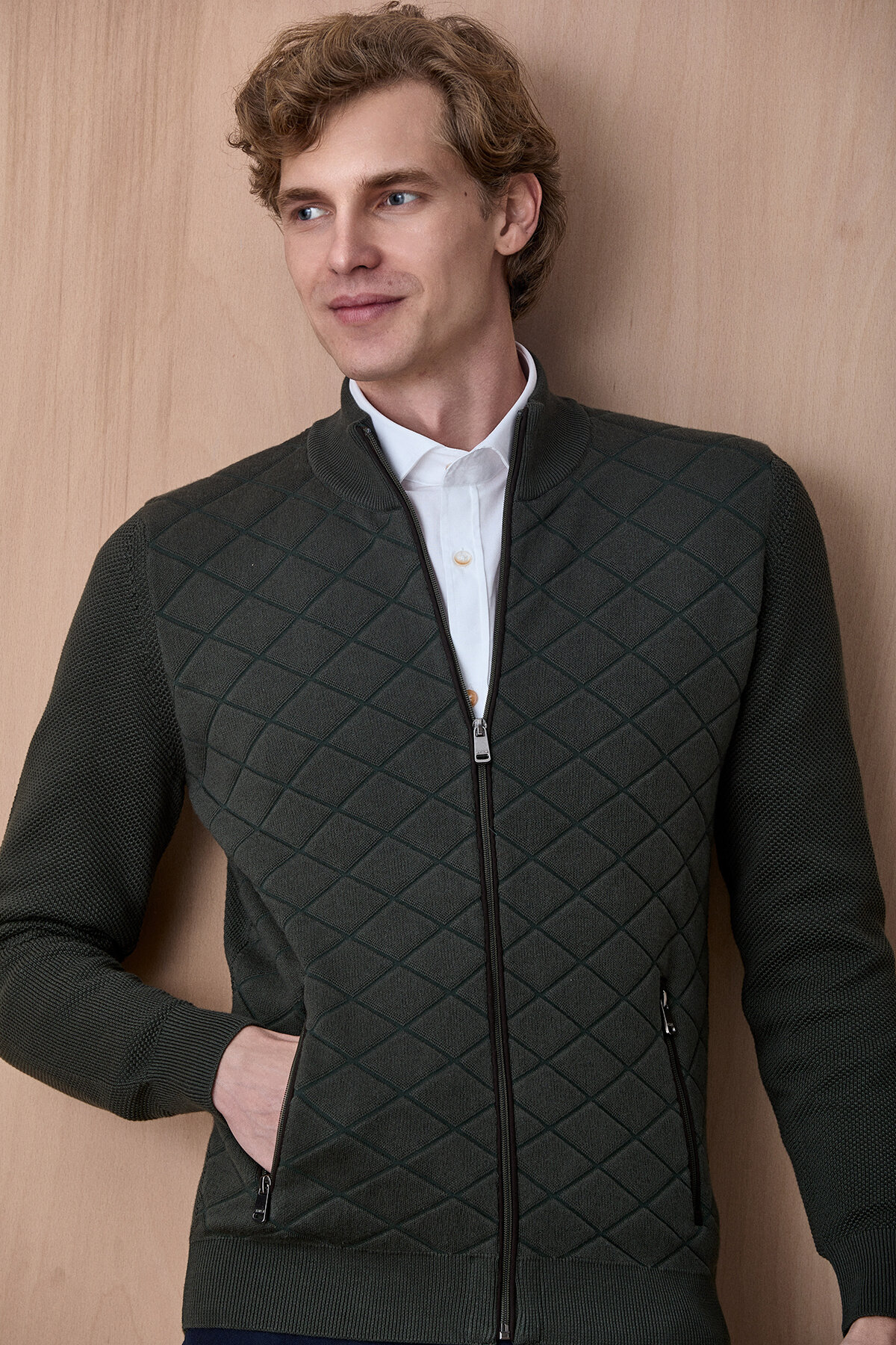 Koyu Yeşil Pamuklu Fermuarlı Kazak