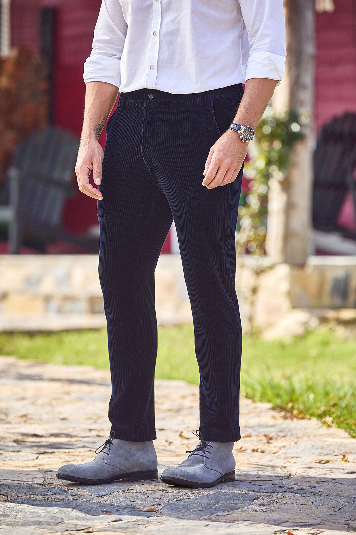 Lacivert Pamuklu Kadife Pantolon