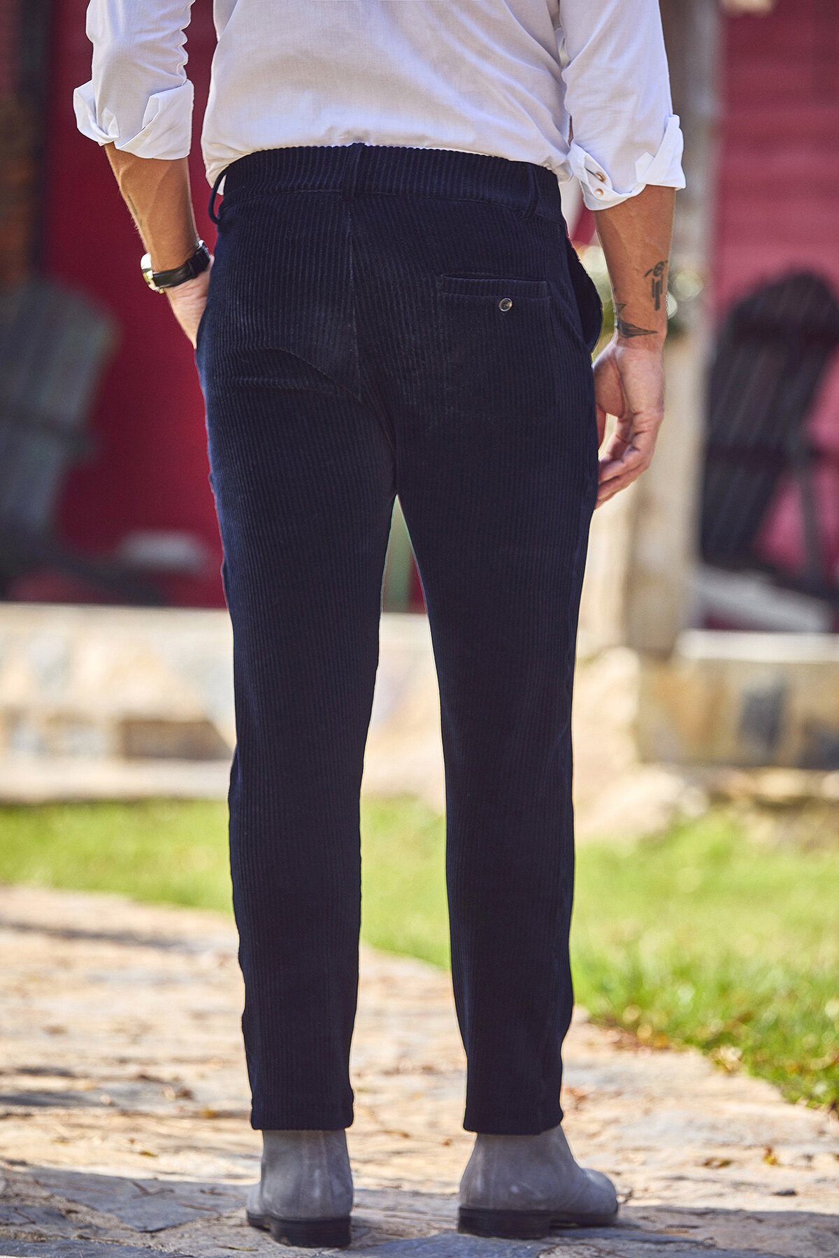 Kobe Lacivert Pamuklu Kadife Pantolon, dokulu yüzeyi ve sıcak renk tonu ile sonbahar ve kış stiline sofistike bir dokunuş katar. Kadife kumaşın karakteristik çizgili yapısı ürüne derinlik kazandırırken, pamuk karışımlı esnek yapısı gün boyu konforlu bir kullanım sunar. Modern kesimi sayesinde hem casual hem de smart casual kombinlerde rahatlıkla tercih edilebilecek şık bir alternatiftir.